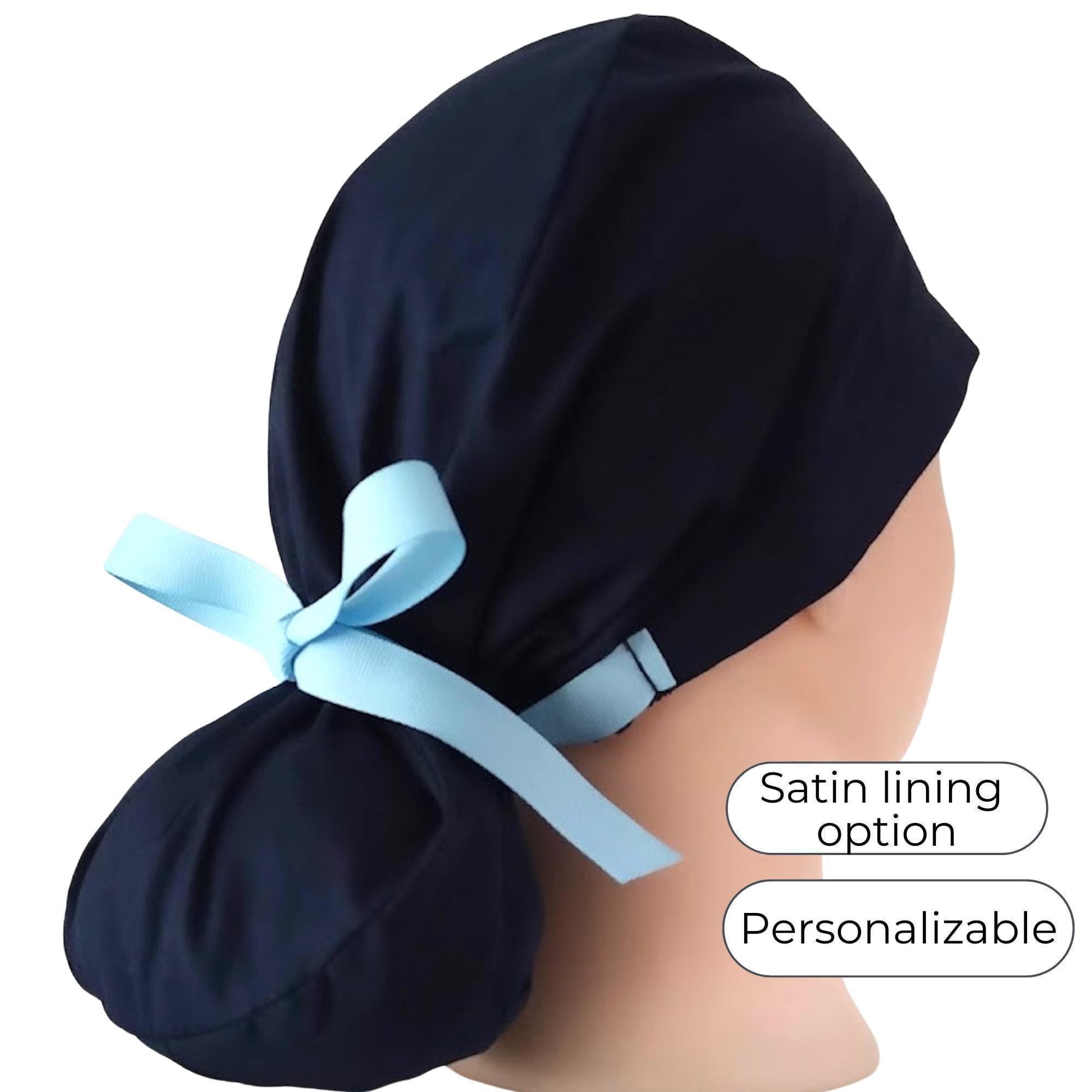 Designed for healthcare professionals with long hair, this ponytail scrub cap offers a perfect blend of comfort and style. Crafted from soft, breathable cotton, it features an adjustable fit with ribbon ties and an elastic band to keep your hair secure during long shifts. Whether you prefer a satin scrub cap lining for added luxury or a simple cotton design, each piece is handmade to meet your needs.