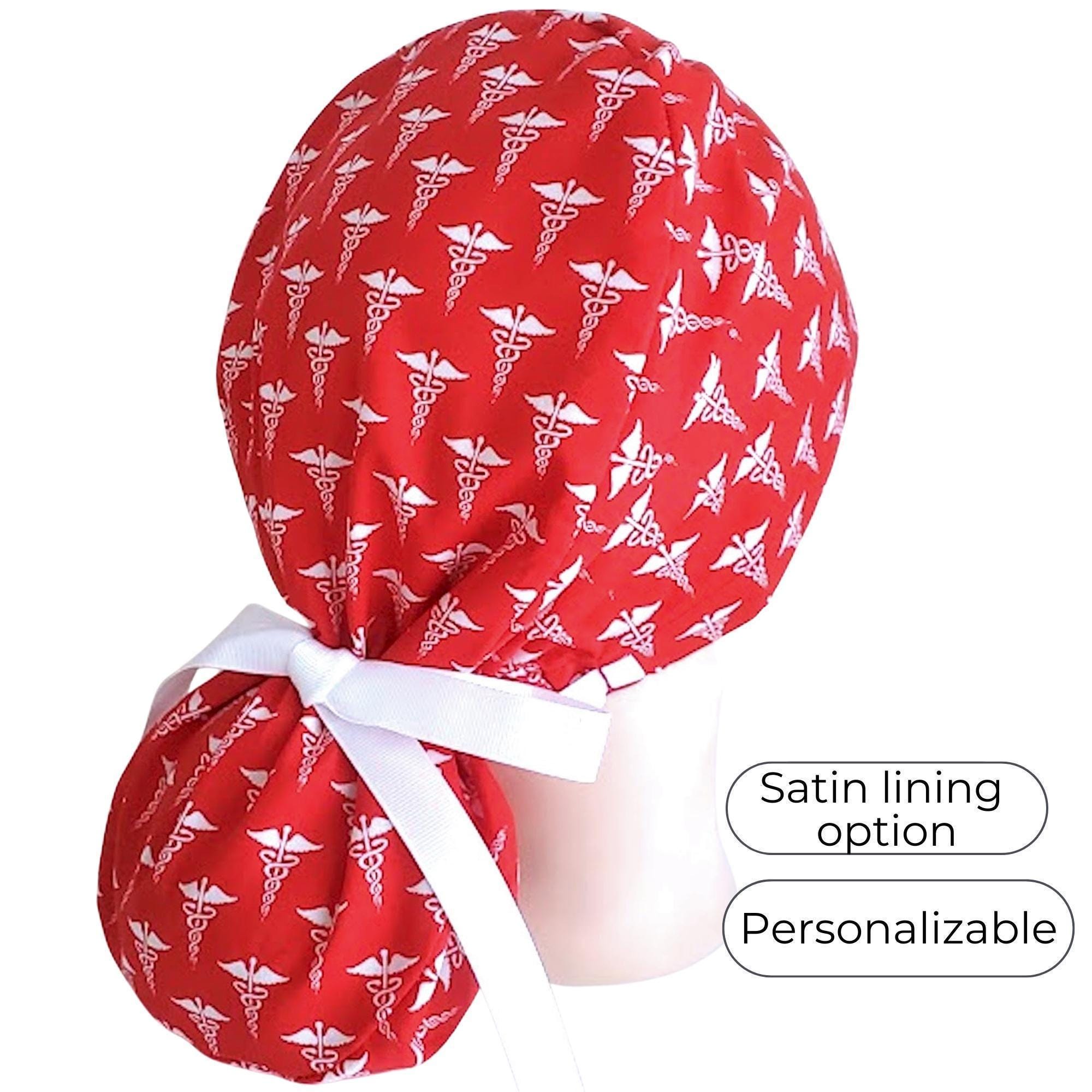 Our ponytail scrub cap is designed with both comfort and style in mind, perfect for long hair and long shifts. Each cap is handmade from high-quality cotton, making it soft, breathable, and comfortable to wear all day. The back features a secure elastic band with ribbon ties, so you can adjust the fit easily and keep your hair neatly in place.