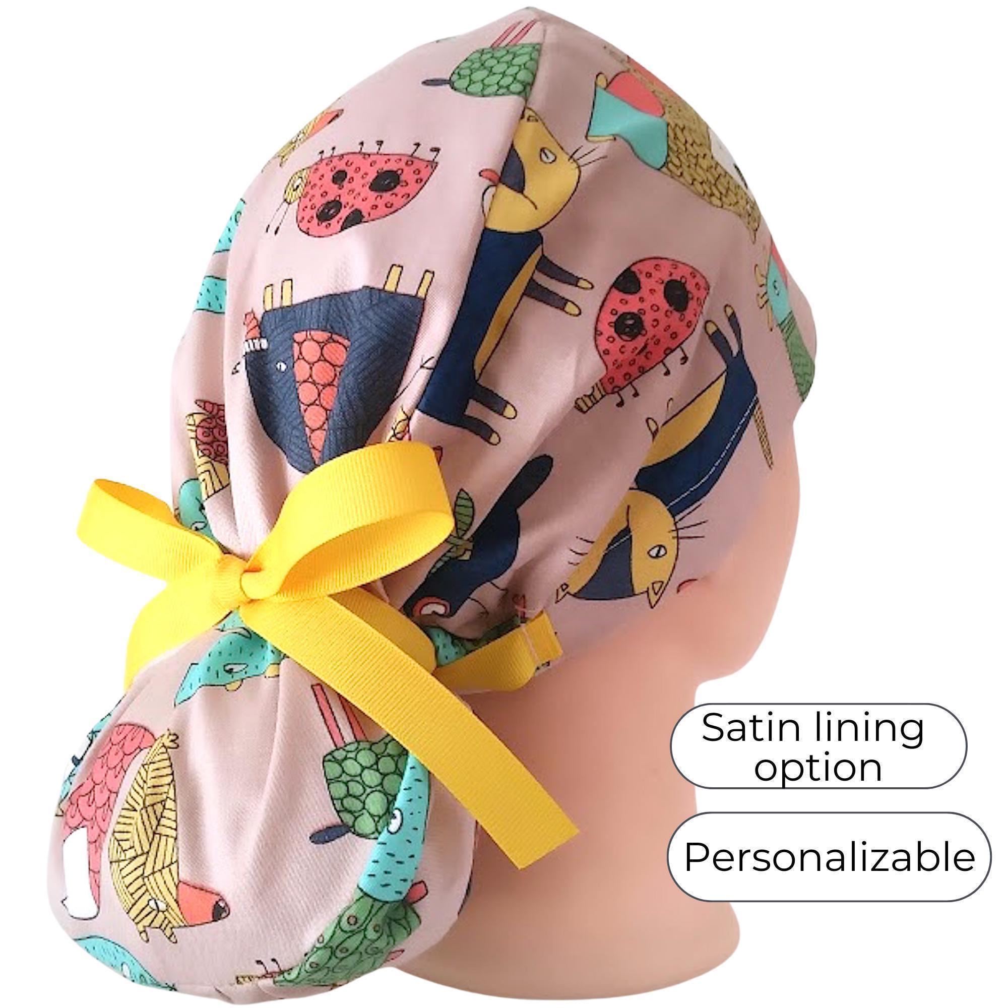 Wildlife Ponytail Scrub Caps with Satin Lining Option -