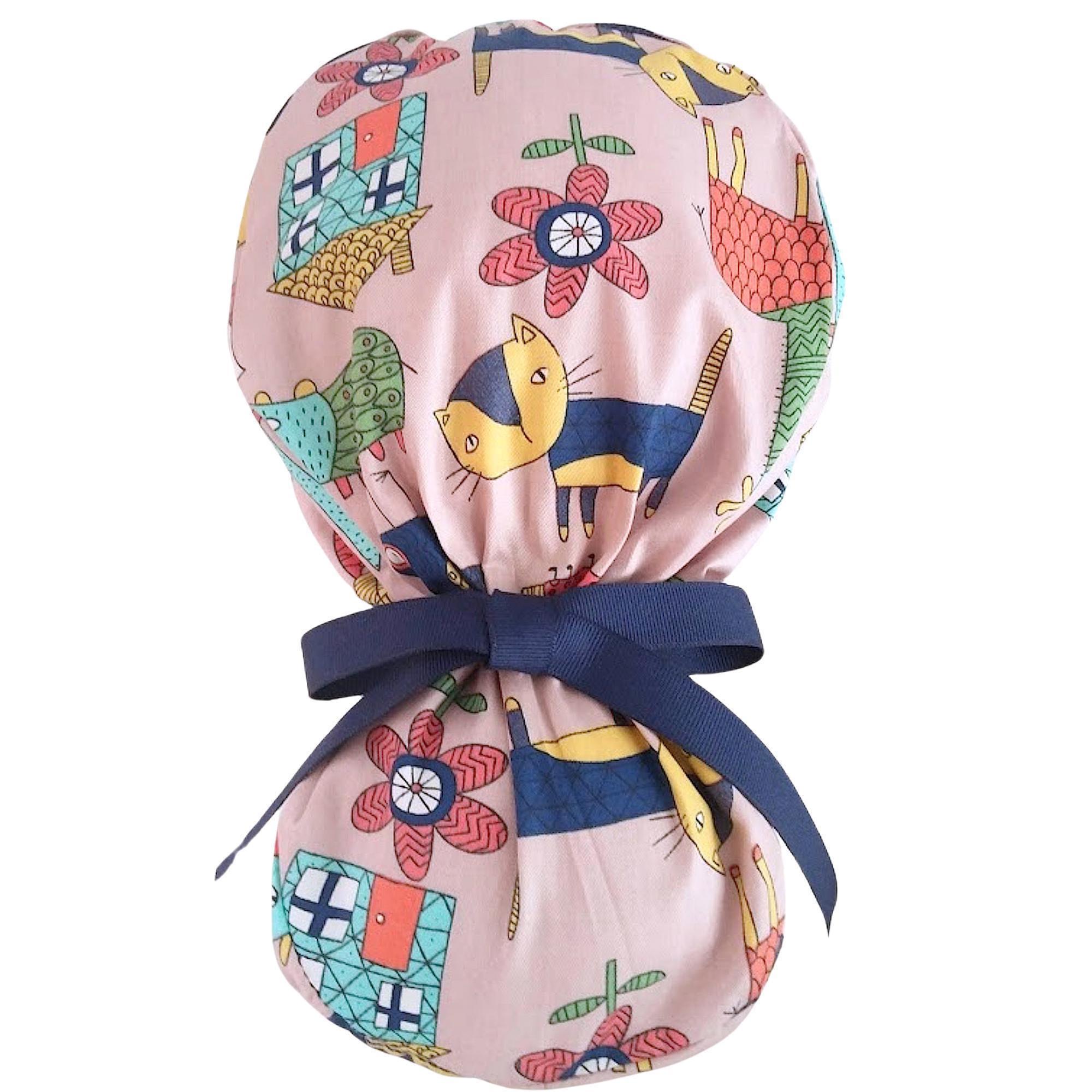 Our ponytail scrub cap is designed with both comfort and style in mind, perfect for long hair and long shifts. Each cap is handmade from high-quality cotton, making it soft, breathable, and comfortable to wear all day. The back features a secure elastic band with ribbon ties, so you can adjust the fit easily and keep your hair neatly in place.