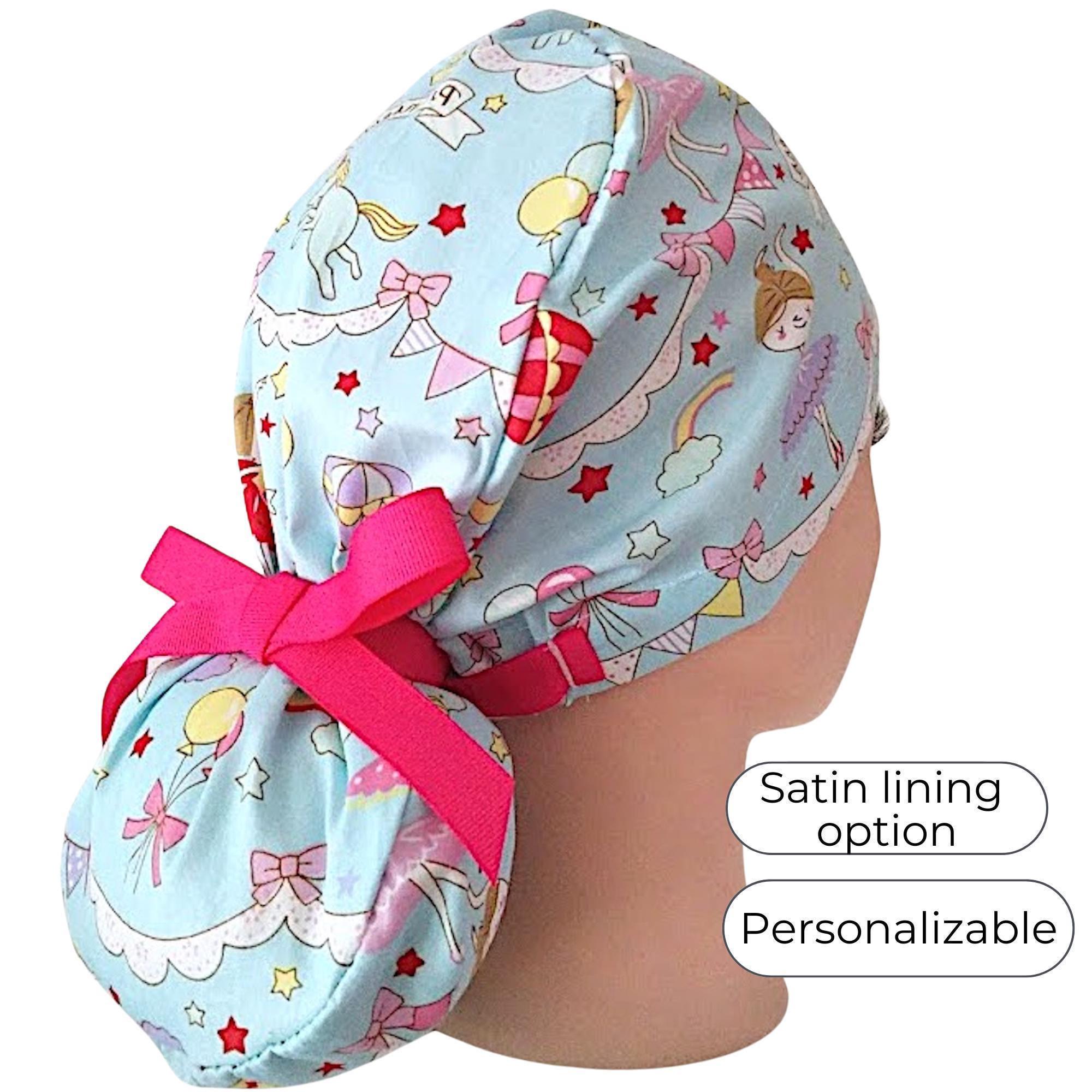 Our ponytail scrub cap is designed with both comfort and style in mind, perfect for long hair and long shifts. Each cap is handmade from high-quality cotton, making it soft, breathable, and comfortable to wear all day. The back features a secure elastic band with ribbon ties, so you can adjust the fit easily and keep your hair neatly in place.