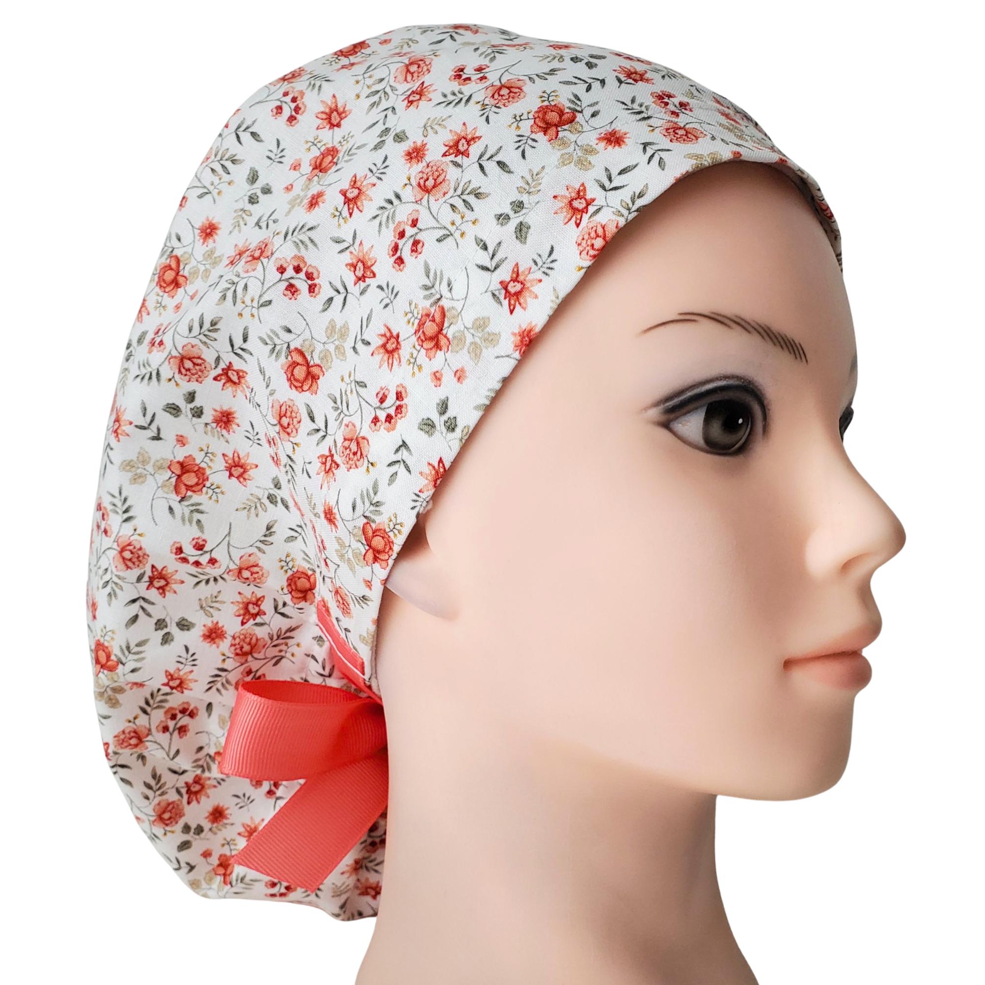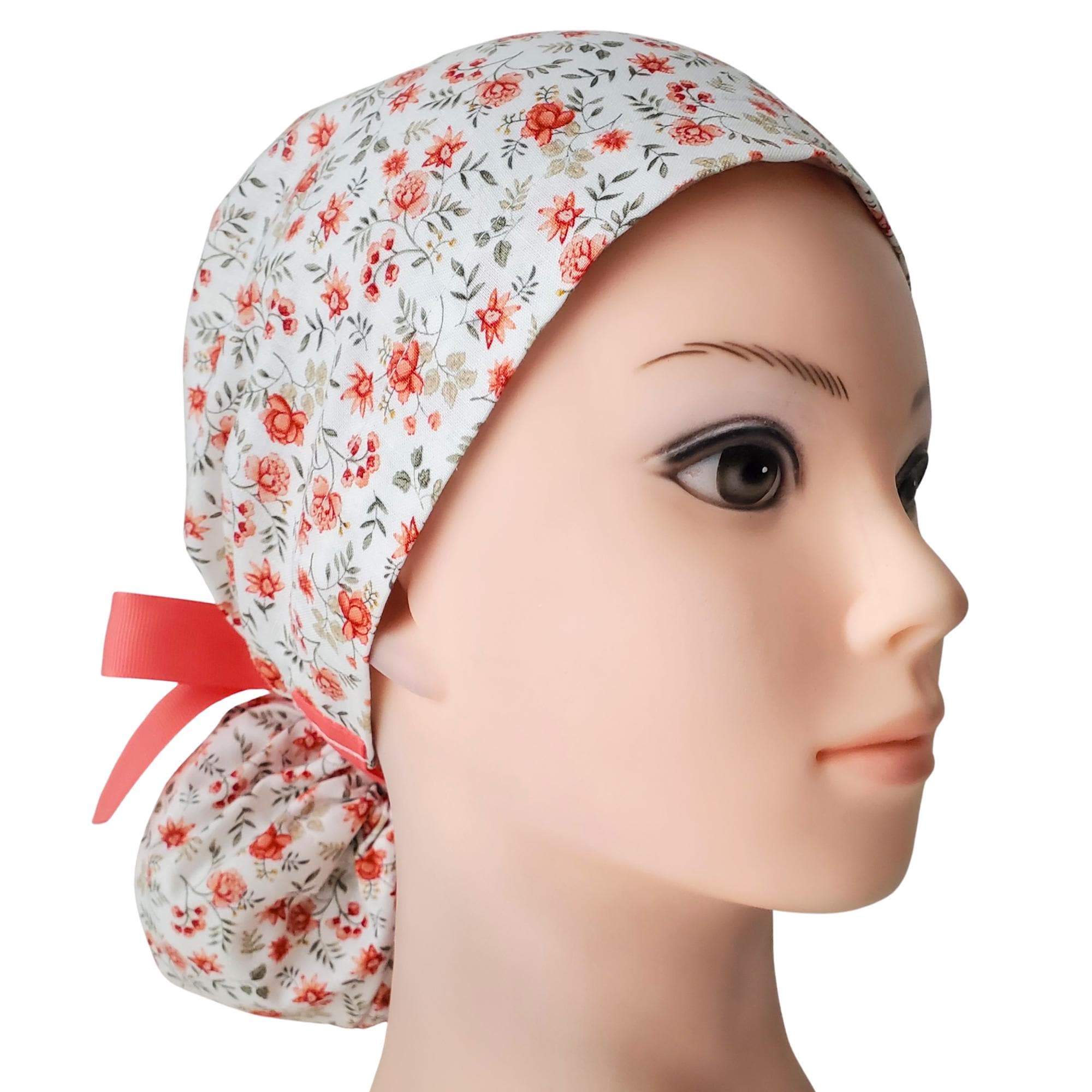 Designed for long hair and long shifts, this ponytail scrub cap combines comfort with a polished, professional look. Made from breathable cotton and finished with adjustable ribbon ties, it keeps your hair secure and neatly in place throughout the day.
