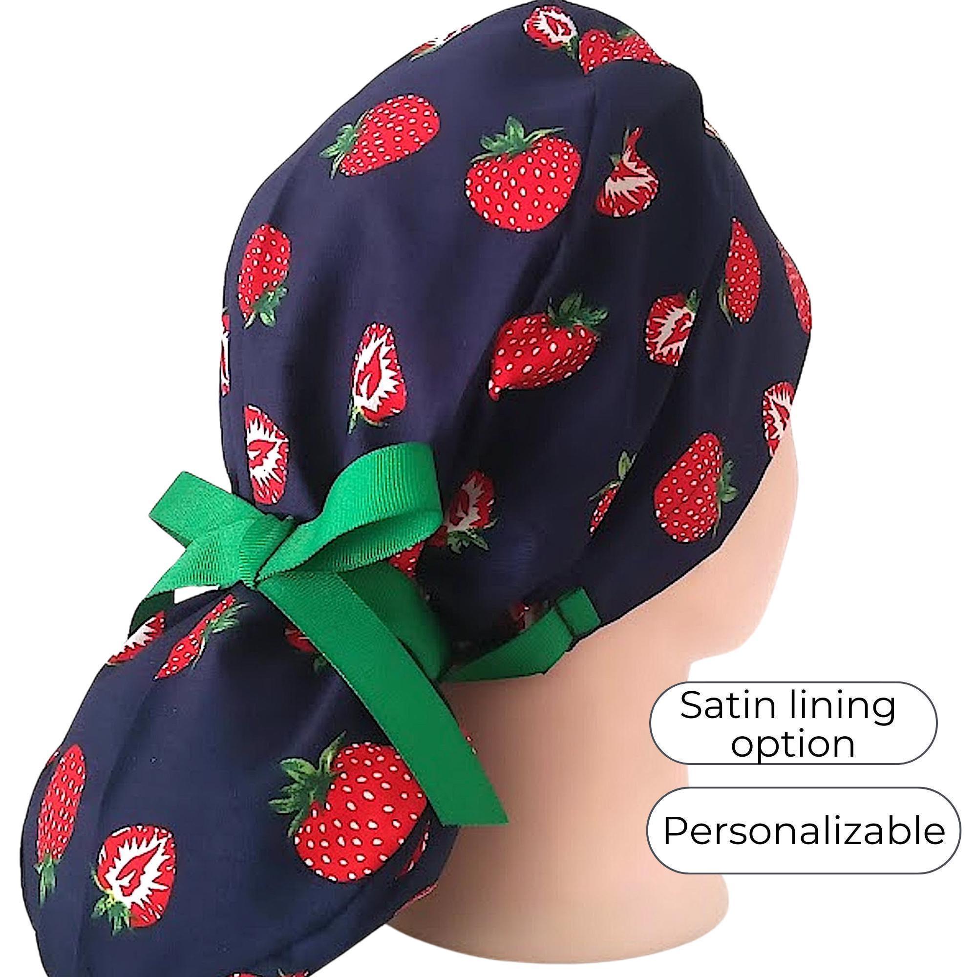 The secure elastic back and ribbon ties keep hair neatly in place, while the optional satin lining protects hair from frizz and breakage. Personalize it with embroidery for a truly custom scrub hat.