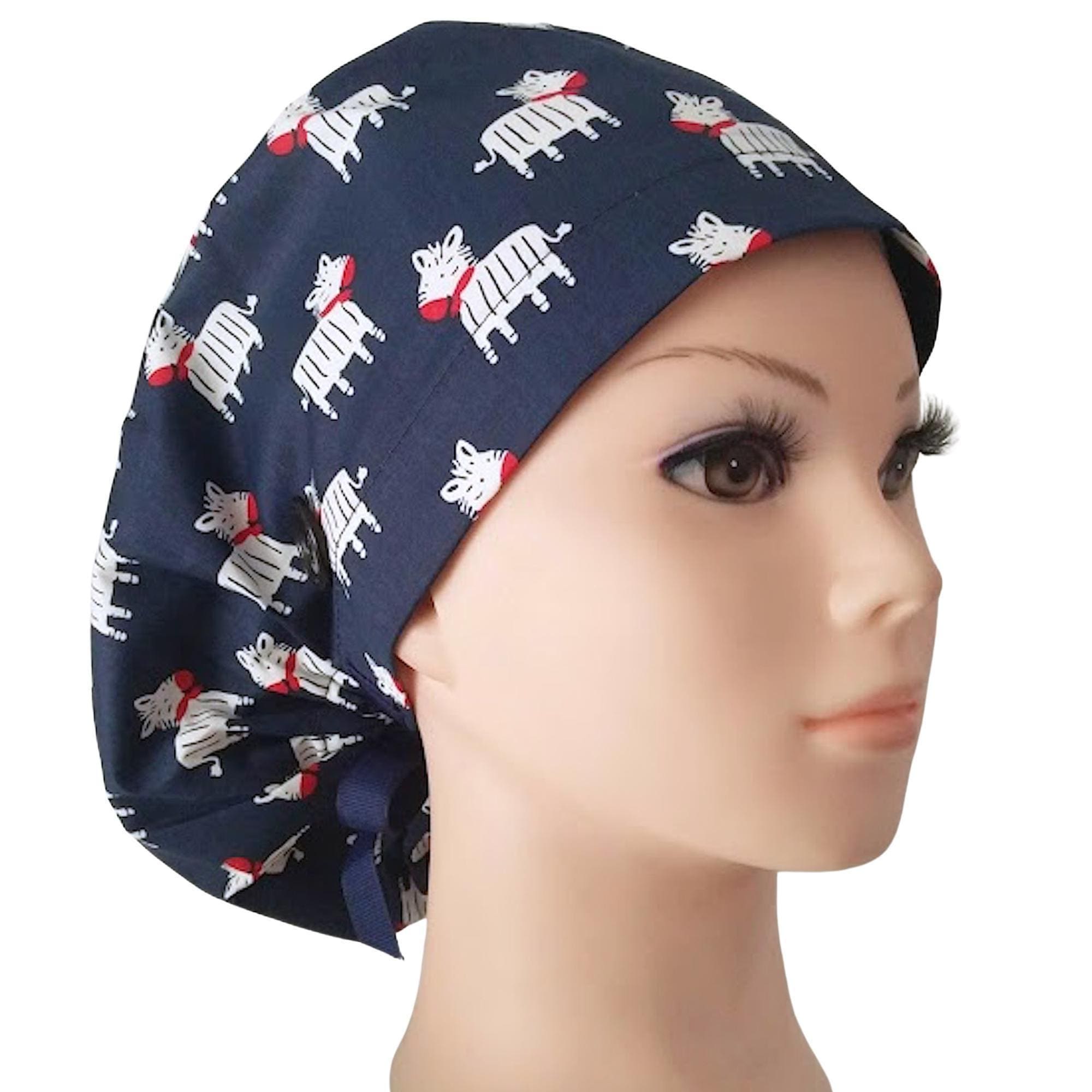 Zebra Ponytail Scrub Cap for Women - Surgical Cap with Satin Lined option