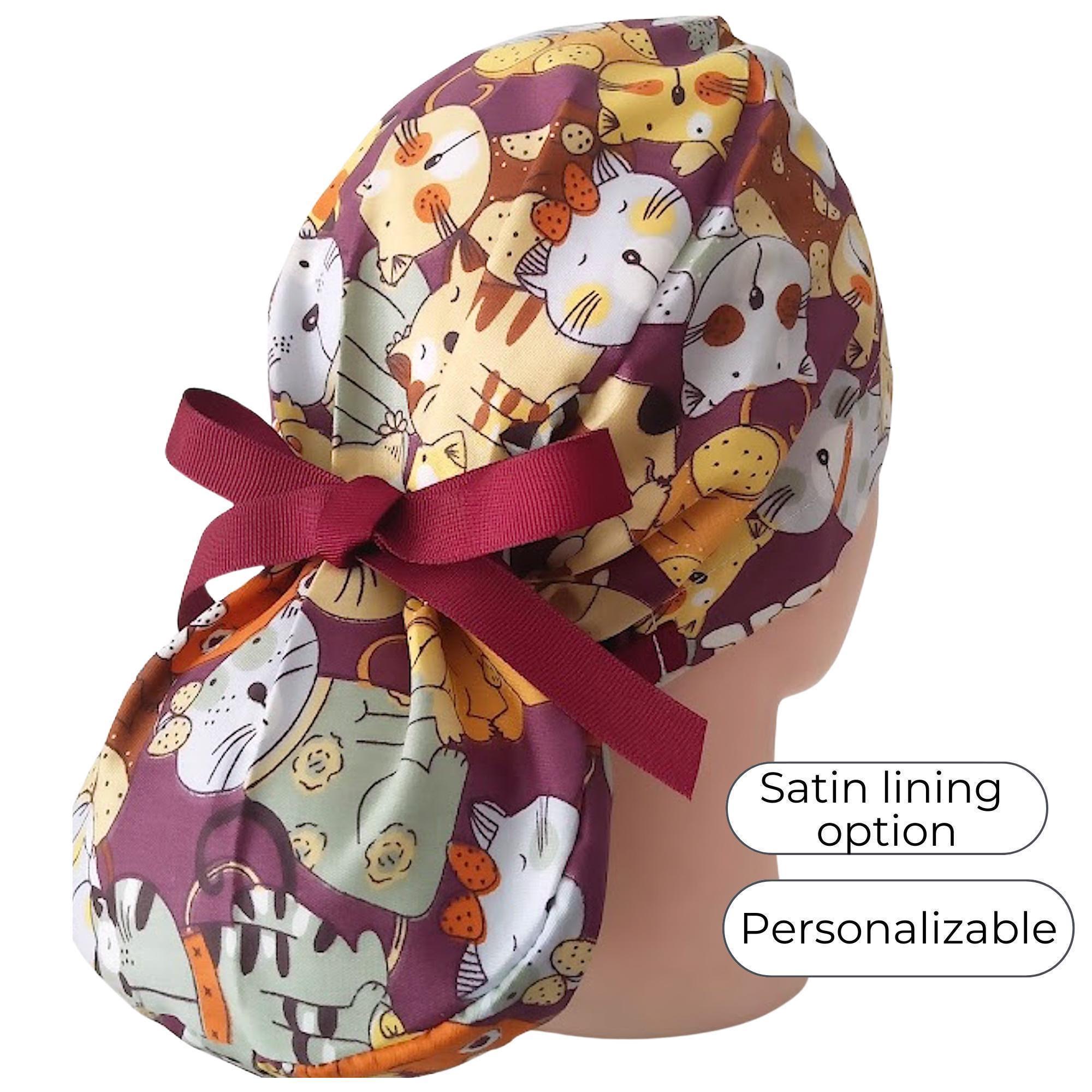 Our ponytail scrub cap is designed with both comfort and style in mind, perfect for long hair and long shifts. Each cap is handmade from high-quality cotton, making it soft, breathable, and comfortable to wear all day. The back features a secure elastic band with ribbon ties, so you can adjust the fit easily and keep your hair neatly in place.