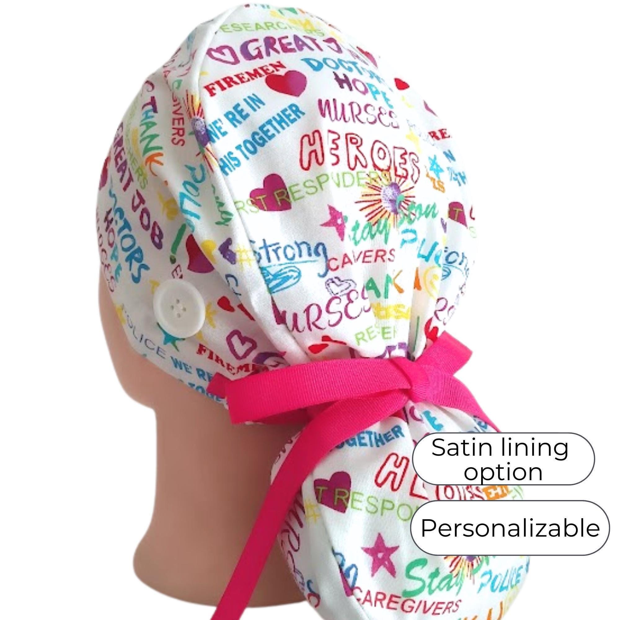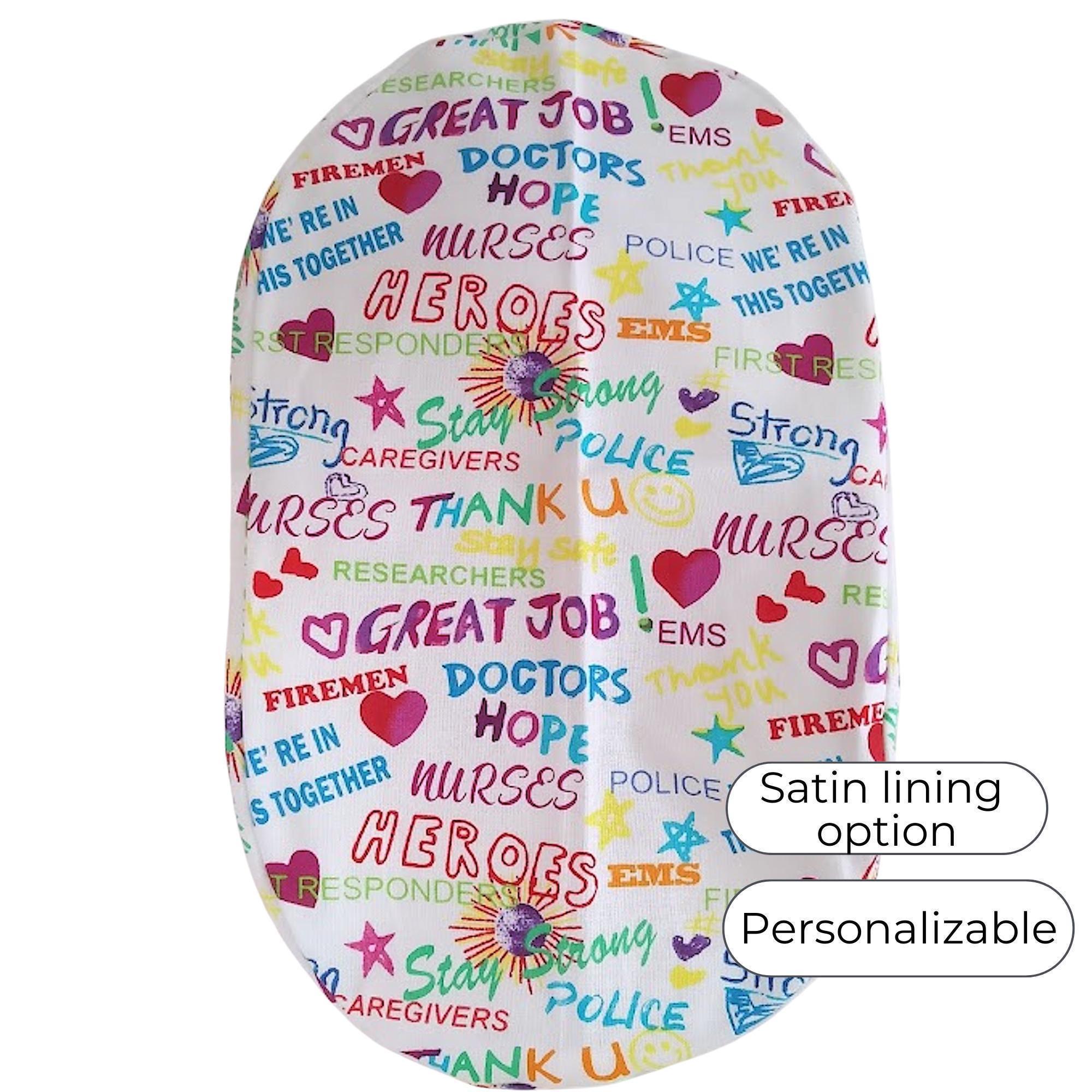 Choose from a variety of fabric prints, with the option for satin lining and personalization to make your cap unique. These surgical hats are durable, lightweight, and easy to care for — just machine wash and reuse.