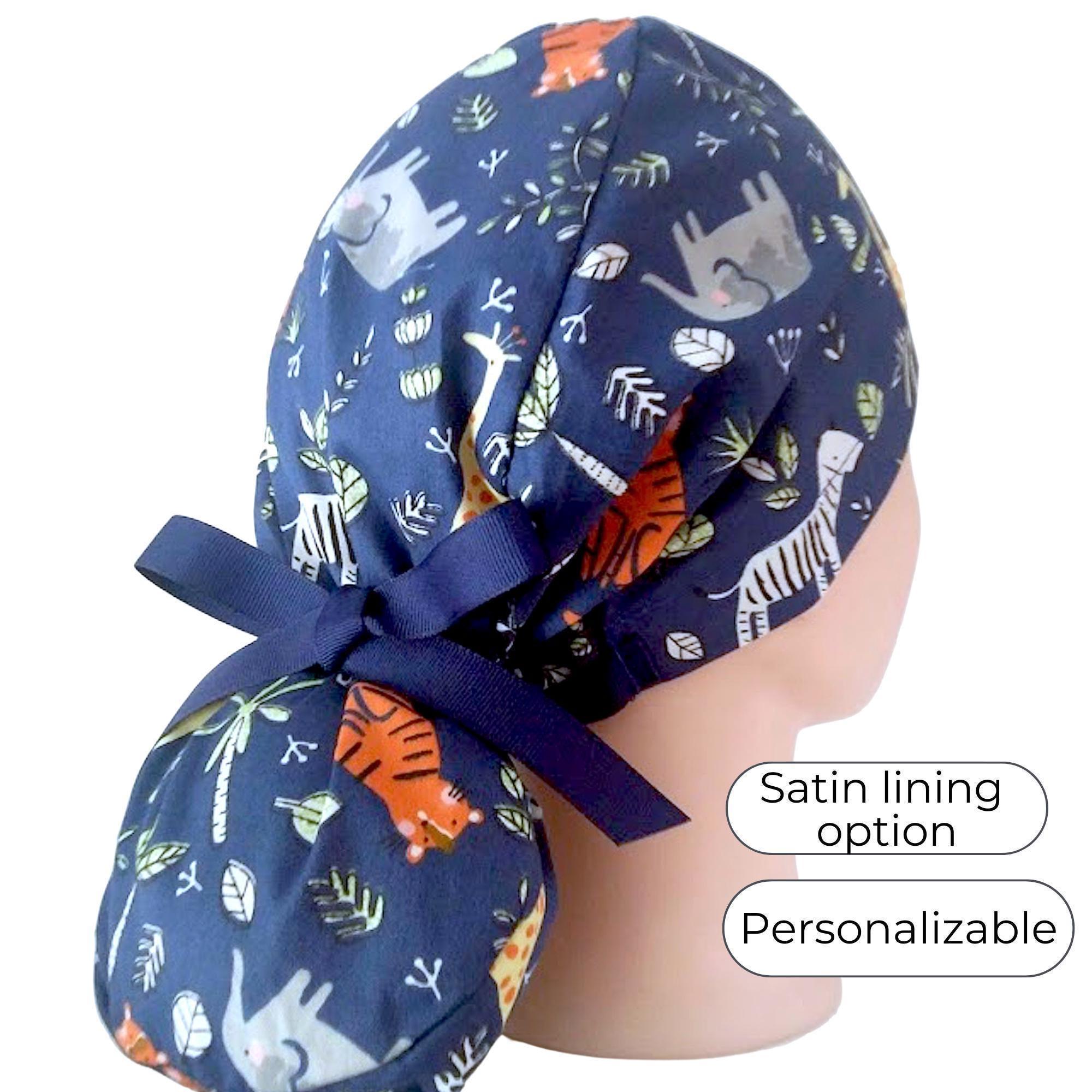 Wild Animals Ponytail Scrub Cap Satin Lined Option