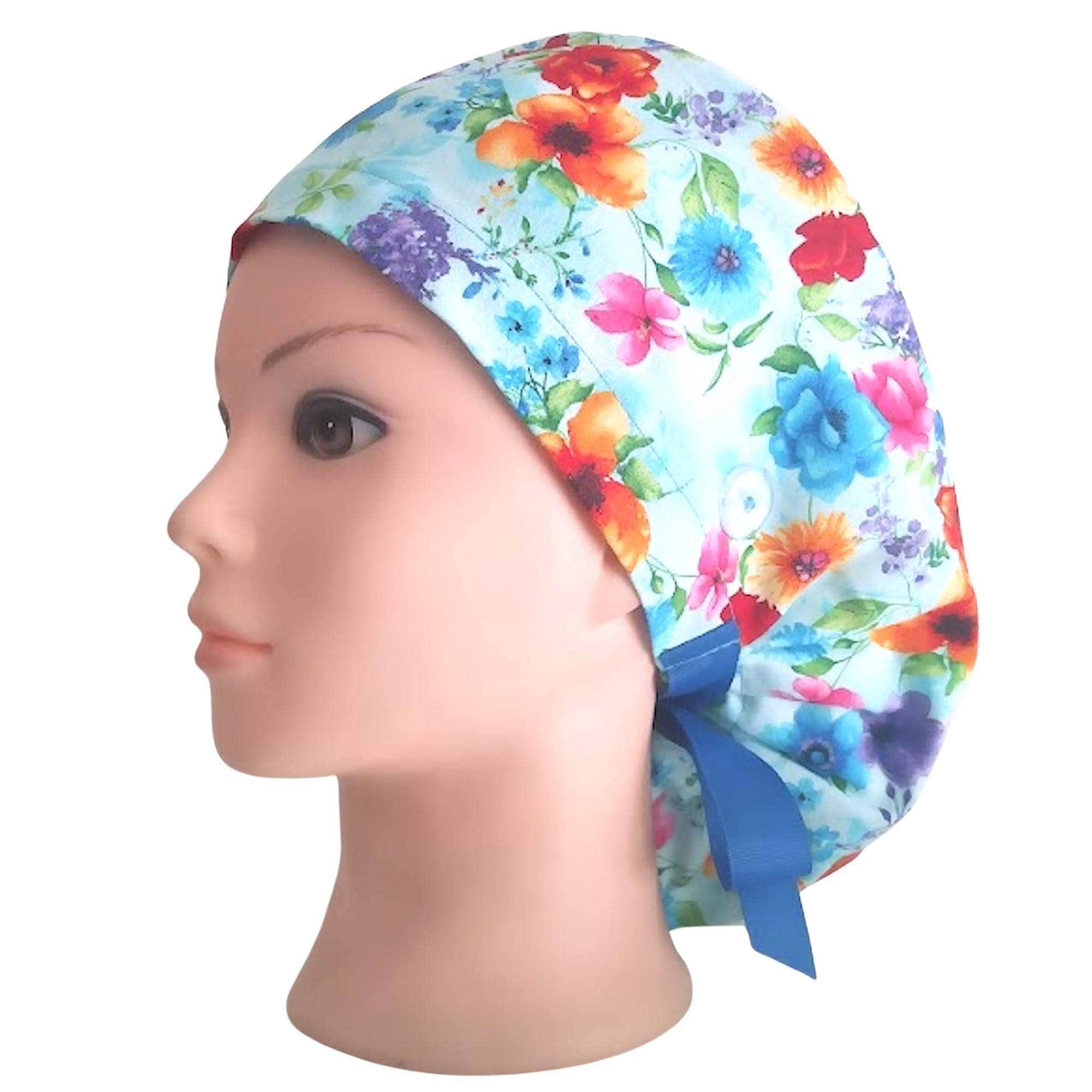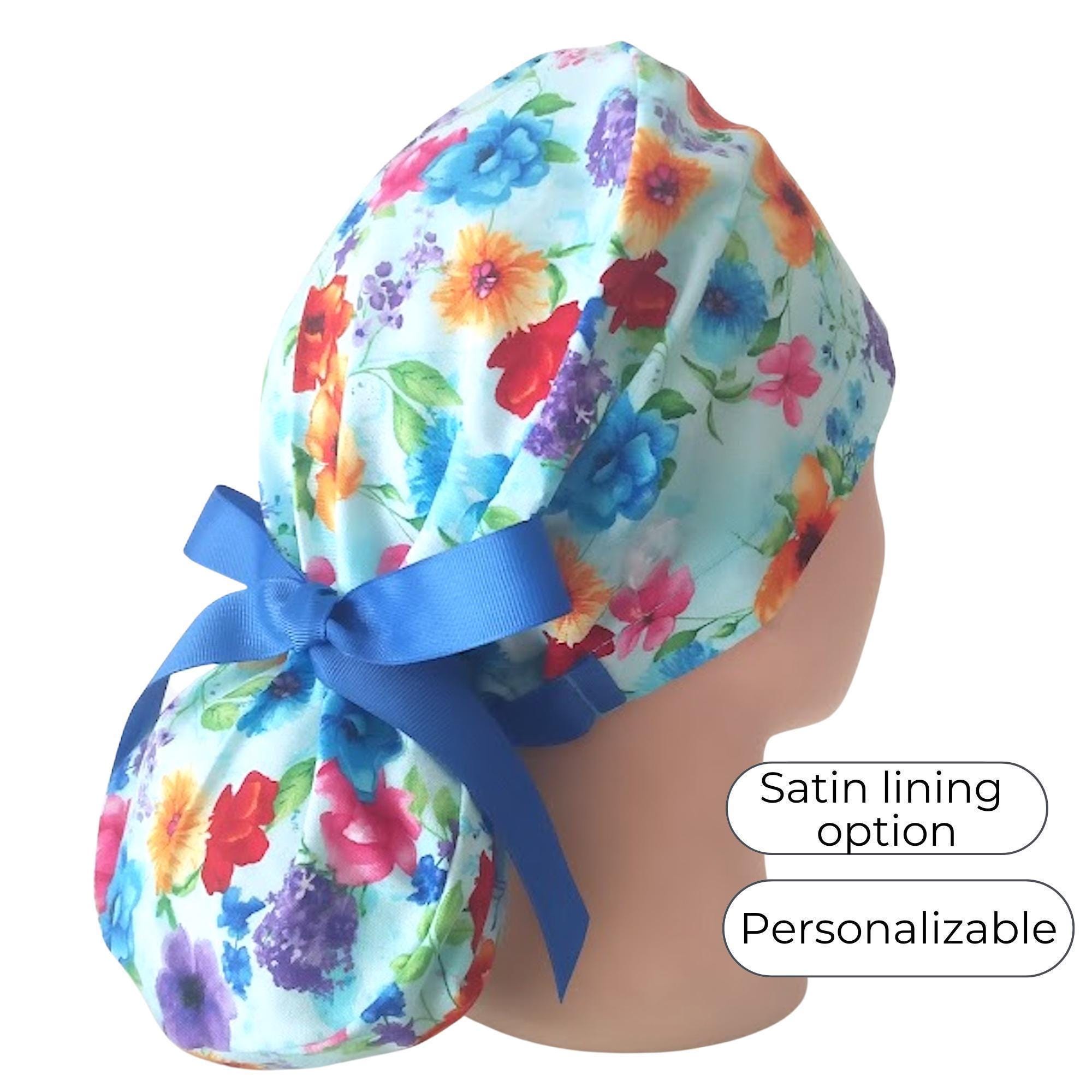 Discover the perfect blend of comfort and style with our ponytail scrub cap, thoughtfully designed for long hair and busy shifts. Crafted from high-quality cotton and featuring a floral pattern, this satin scrub cap offers breathability and softness to keep you comfortable all day. With adjustable ribbon ties and an elastic band, these scrub caps ponytail style ensure a secure fit that stays in place no matter the pace.