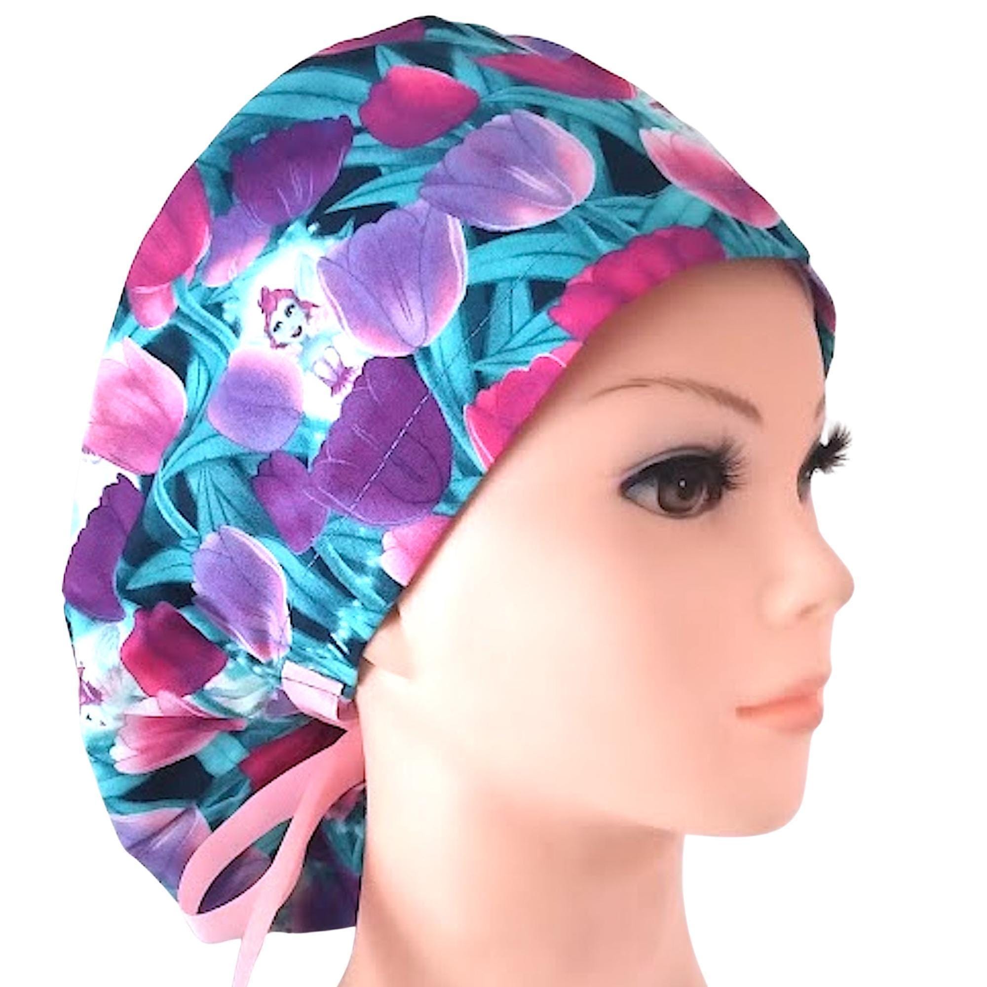 Tulips Glow in the Dark Scrub Caps Ponytail - Satin Lining option -