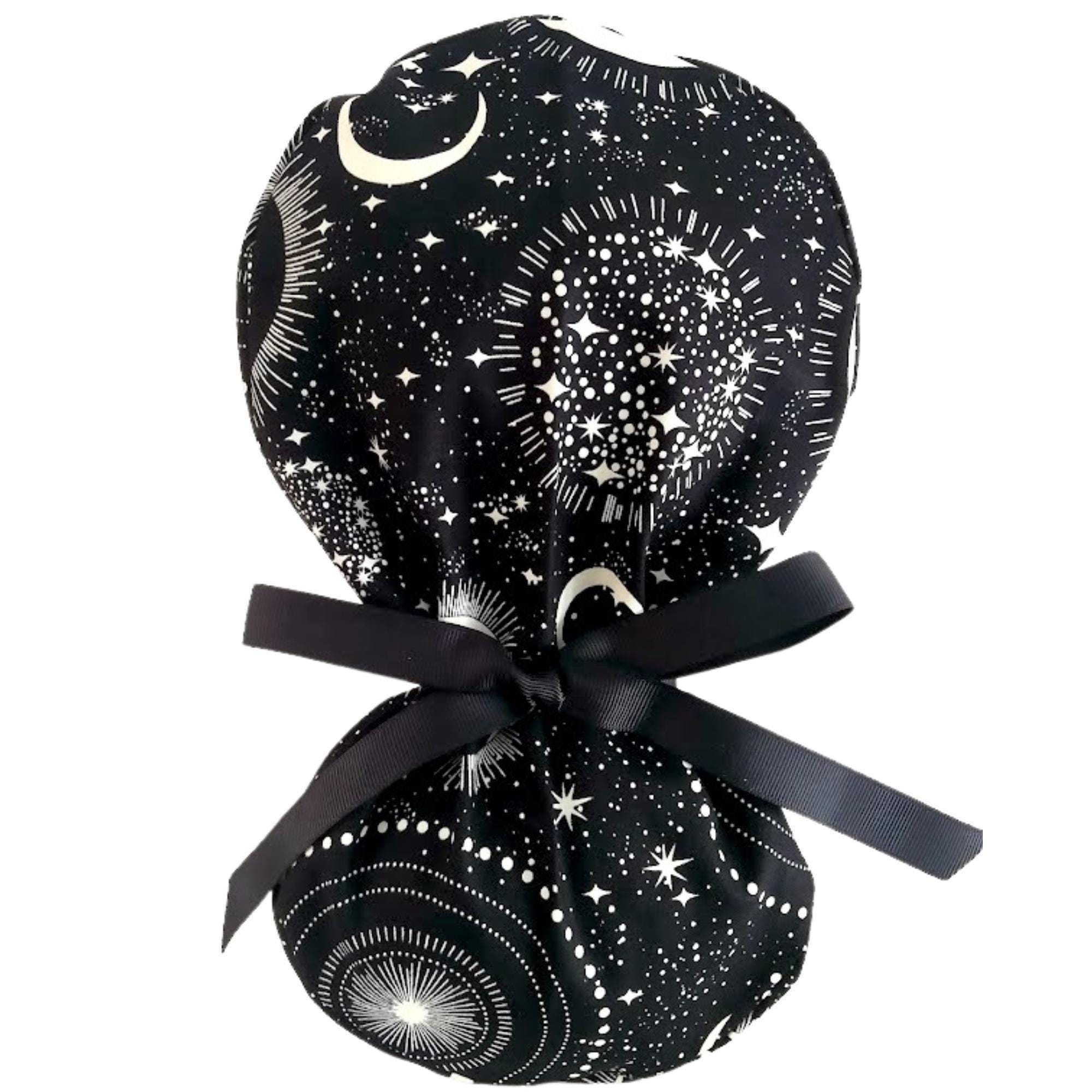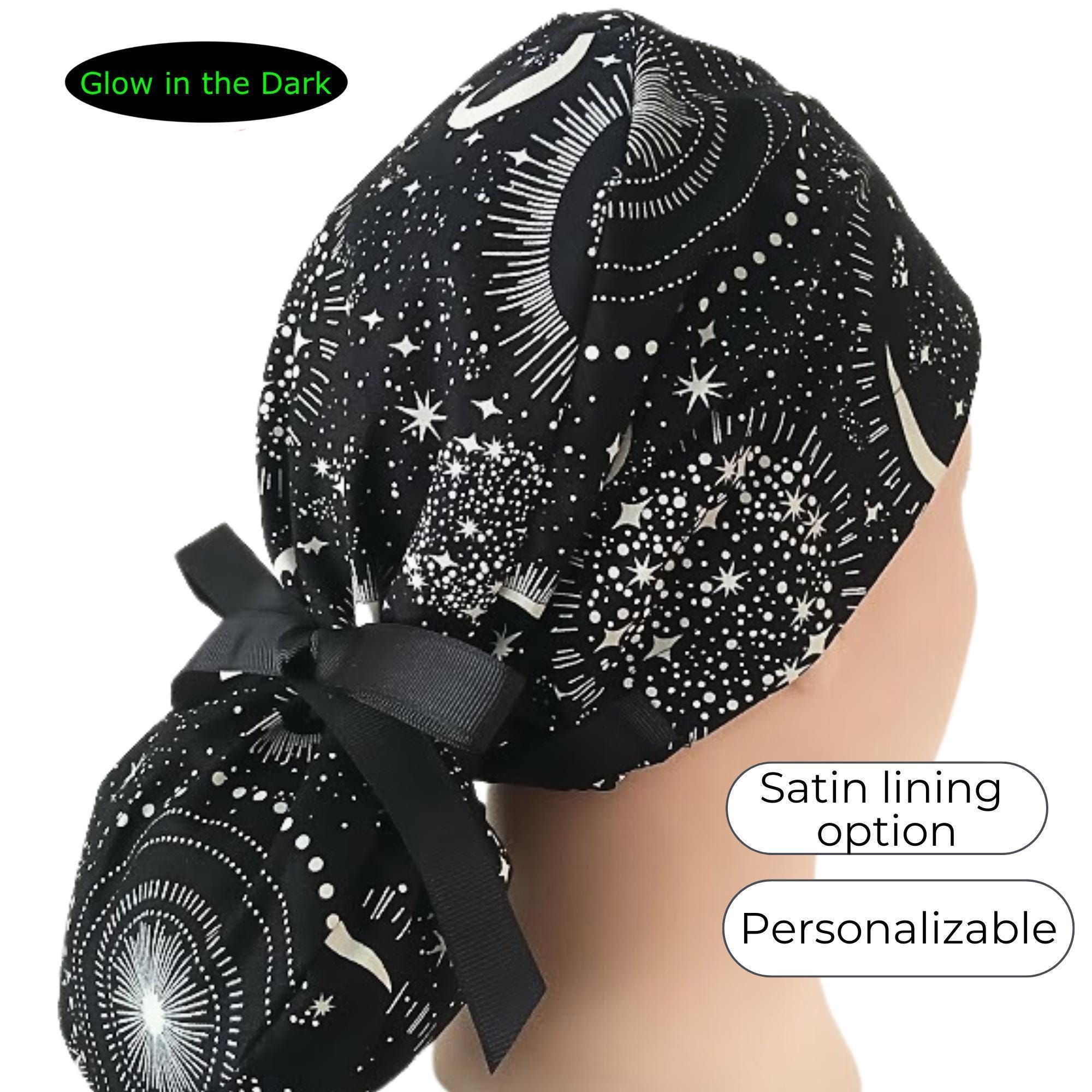The inlay of satin is so perfect for my hair, and surprisingly I donโt sweat as much when I wear this scrub cap, even if Iโm wearing lead for hours on end! Also my surgeons and I love that it glows in the dark, beautifully made!! Thank you!!