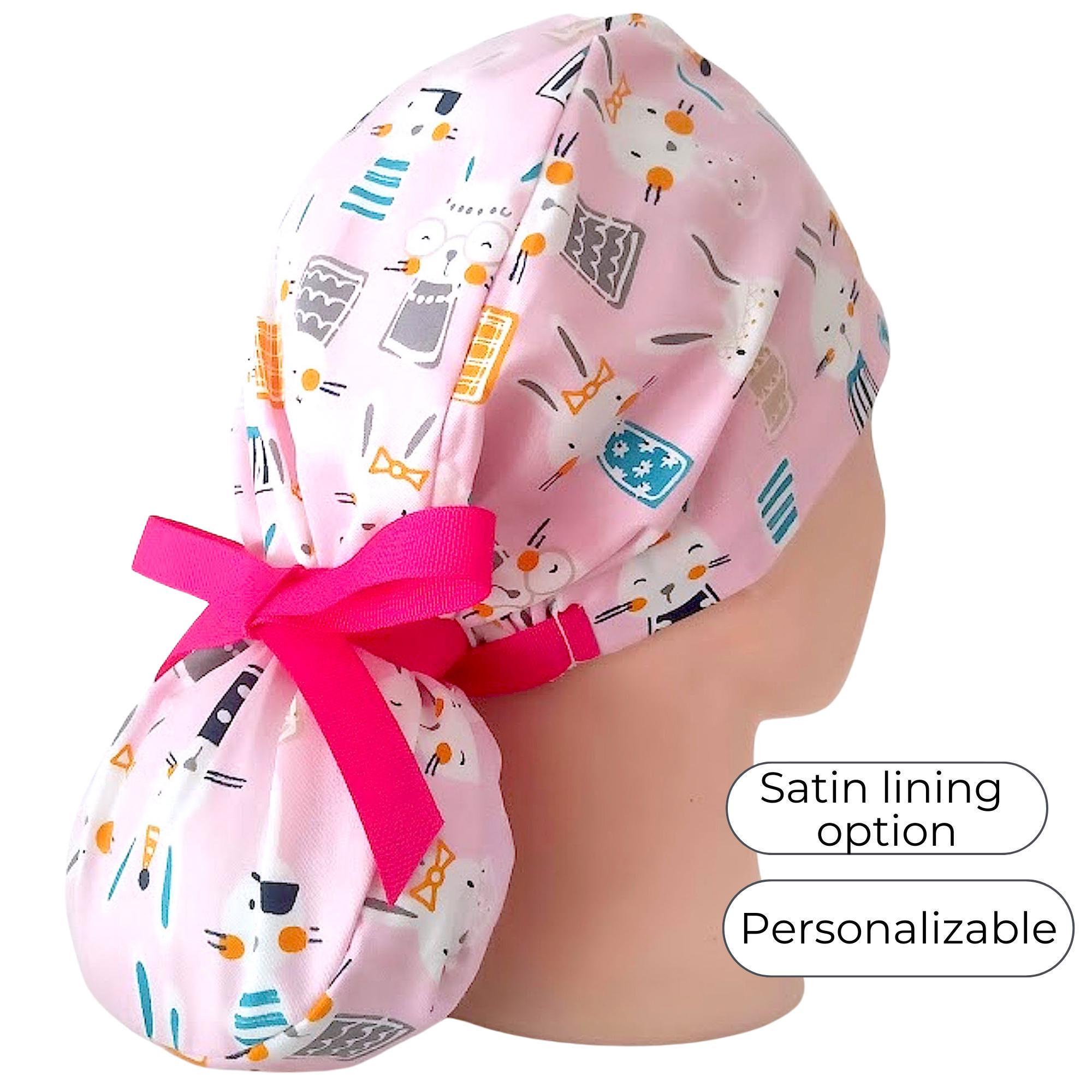 Our ponytail scrub cap is designed with both comfort and style in mind, perfect for long hair and long shifts. Each cap is handmade from high-quality cotton, making it soft, breathable, and comfortable to wear all day. The back features a secure elastic band with ribbon ties, so you can adjust the fit easily and keep your hair neatly in place.