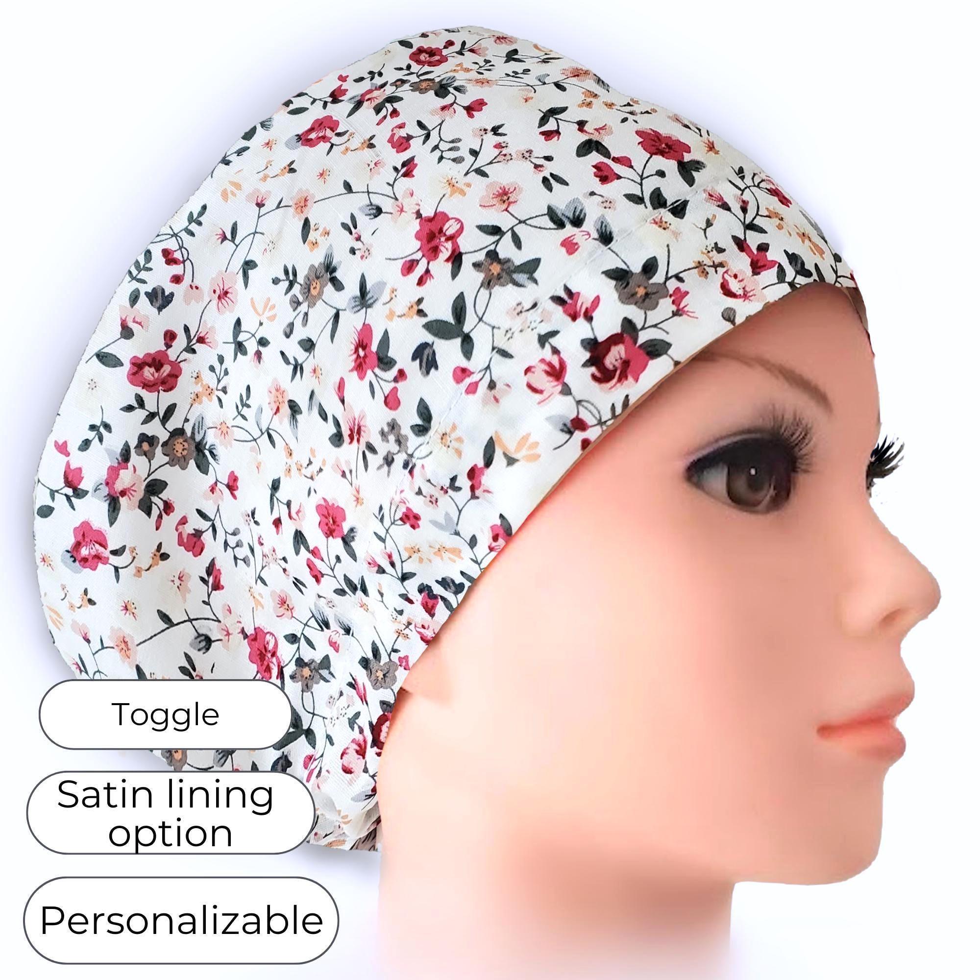 Add charm and comfort to your workday with this Red Floral Euro Scrub Cap, perfect for healthcare professionals who want both style and function. With its elegant white background and red flower pattern, this cap is eye-catching yet practical. The euro style design fits close to the head, while the adjustable toggle ensures a secure and comfortable fit. Optional satin lining helps protect hair from frizz, dryness, and breakage during long shifts.