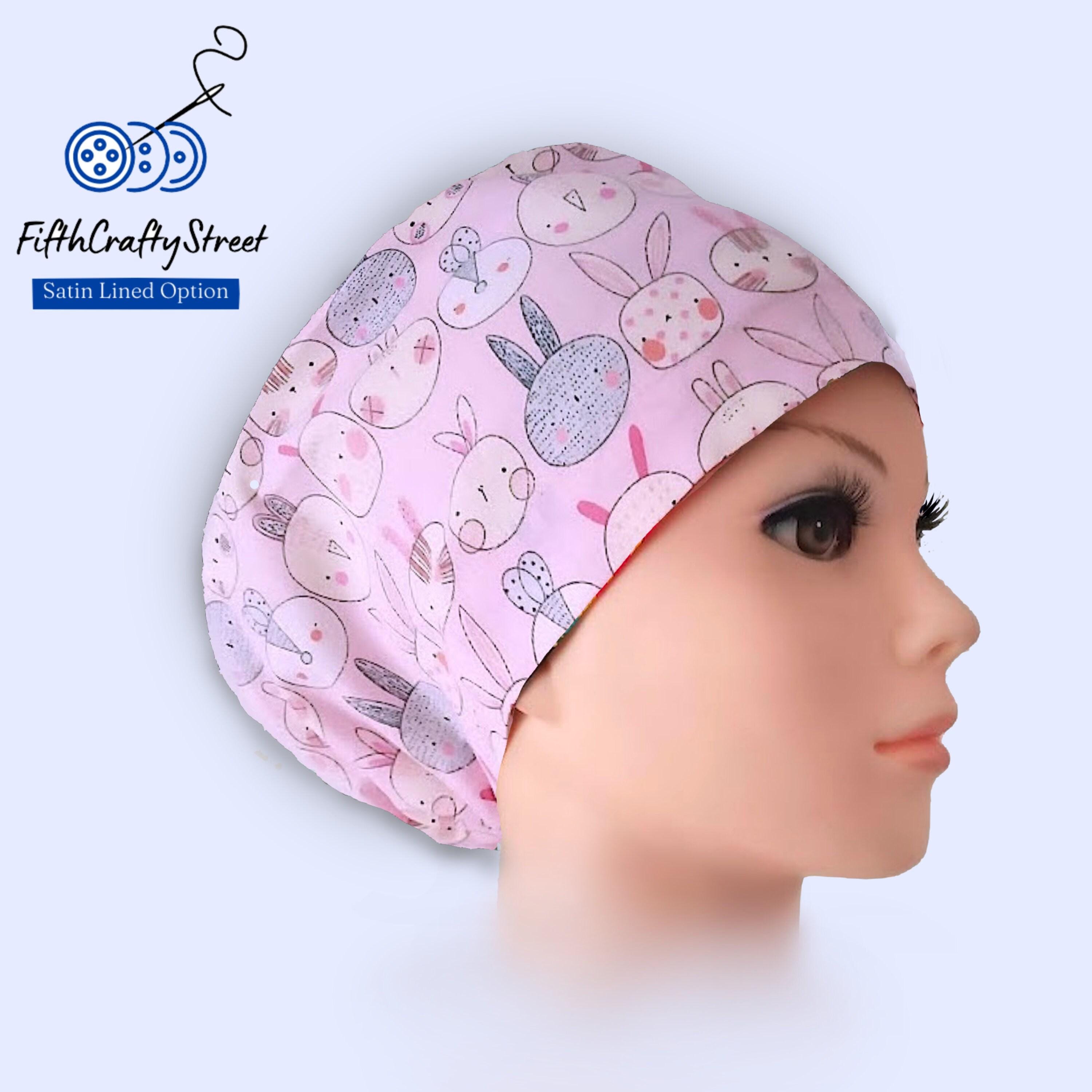 Easter Bunny Euro Scrub Caps - Adjustable - Satin Lining option -
