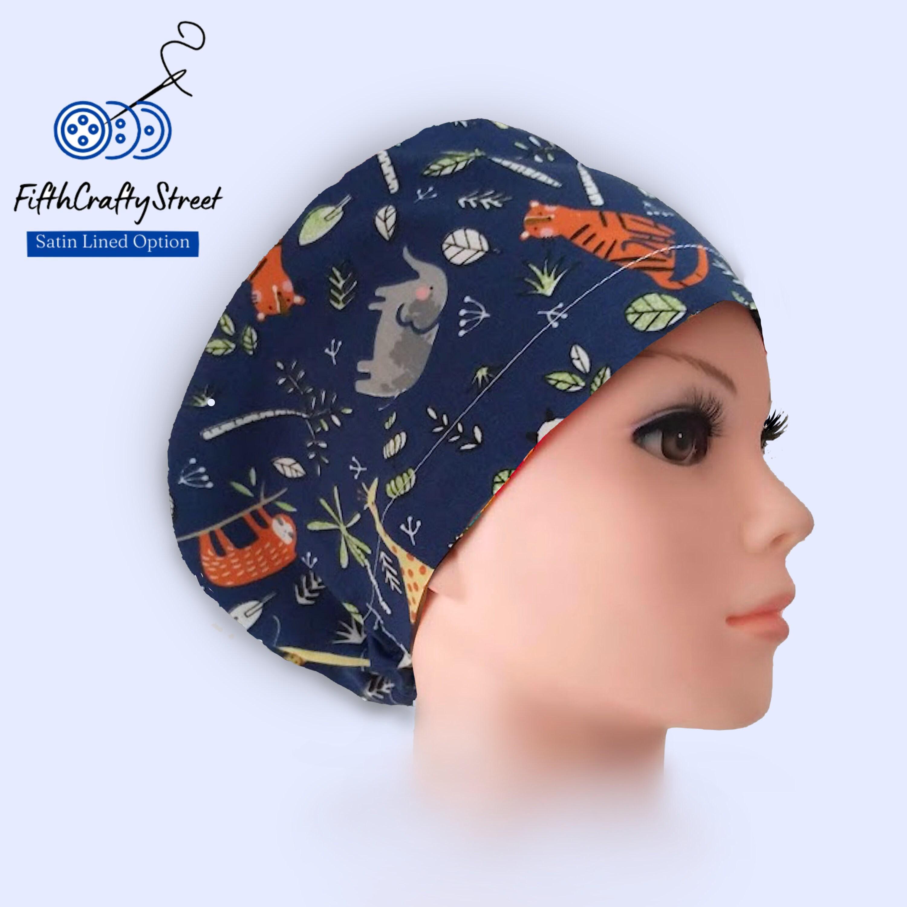 Wildlife Euro Scrub Cap: Adjustable Cotton Surgical Hat, Satin Lined Option