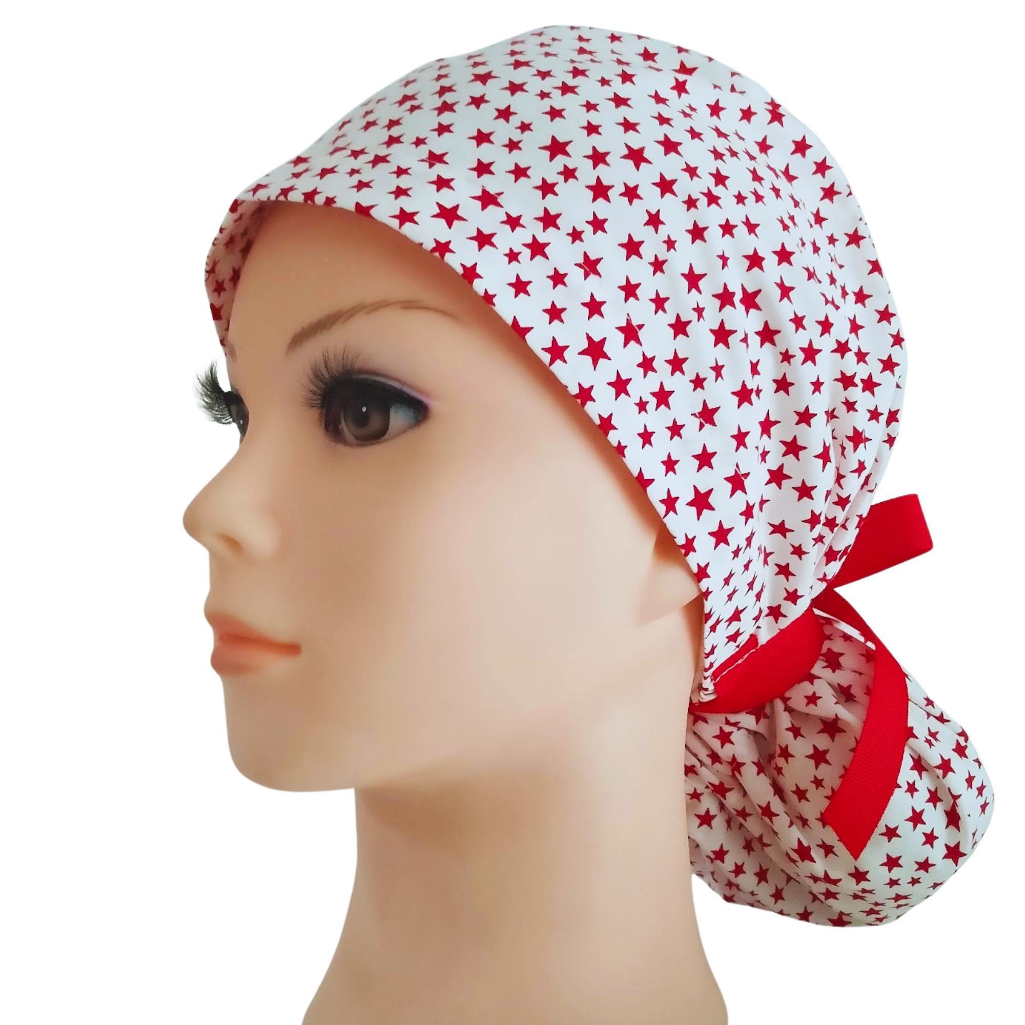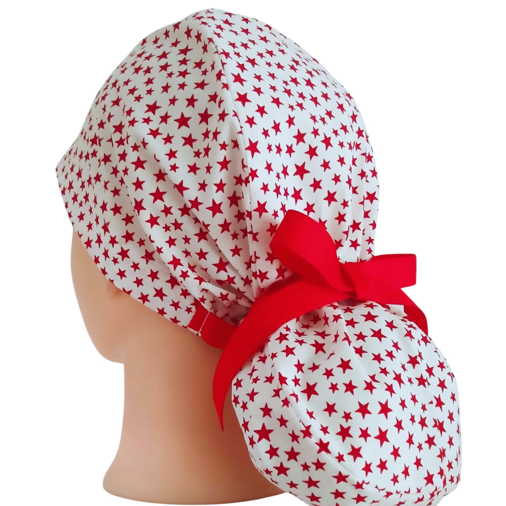 Our ponytail scrub cap is designed with both comfort and style in mind, perfect for long hair and long shifts. Each cap is handmade from high-quality cotton, making it soft, breathable, and comfortable to wear all day. The back features a secure elastic band with ribbon ties, so you can adjust the fit easily and keep your hair neatly in place.