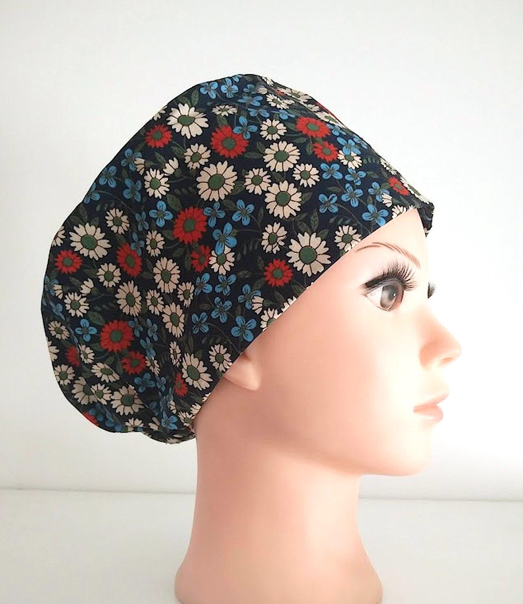 Euro Style Scrub Cap - Adjustable - Satin Lining option - Wildflowers