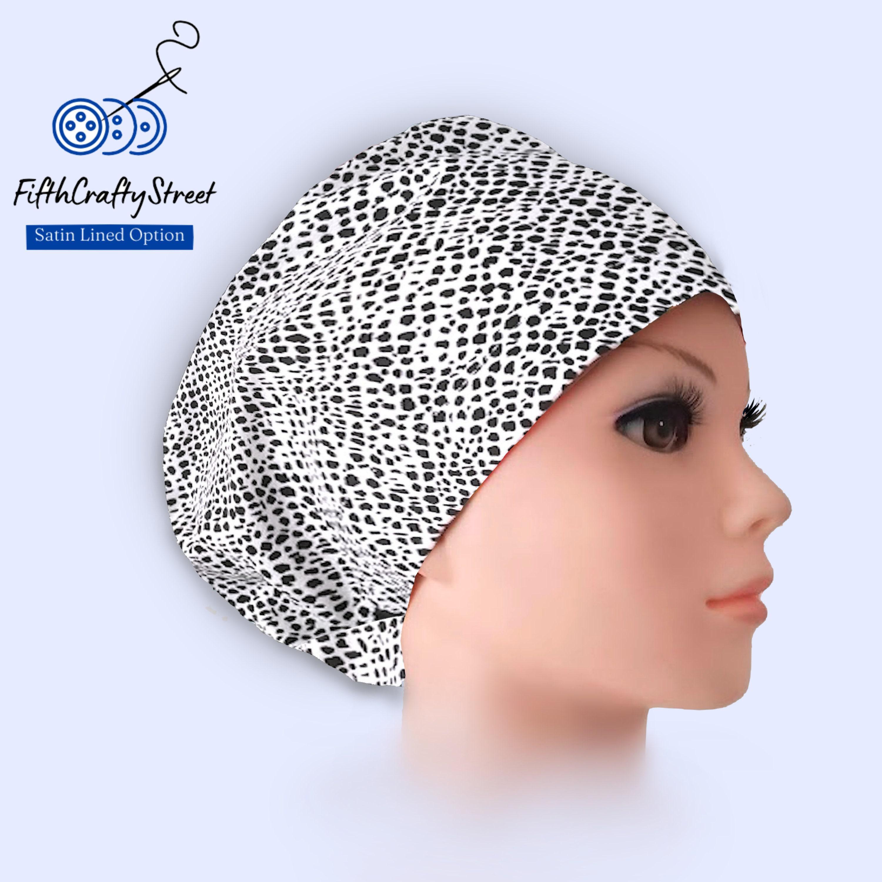 Euro Scrub Cap - Adjustable by toggle - Satin Lining option - Animal print Gray