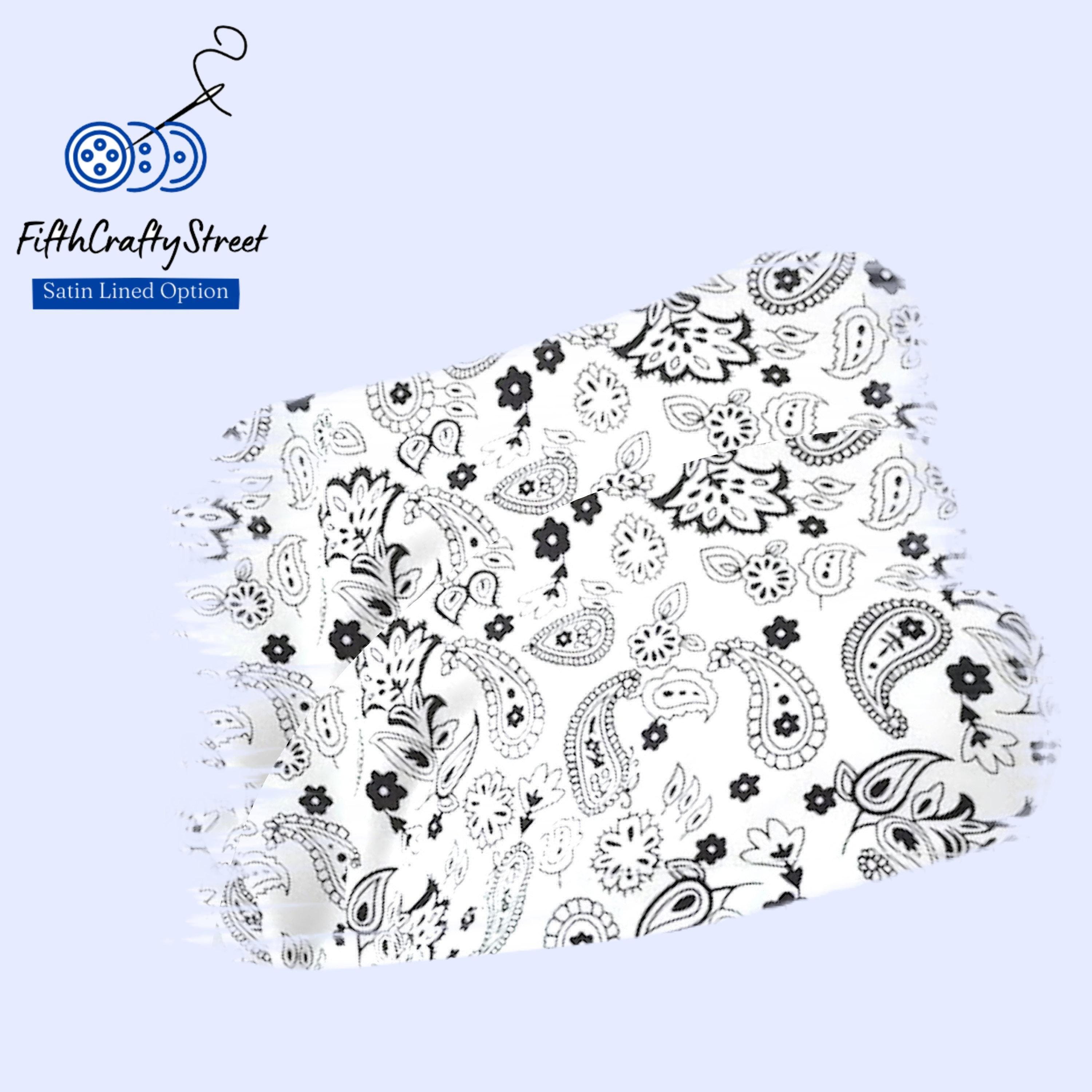 Satin Lined Euro Scrub Cap: Paisley Black & White, Adjustable