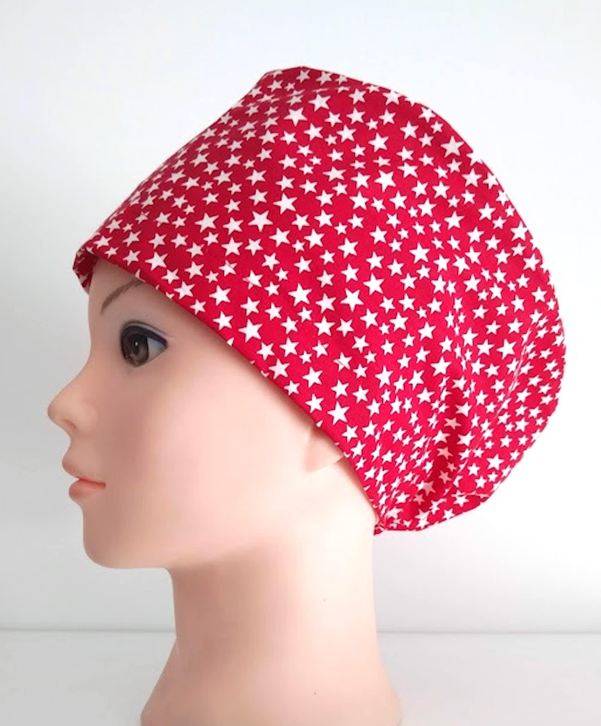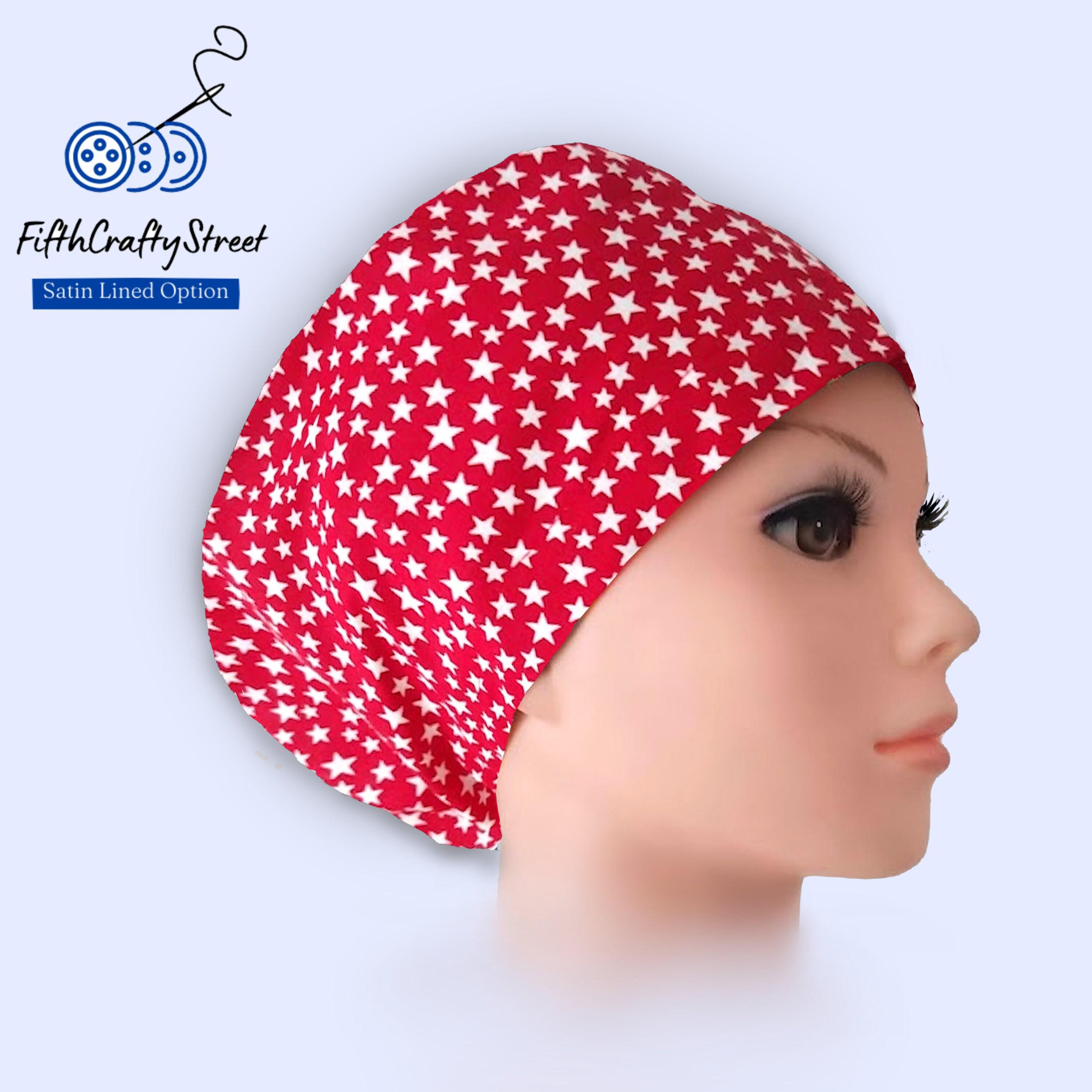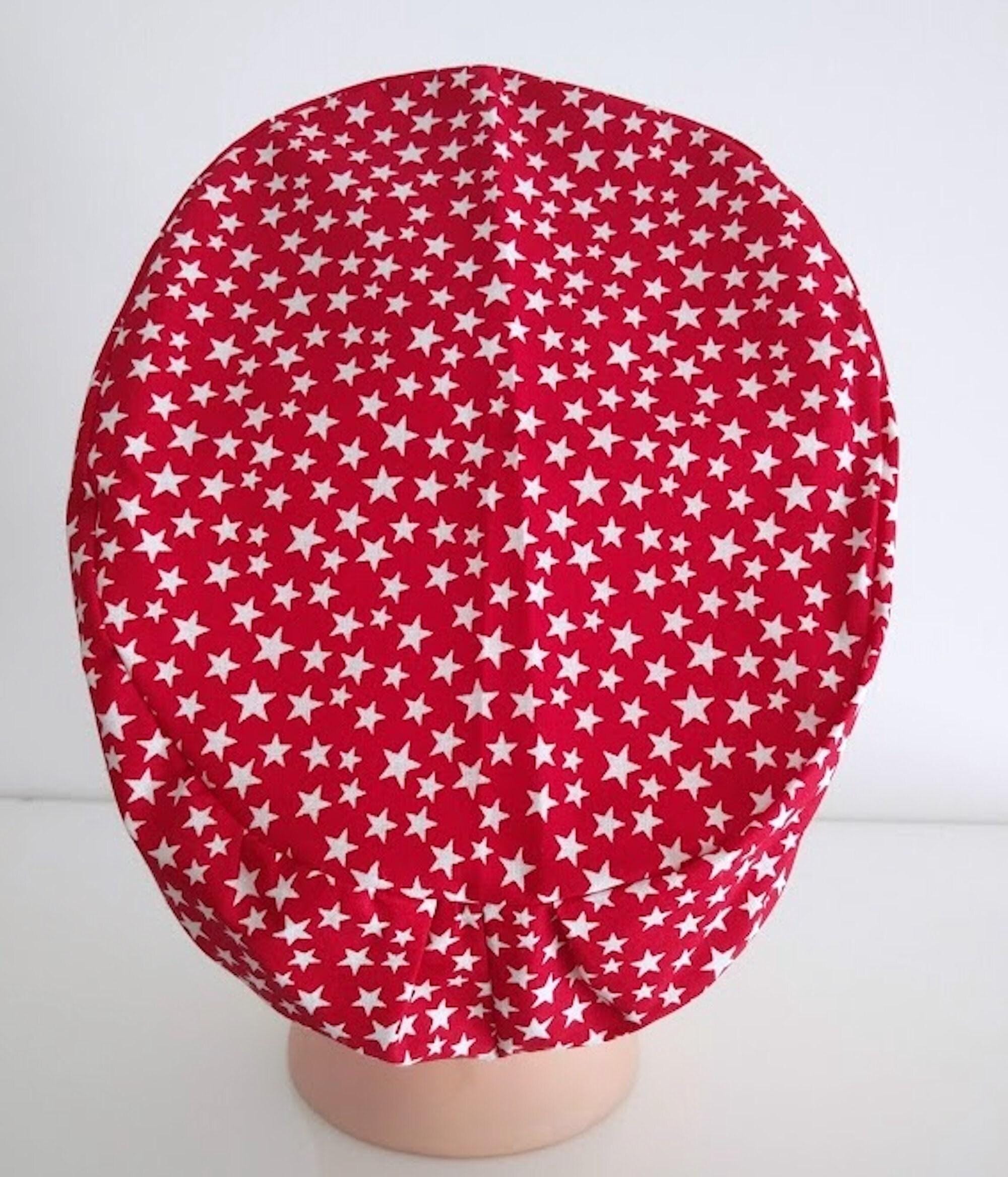 Patriotic - Euro Scrub Cap - Surgical Cap - Silky Satin Lining Option -White Stars on Red -