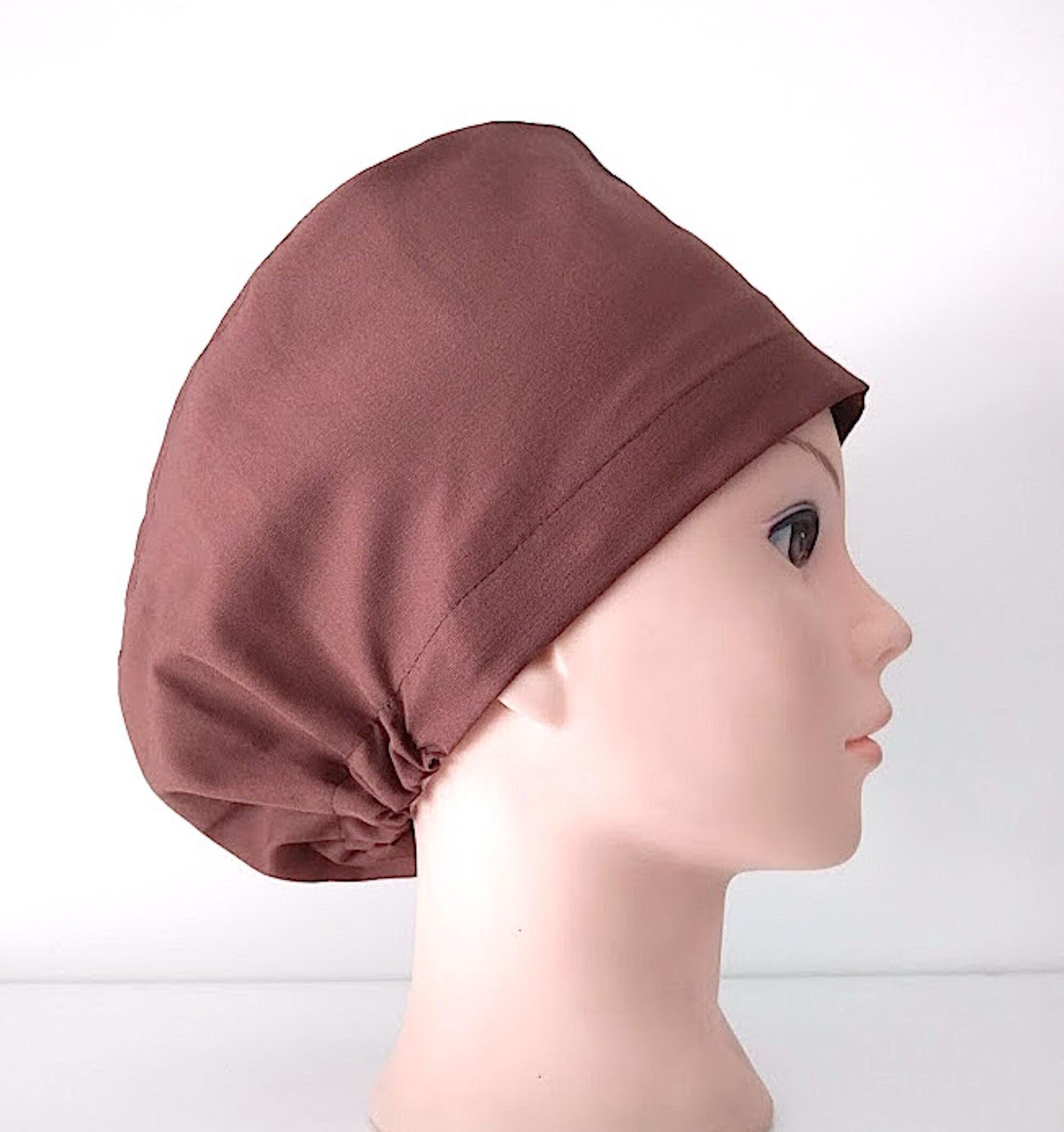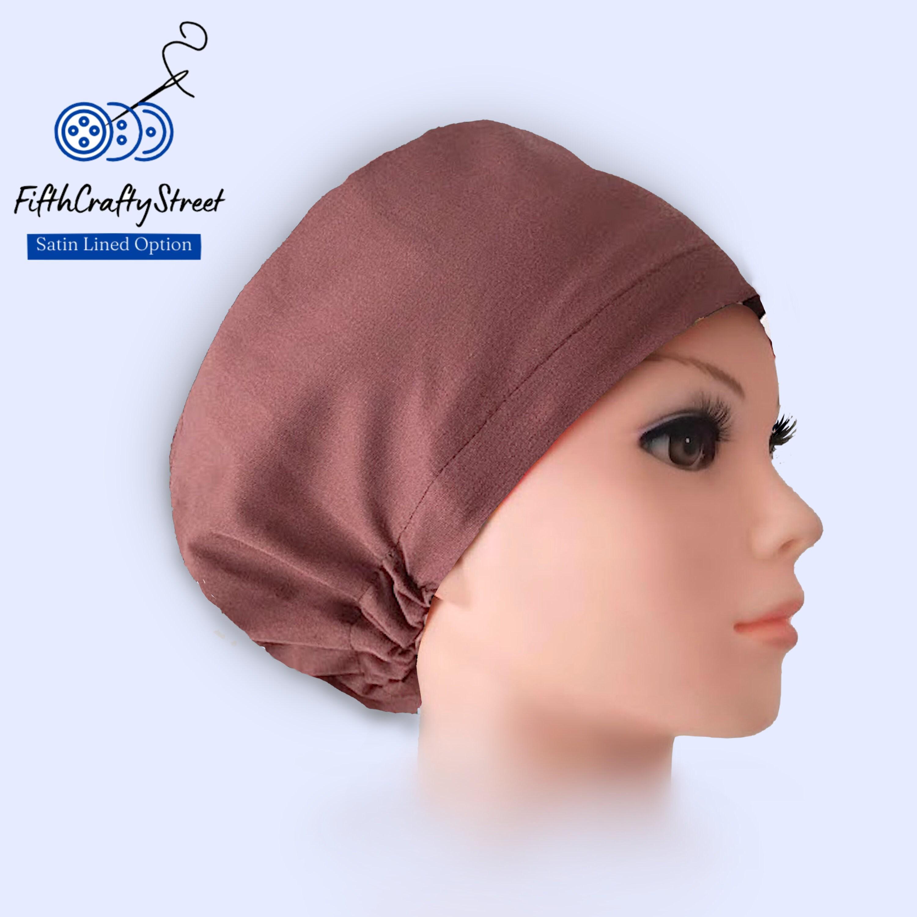 Brown Euro Scrub Cap: Adjustable Satin-Lined Cotton Surgical Cap