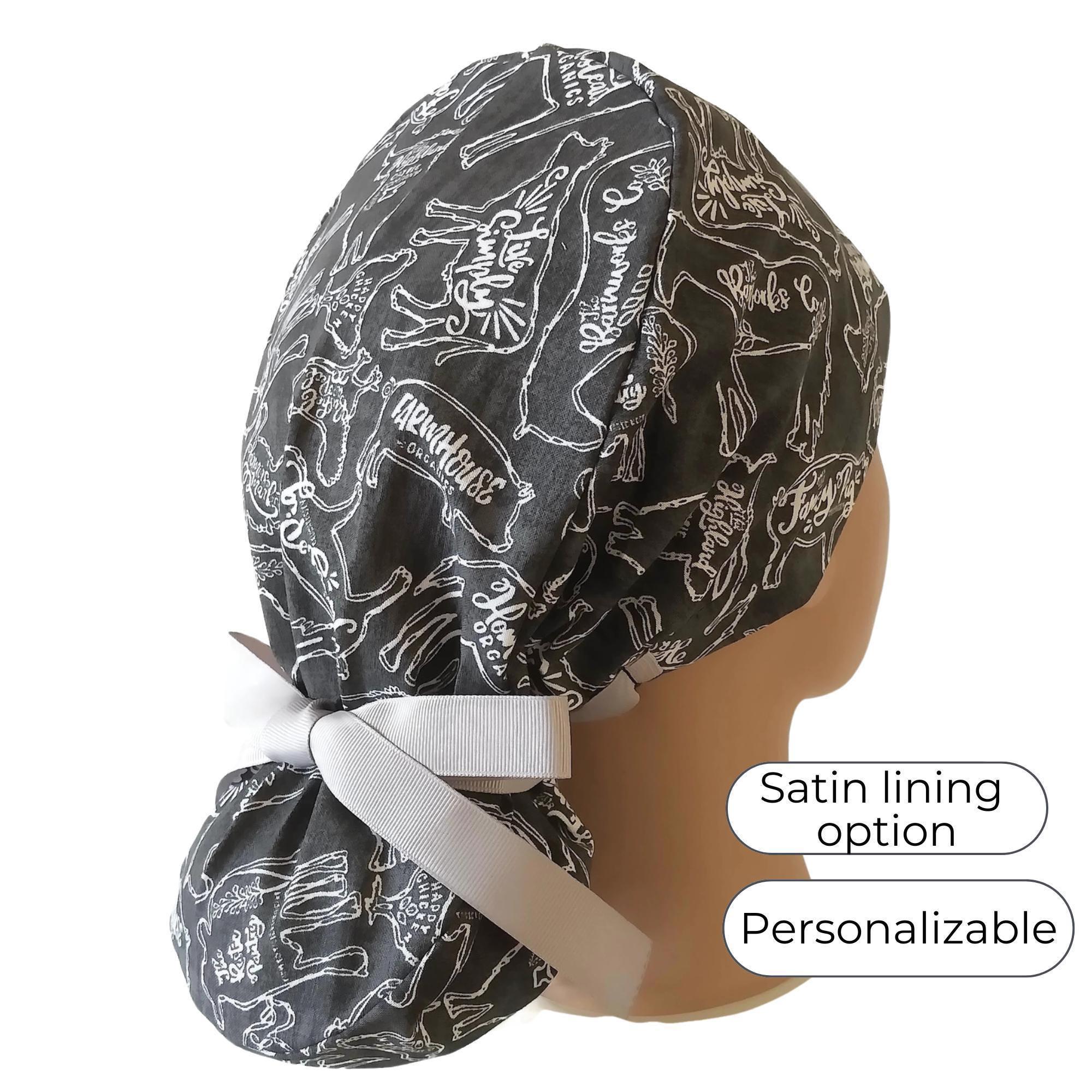 Farmhouse Organic Ponytail Surgical Cap with Satin Lining Option