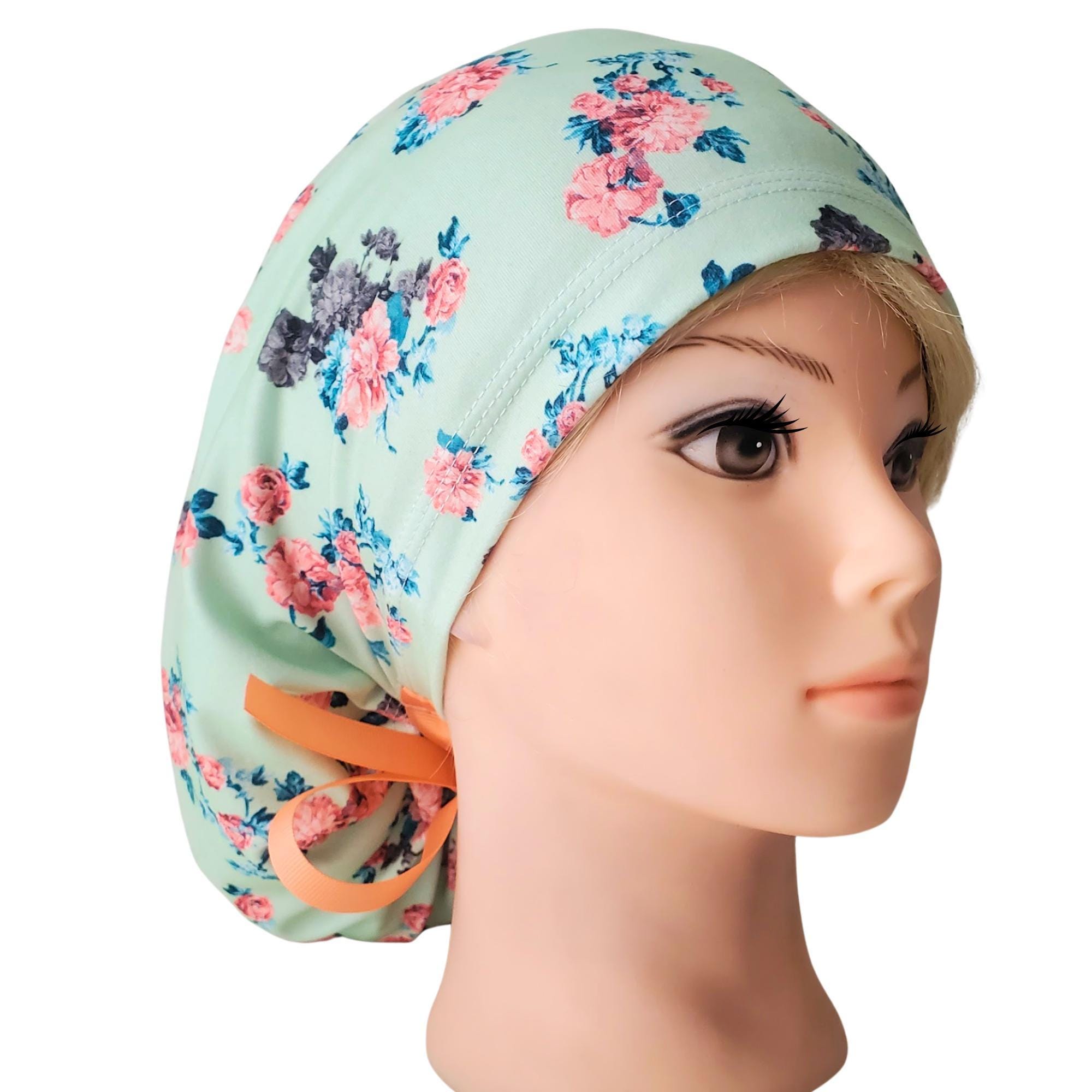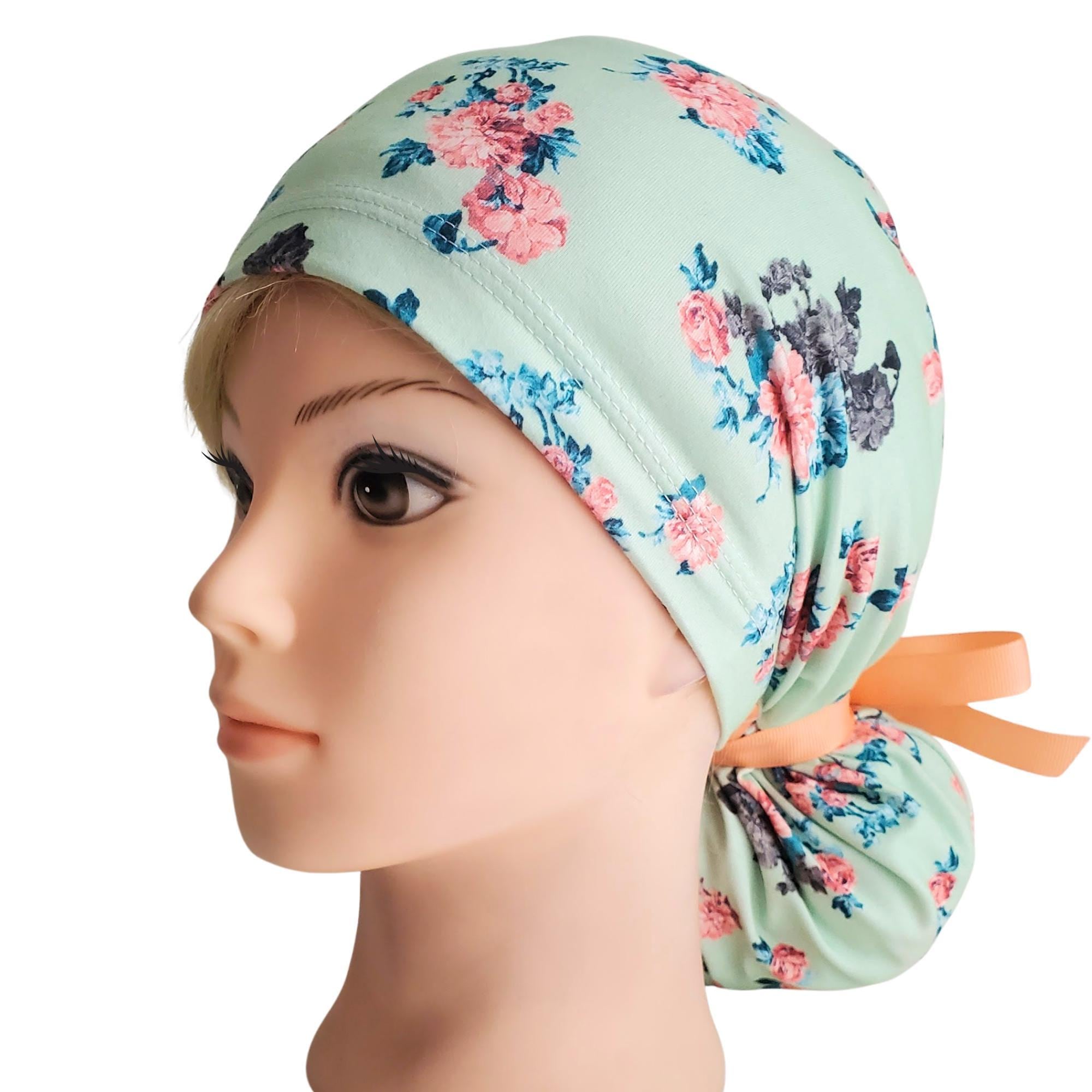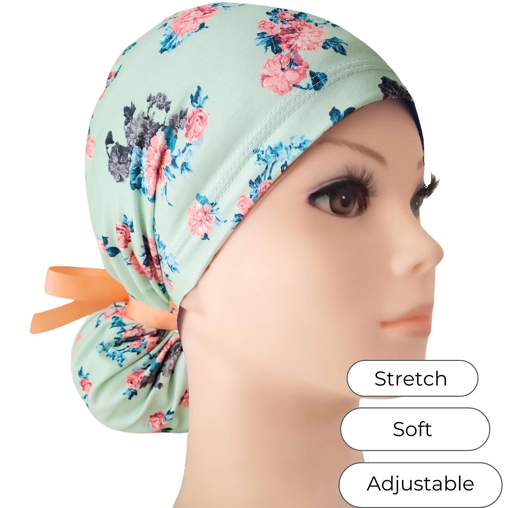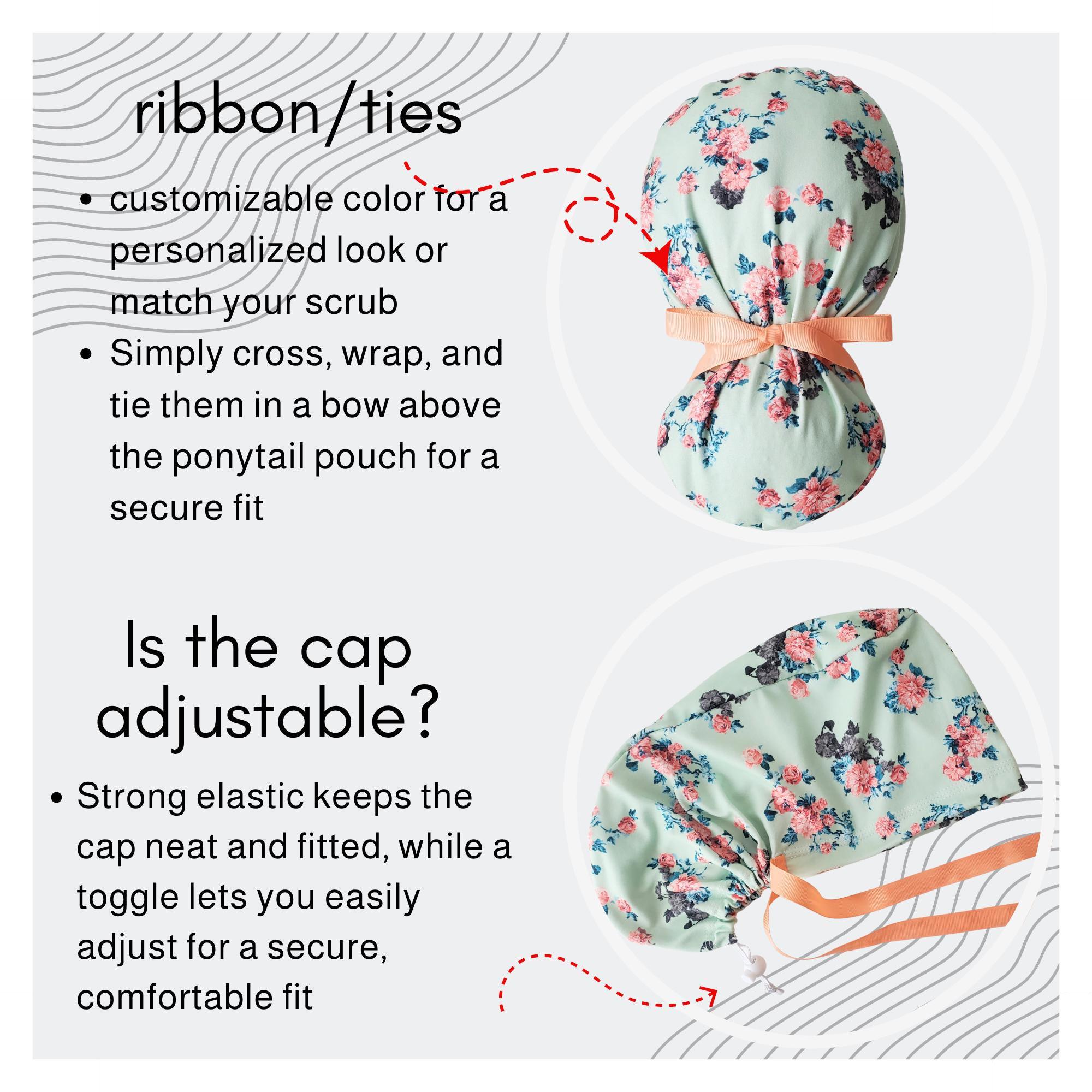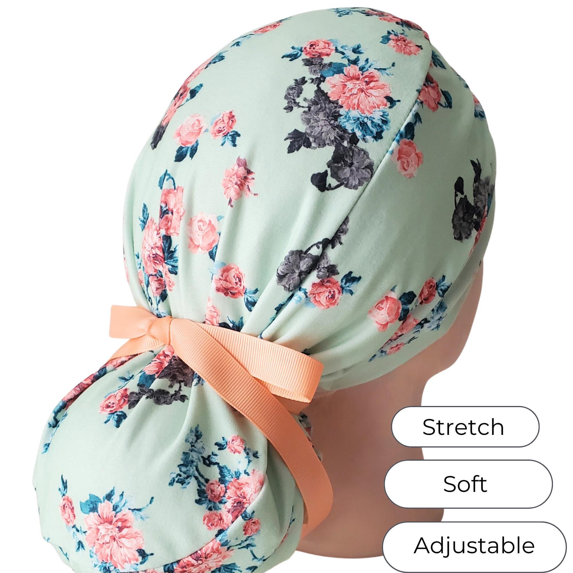Elevate your daily uniform with this stretch ponytail scrub cap, designed to blend style and function effortlessly. Featuring a soft mint floral cap pattern, it brings a fresh, feminine touch to your healthcare attire while ensuring comfort during long shifts. Crafted for nurses and medical professionals who value both practicality and elegance, this adjustable scrub cap adapts perfectly to your needs.