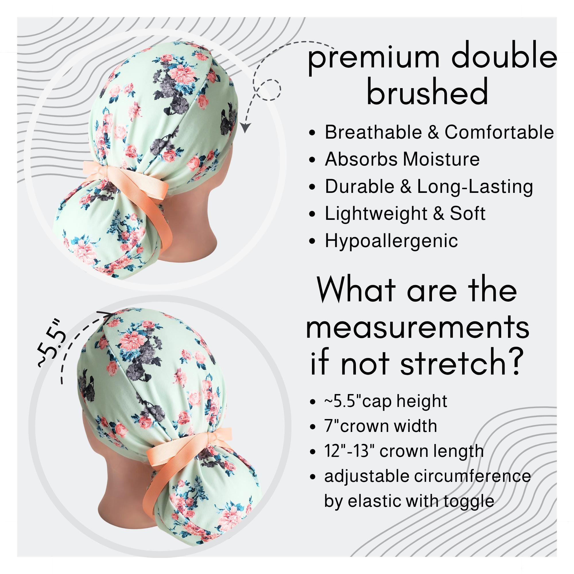 This medical ponytail cap is wrinkle free, quick drying, and easy to care for, making it ideal for healthcare professionals on the move.