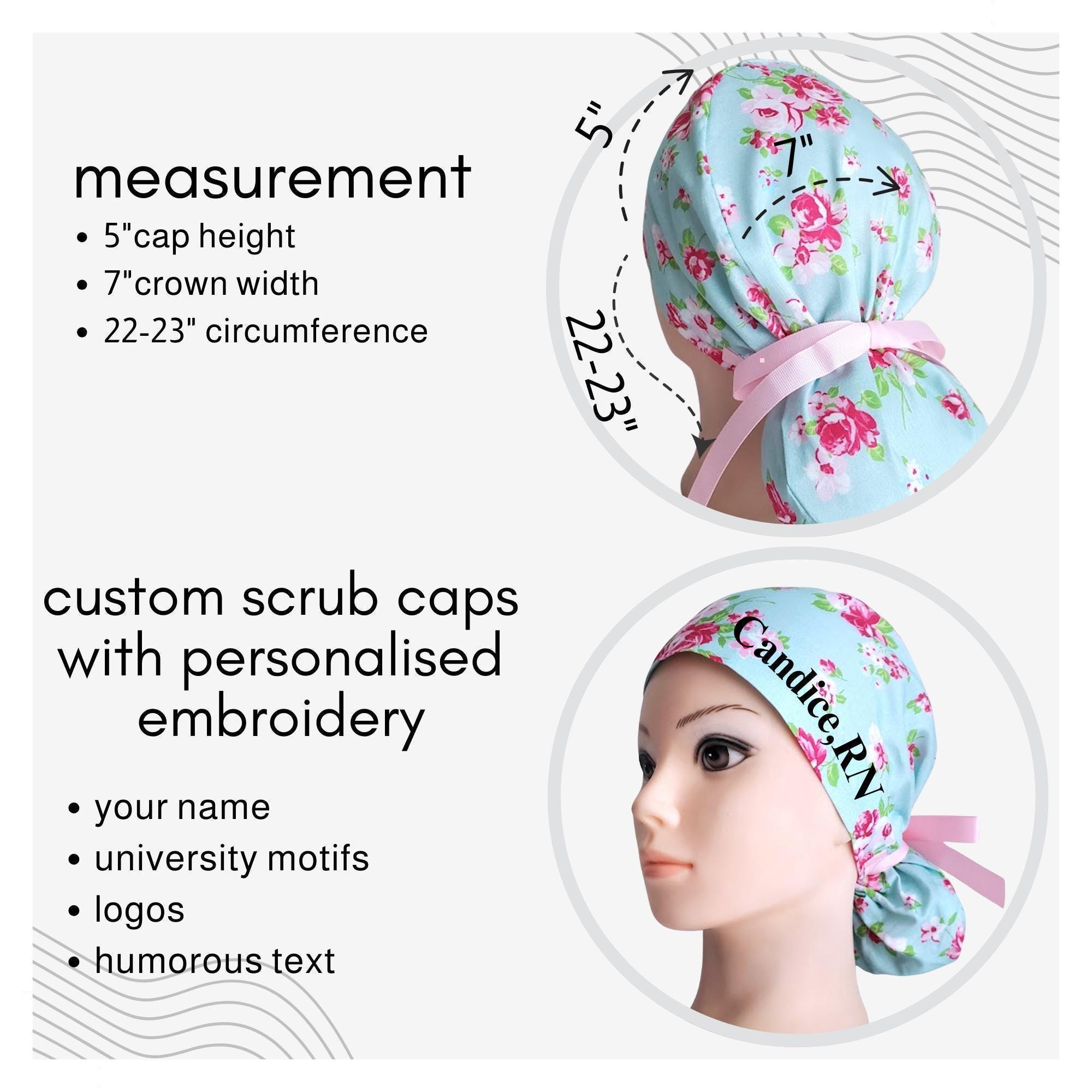 Our ponytail scrub cap is designed with both comfort and style in mind, perfect for long hair and long shifts. Each cap is handmade from high-quality cotton, making it soft, breathable, and comfortable to wear all day. The back features a secure elastic band with ribbon ties, so you can adjust the fit easily and keep your hair neatly in place.