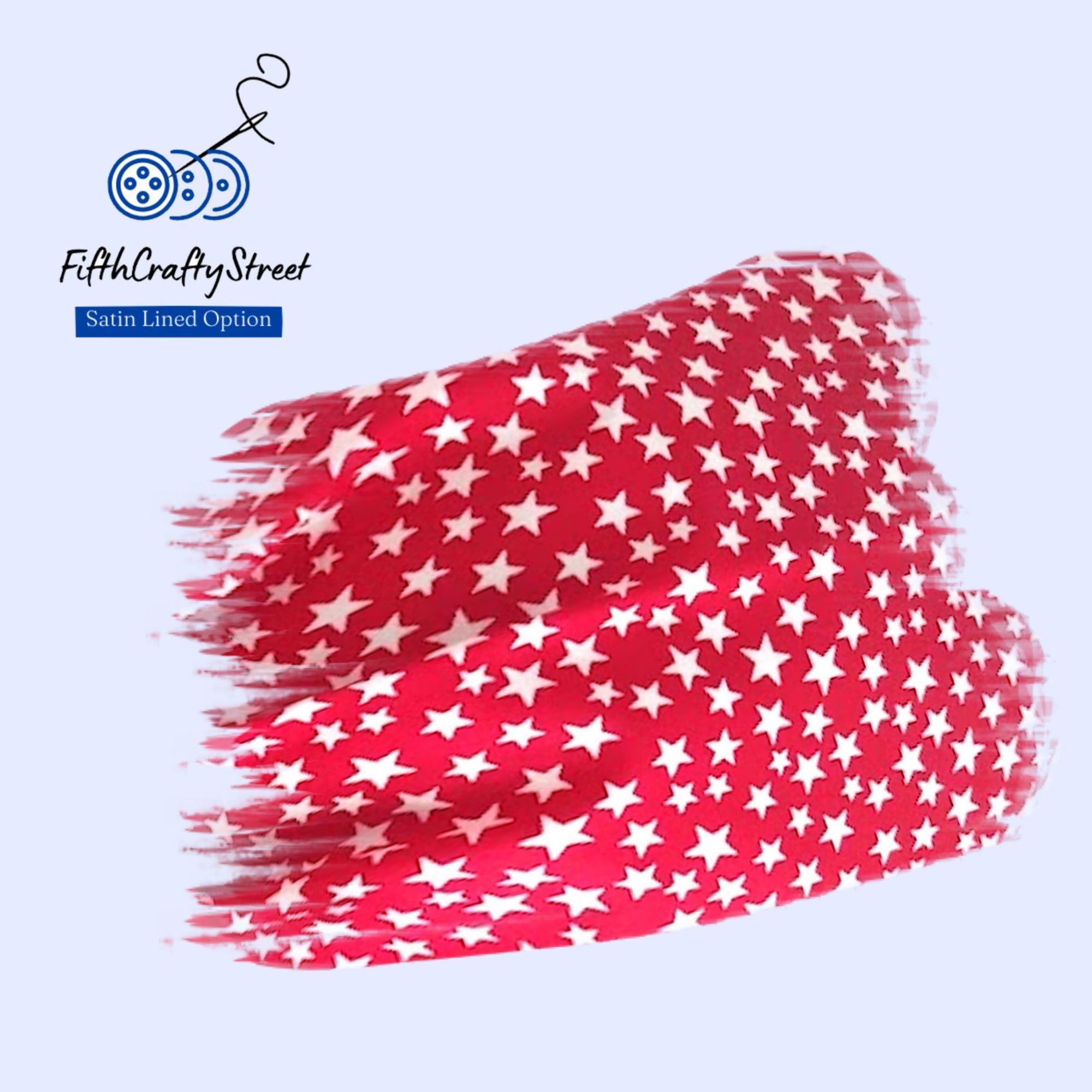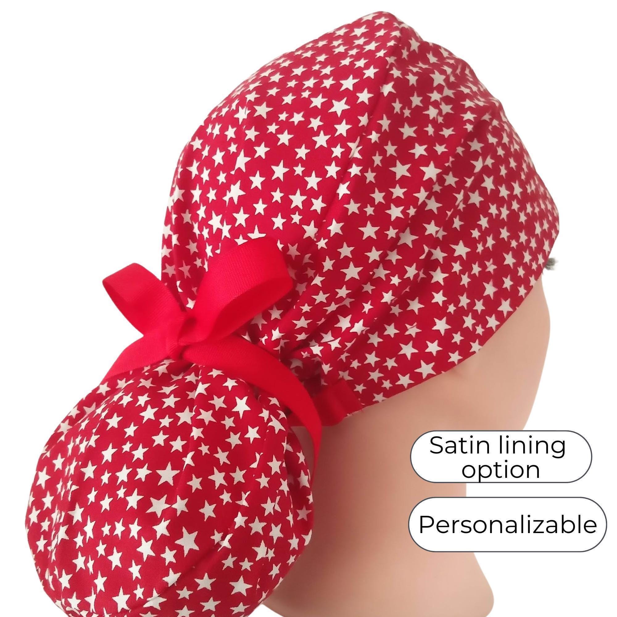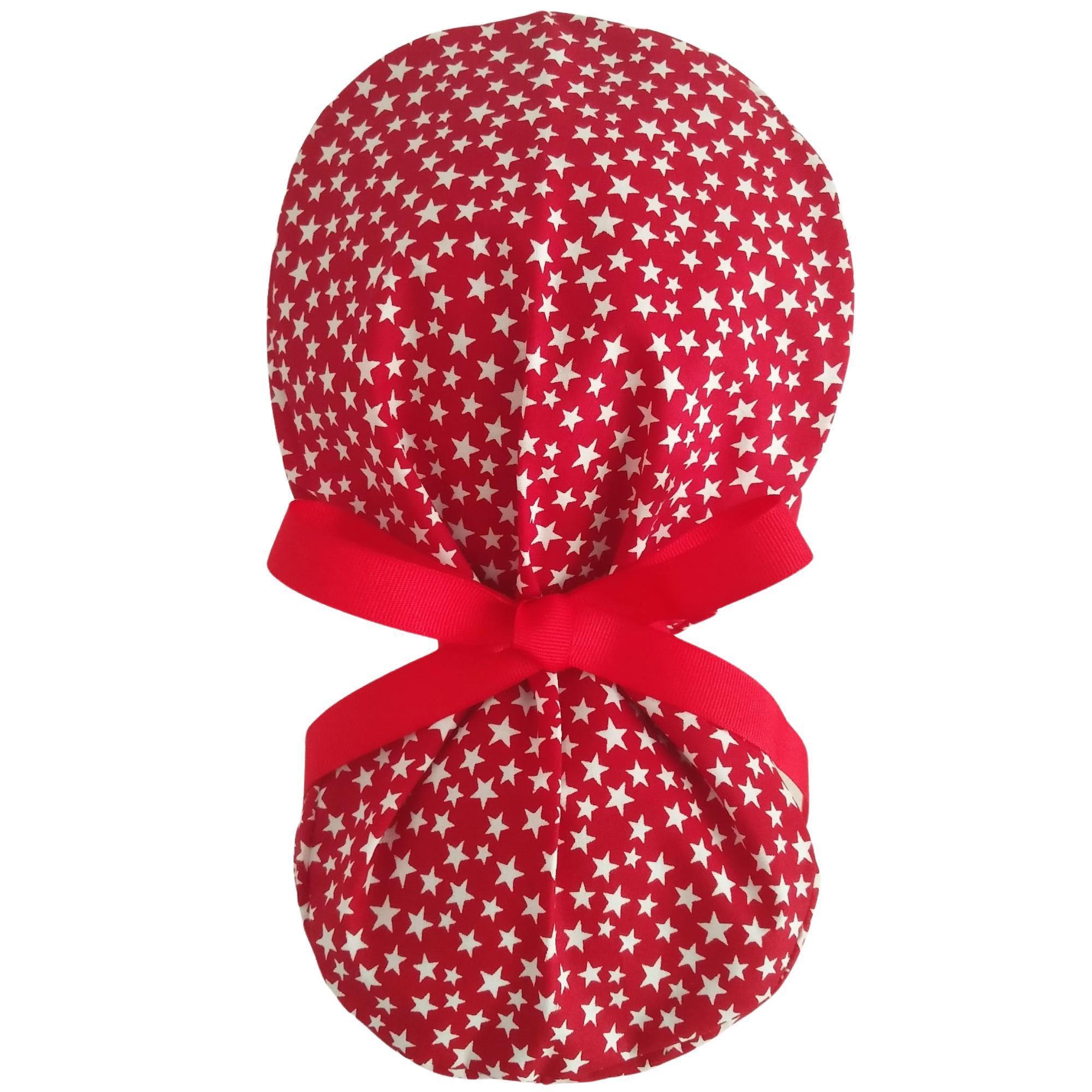 Patriotic ,Cotton Scrub Cap, Satin Lining option, white stars on Red - 4th July