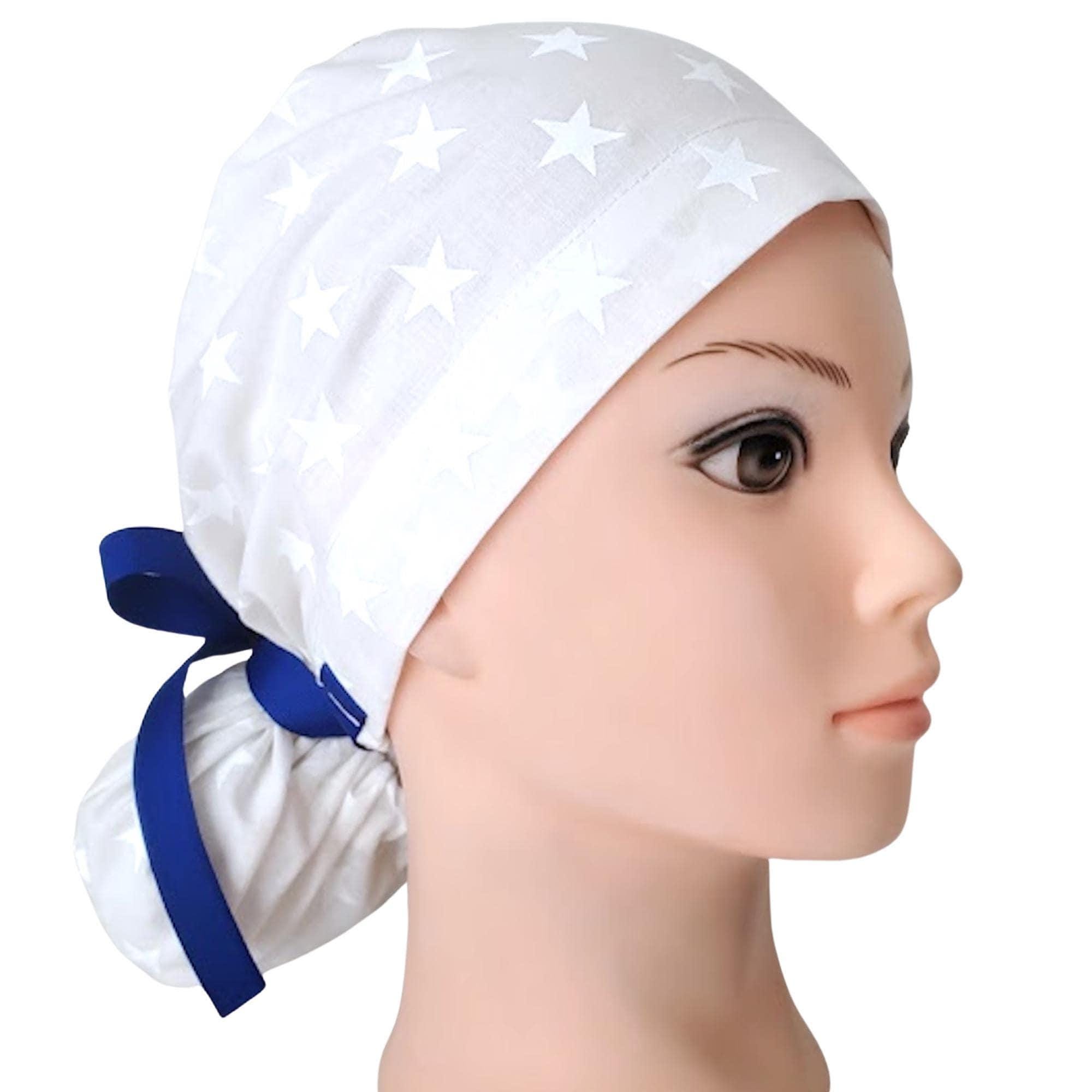 Our ponytail scrub cap is designed with both comfort and style in mind, perfect for long hair and long shifts. Each cap is handmade from high-quality cotton, making it soft, breathable, and comfortable to wear all day. The back features a secure elastic band with ribbon ties, so you can adjust the fit easily and keep your hair neatly in place.