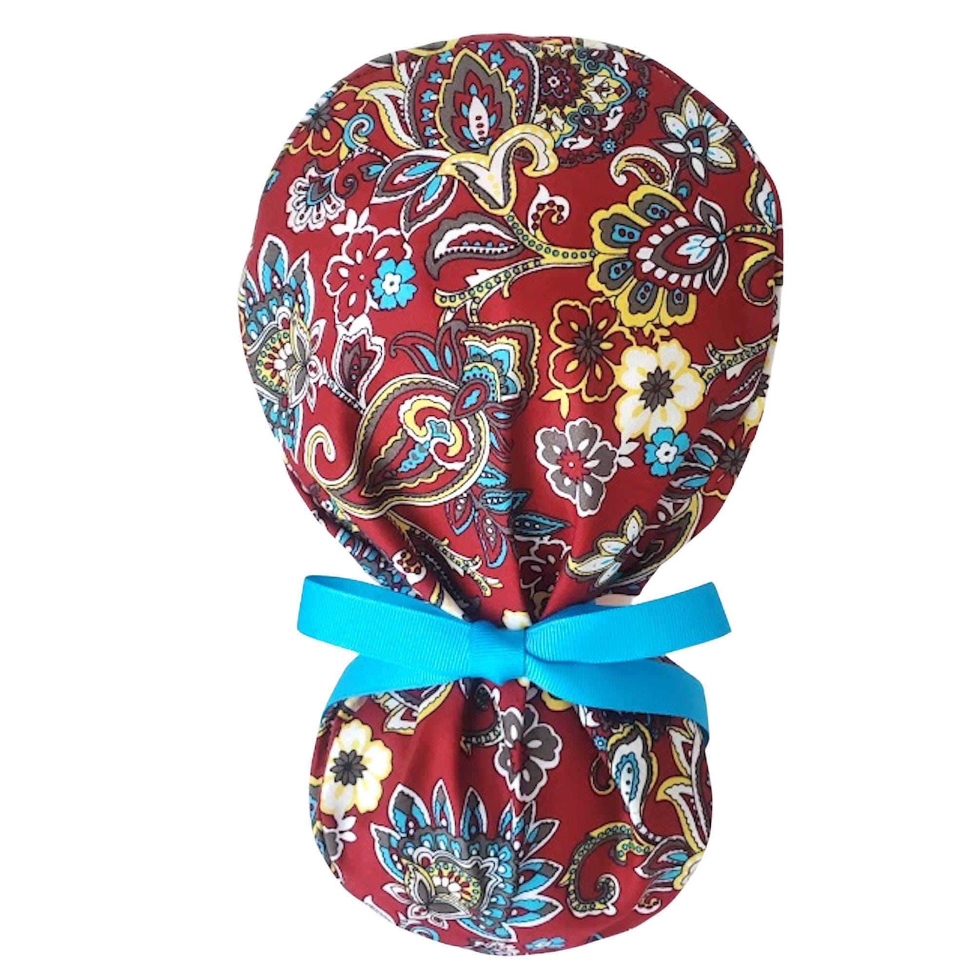 Ponytail Scrub Cap for Women - Surgical Cap - Satin Lining Option - Floral