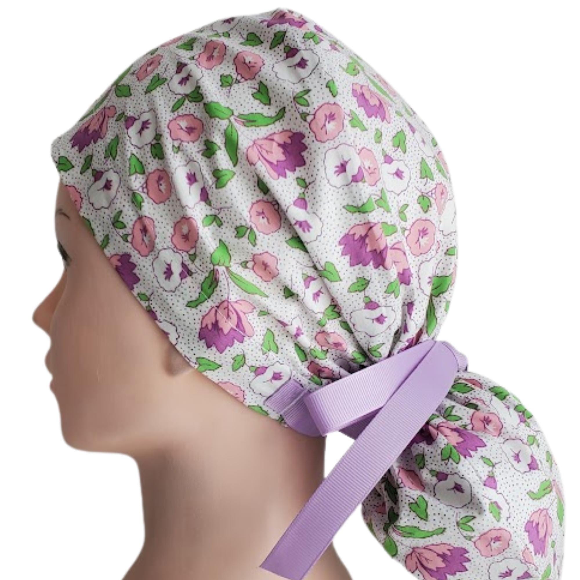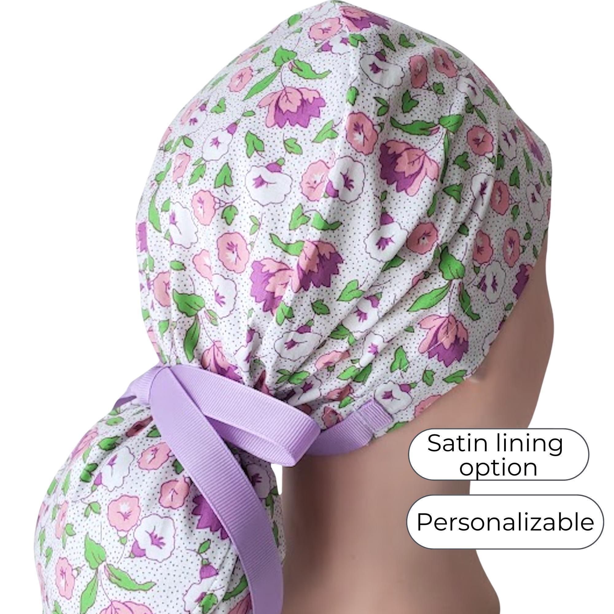 Ponytail Scrub Cap for Women - Surgical Cap with Satin Lining Option