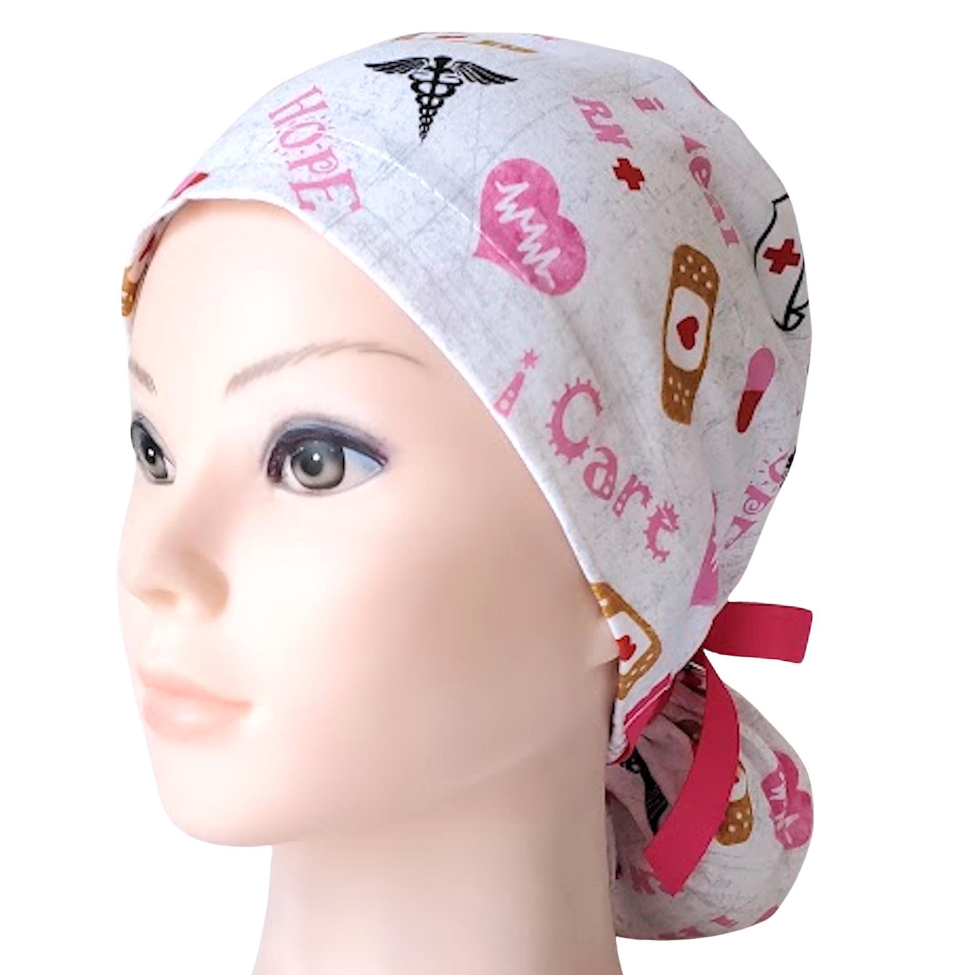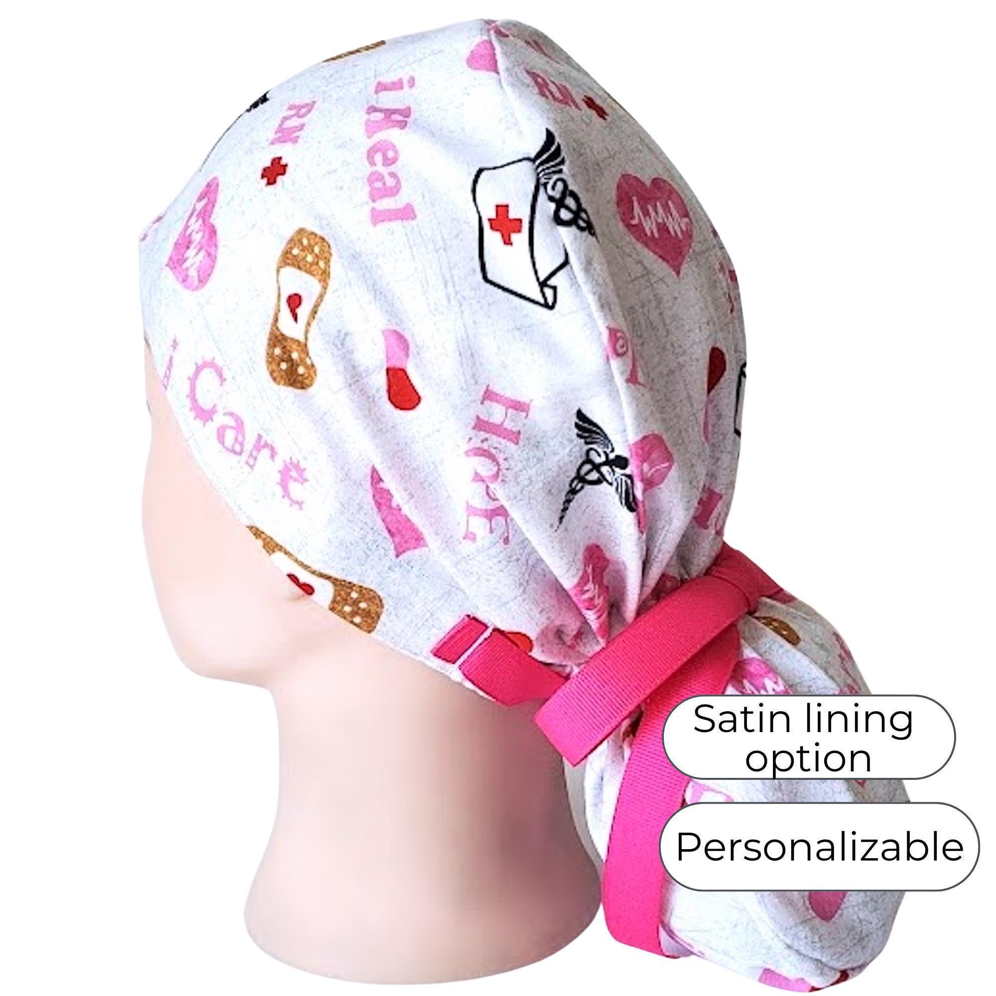 Ponytail Scrub Cap for Women - Surgical Cap with Silky Satin Lining Option - I Care -