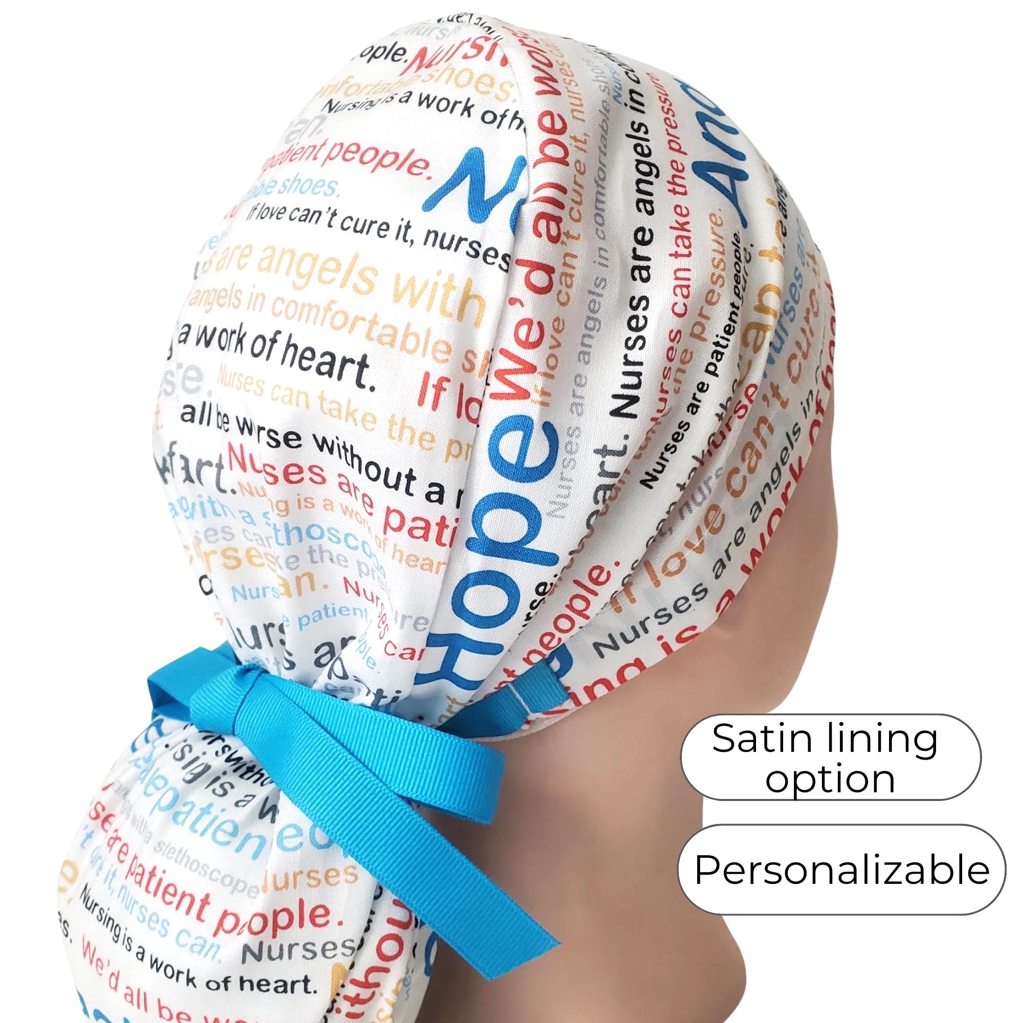 Ponytail Scrub Cap for Women - Surgical Cap with Silky Satin Lining Option - Nurse Heroes