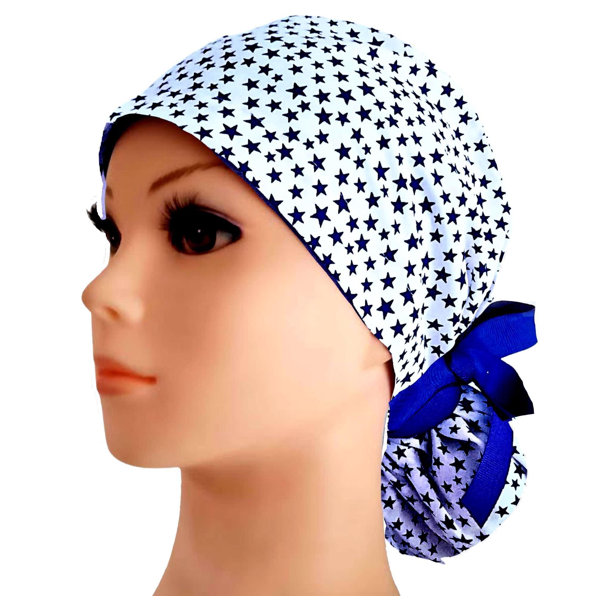 Our ponytail scrub cap is designed with both comfort and style in mind, perfect for long hair and long shifts. Each cap is handmade from high-quality cotton, making it soft, breathable, and comfortable to wear all day. The back features a secure elastic band with ribbon ties, so you can adjust the fit easily and keep your hair neatly in place.