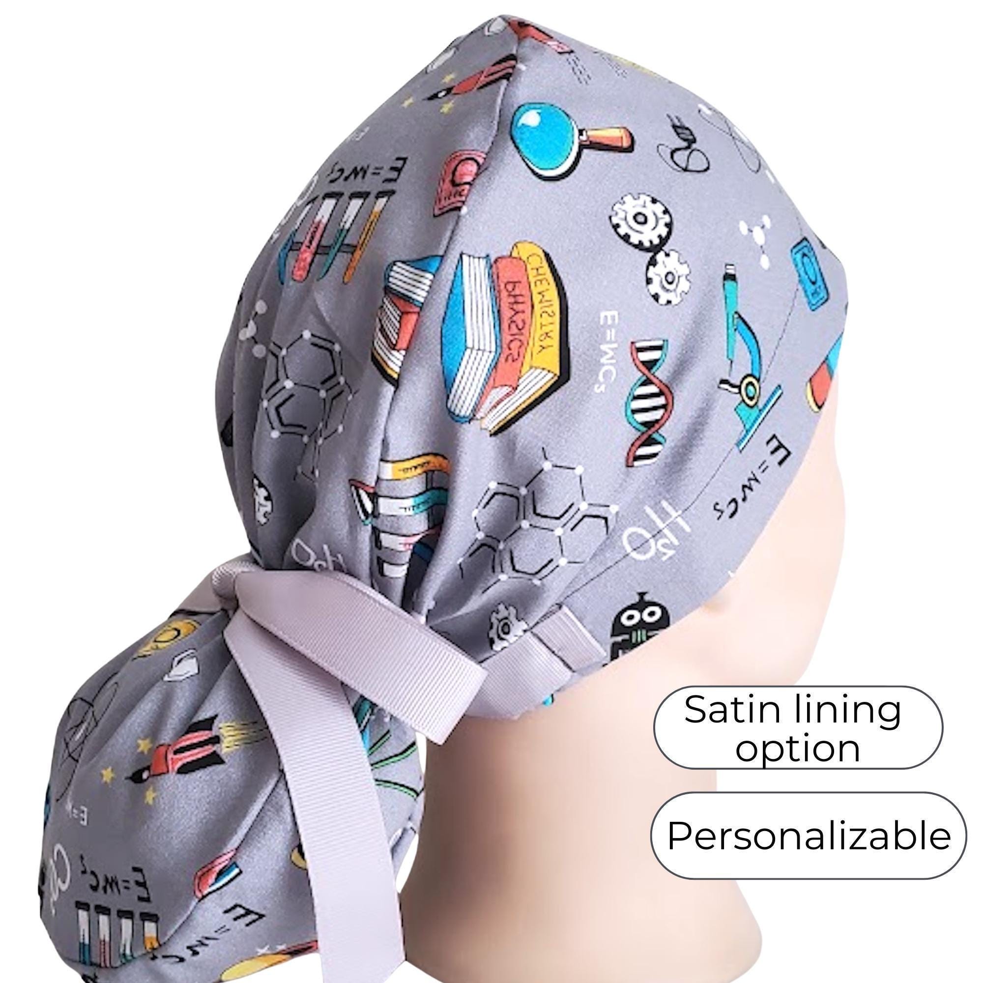 Choose from a variety of fabric prints, with the option for satin lining and personalization to make your cap unique. These surgical hats are durable, lightweight, and easy to care for — just machine wash and reuse.
