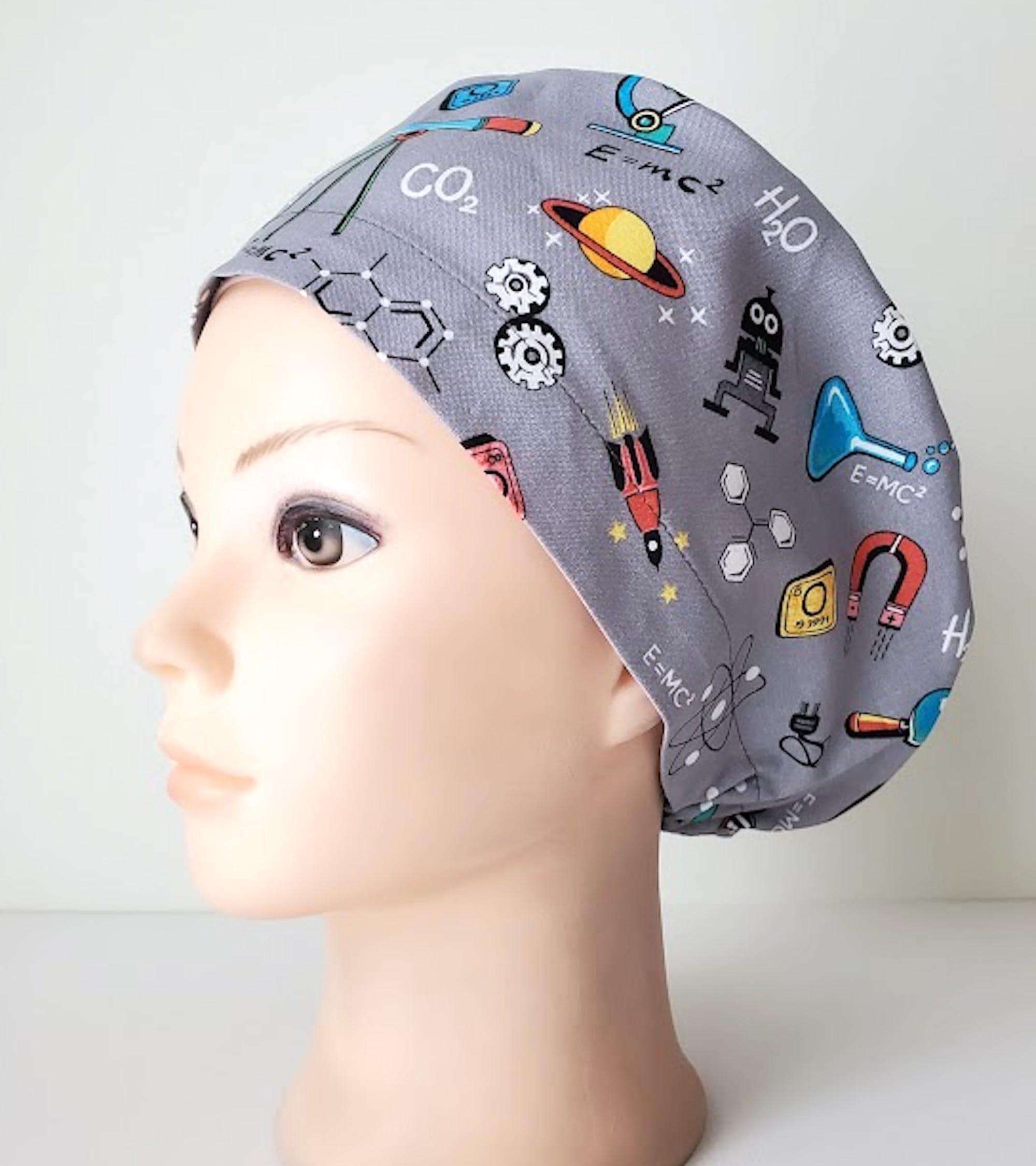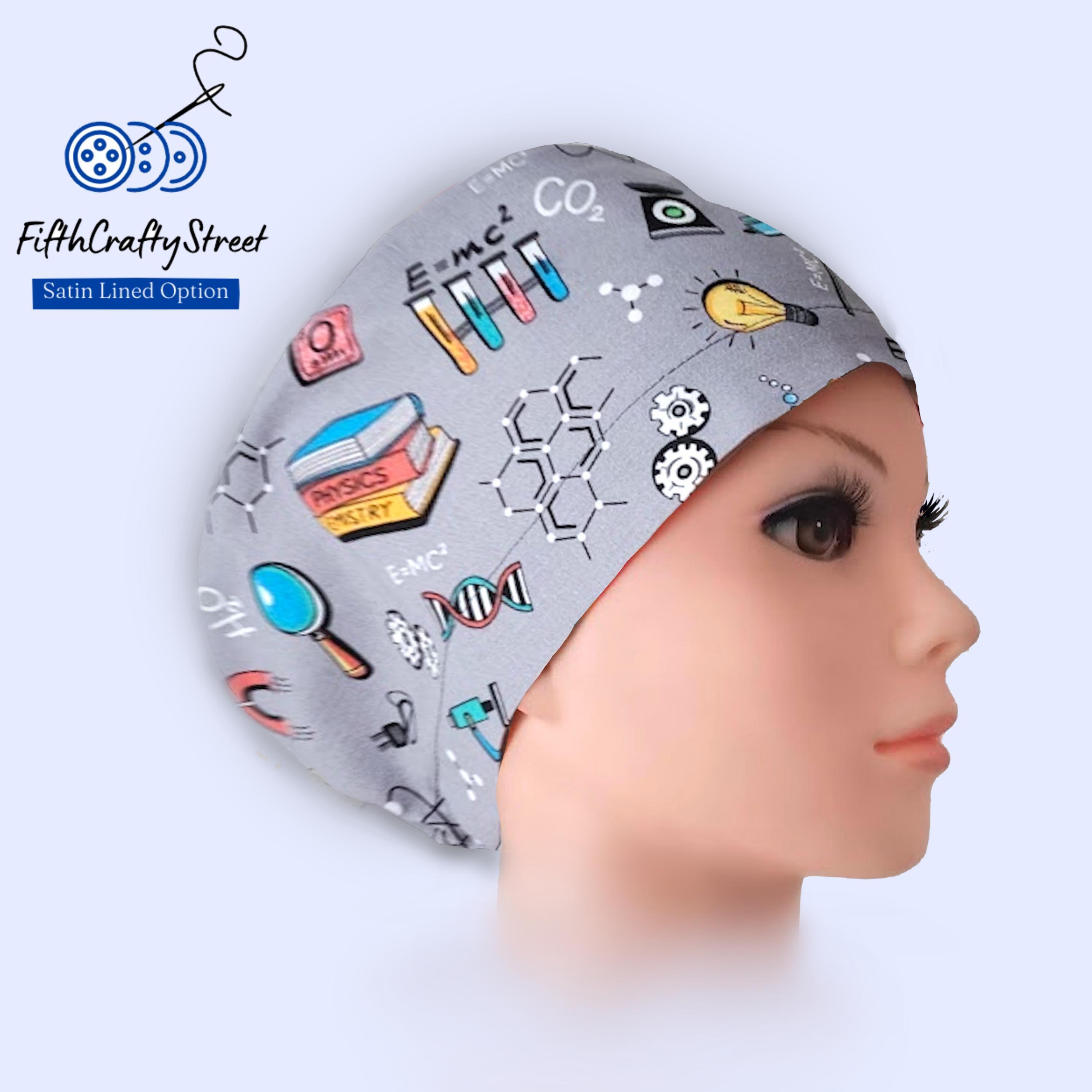Euro Scrub Cap for Women - Tech Chemistry - Adjustable - Satin Lined option