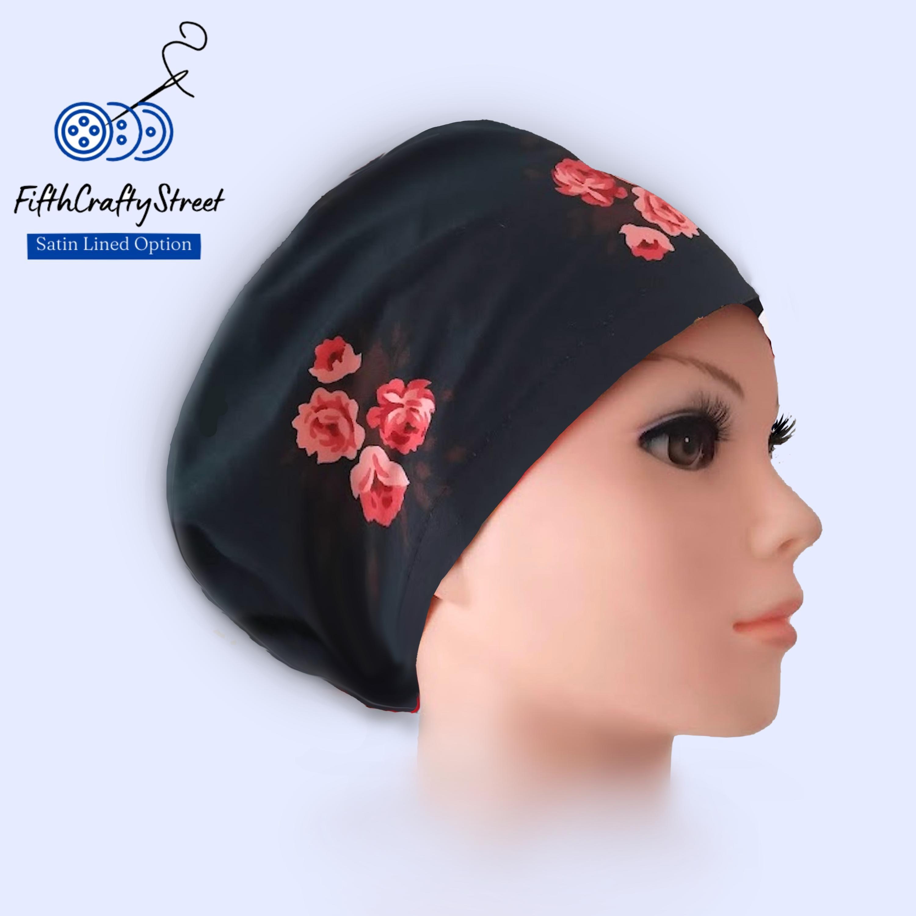 Euro Scrub Caps - Adjustable - Satin Lined option - Roses - Floral