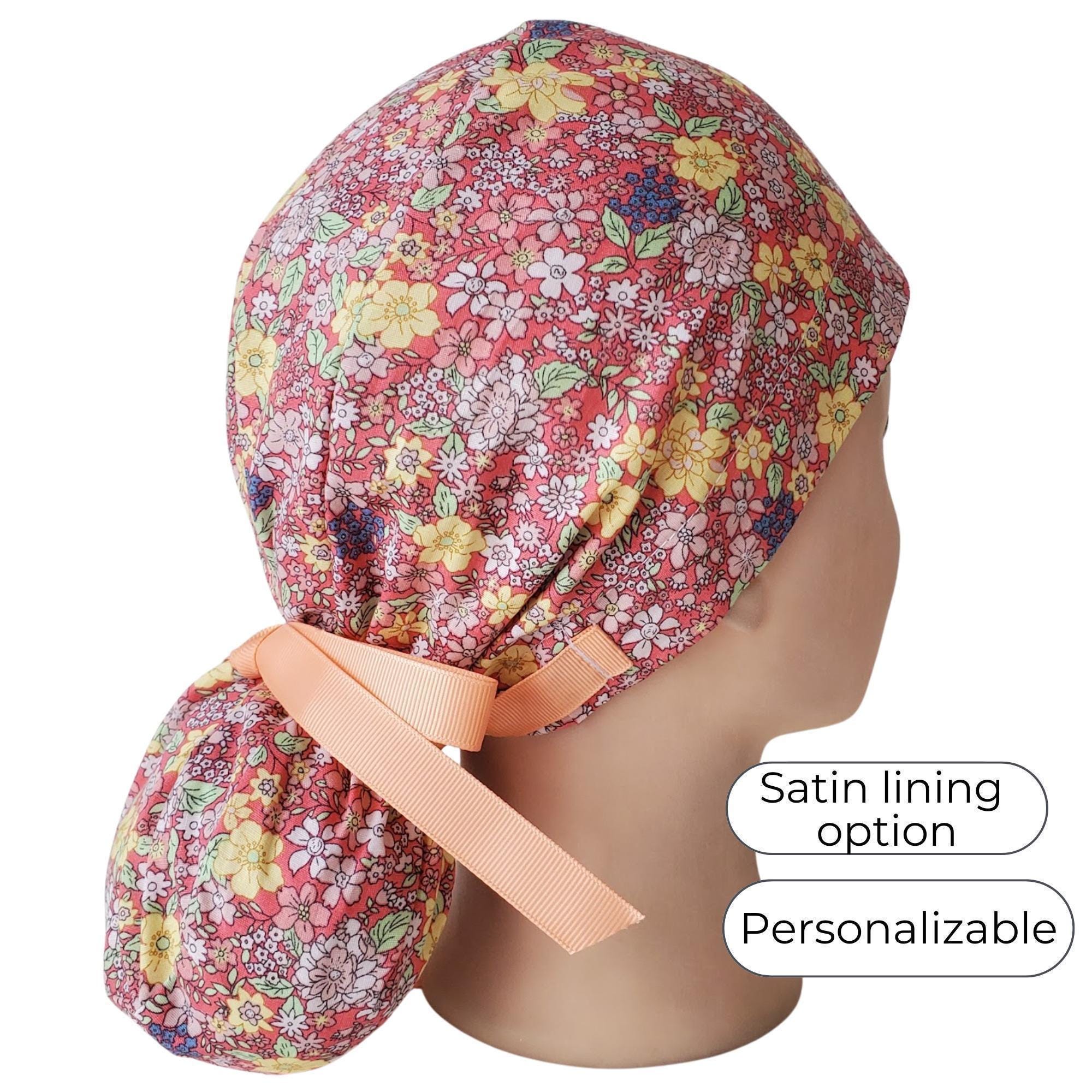 Fall Ponytail Scrub Cap for Women with Satin Lined Option