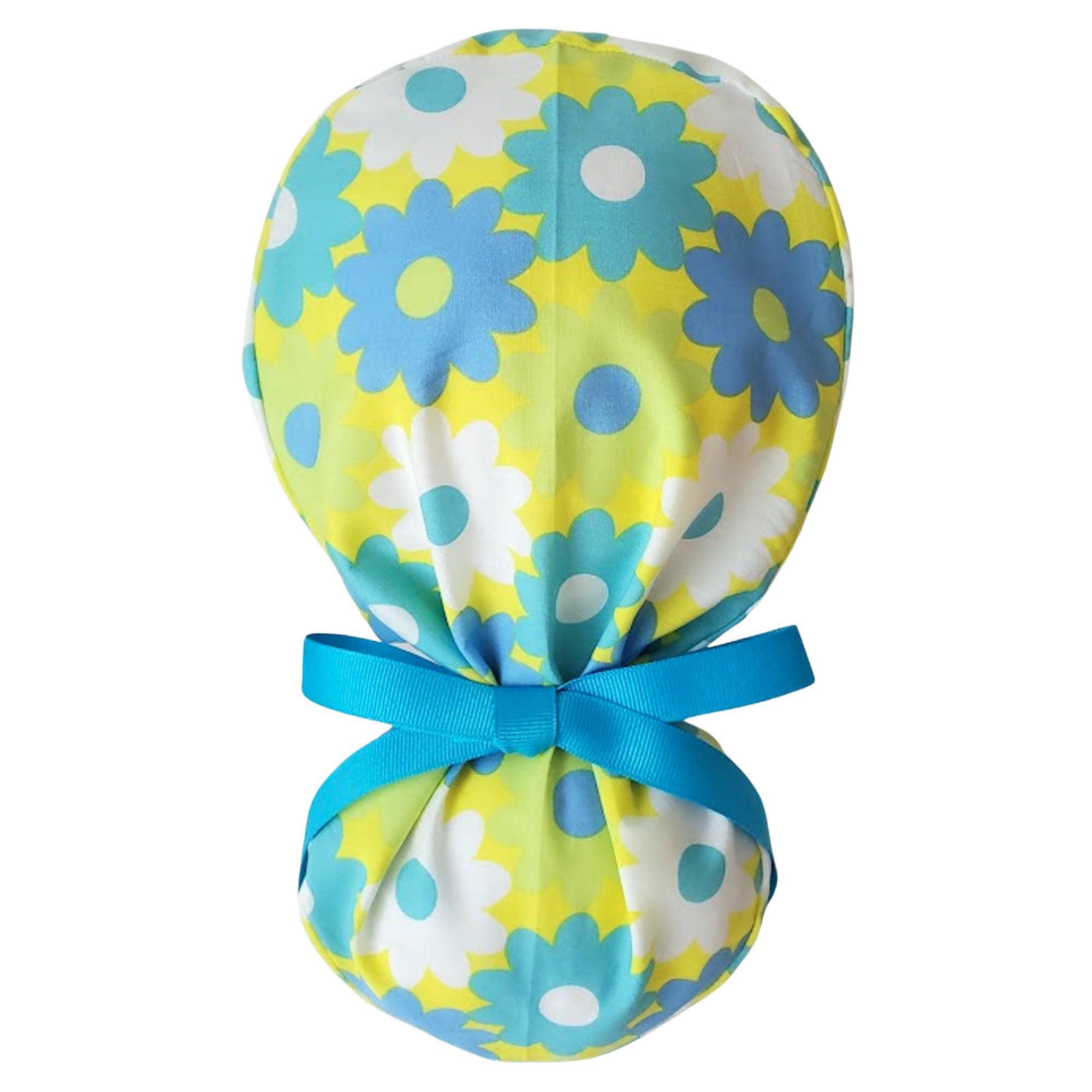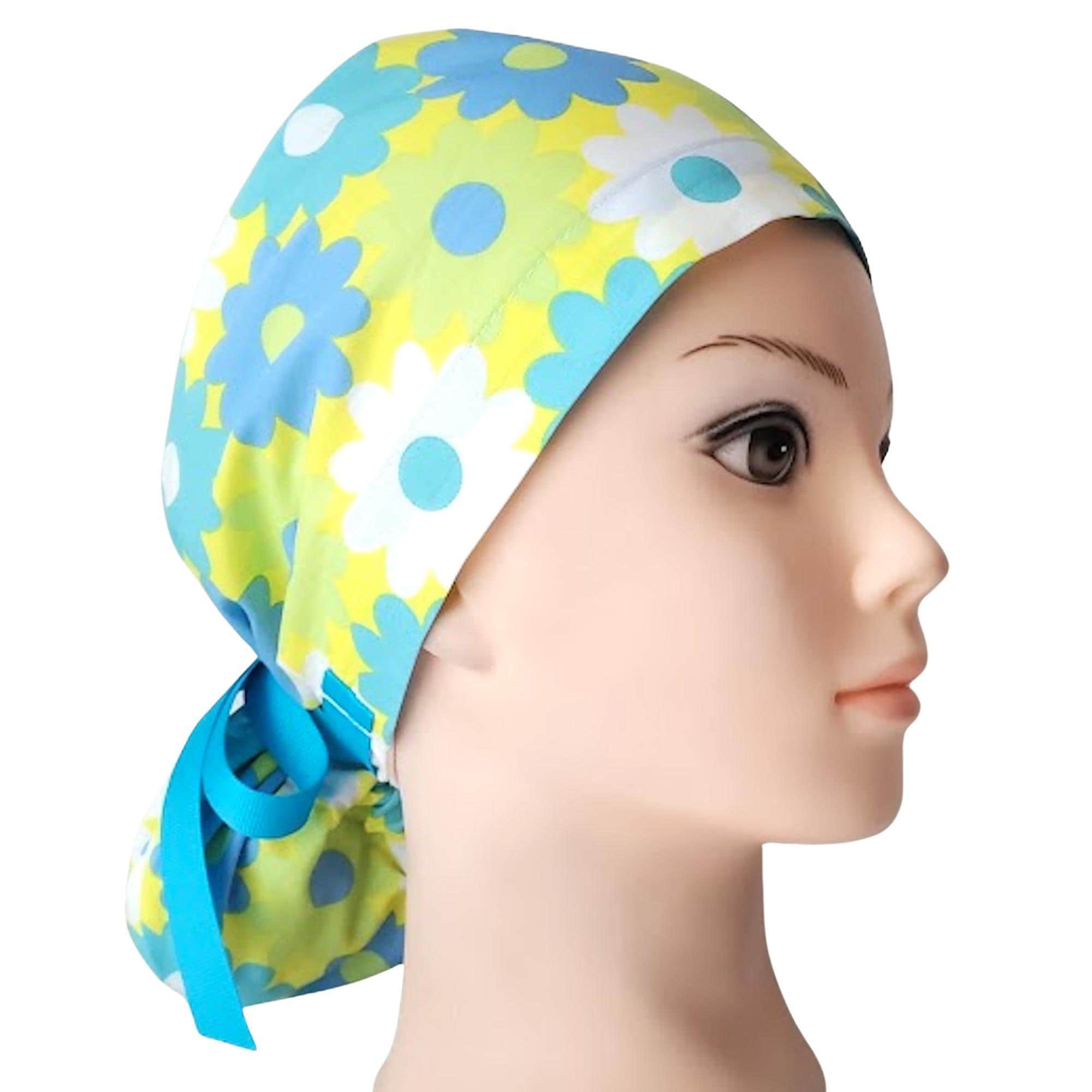 Floral Ponytail Scrub Cap for Women - Nurse hat with Satin Lining Option