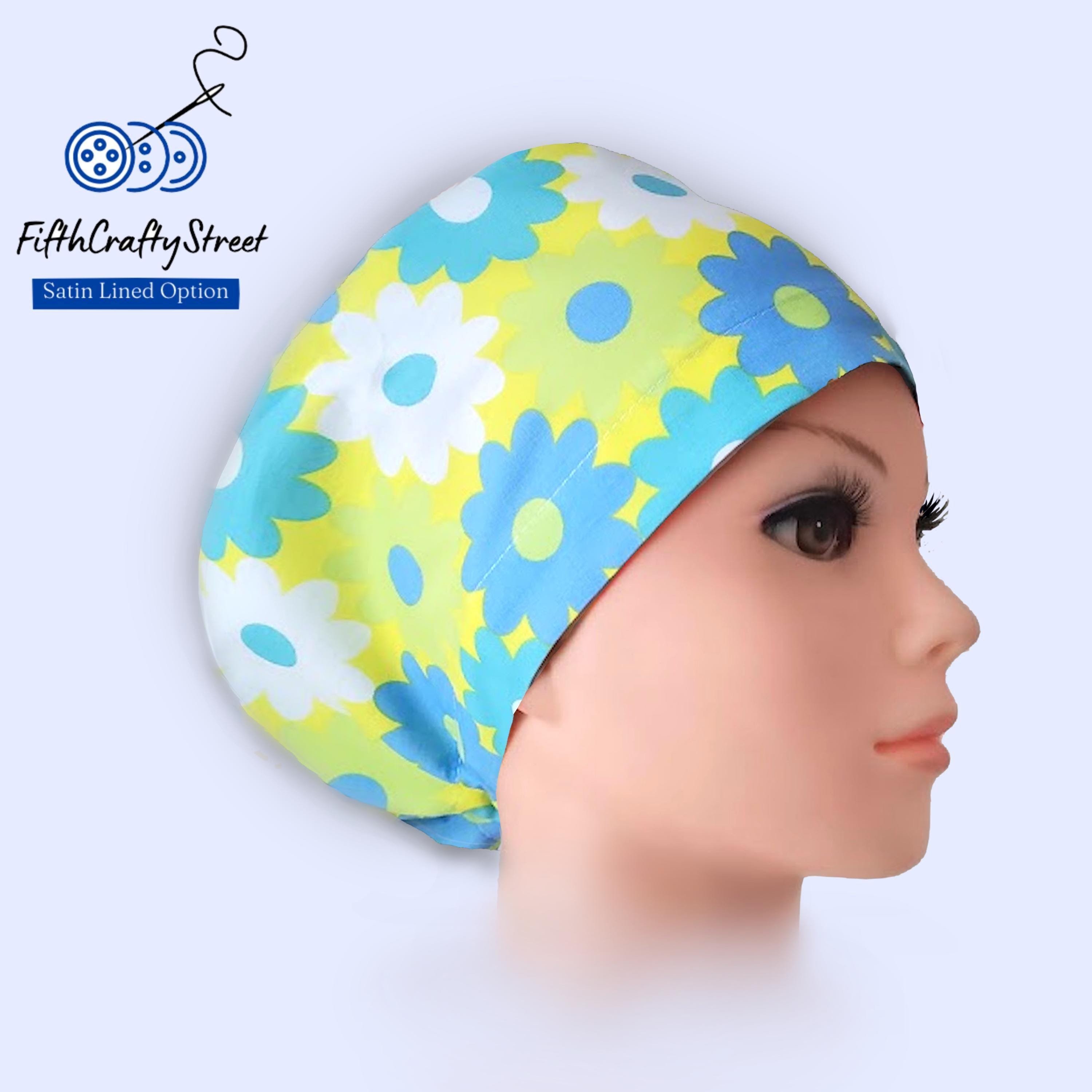 Floral Euro Scrub Cap: Lightweight Cotton, Satin Lined