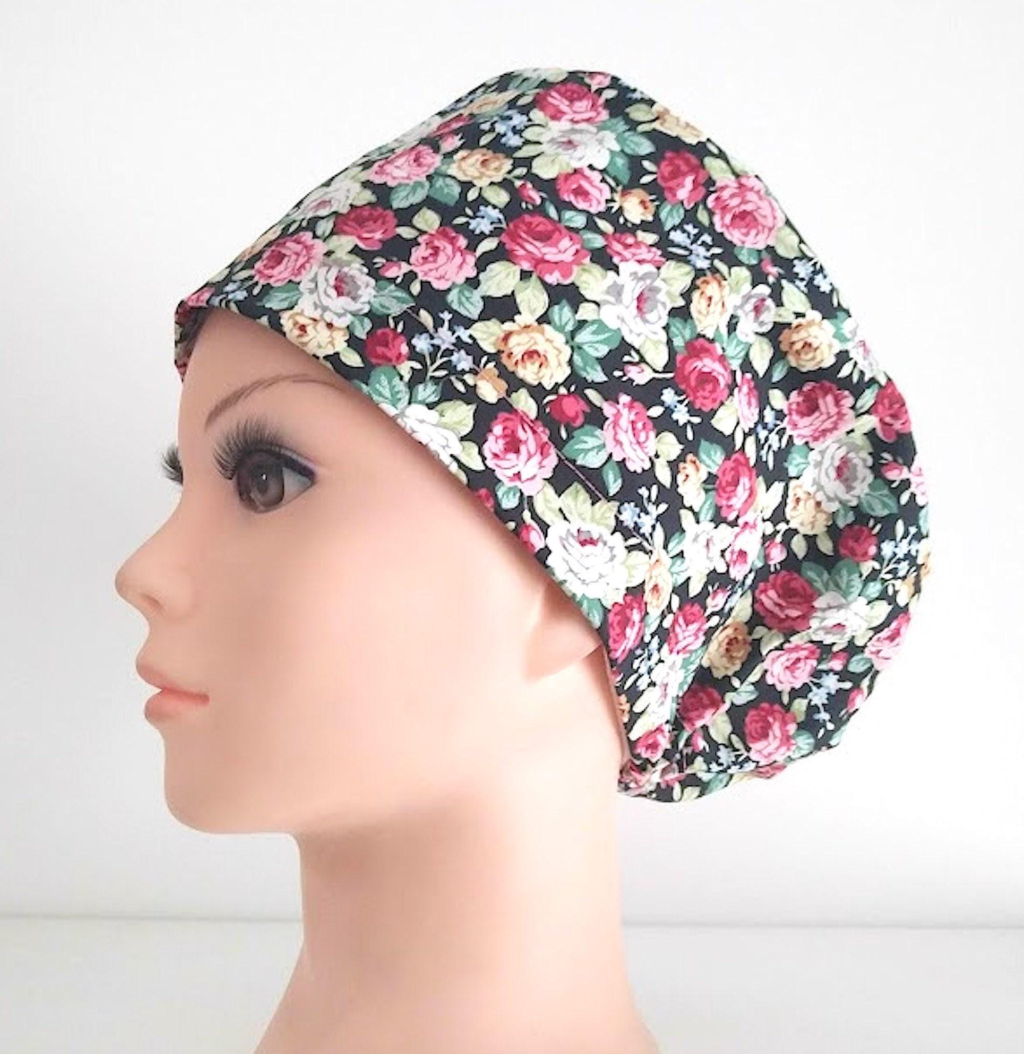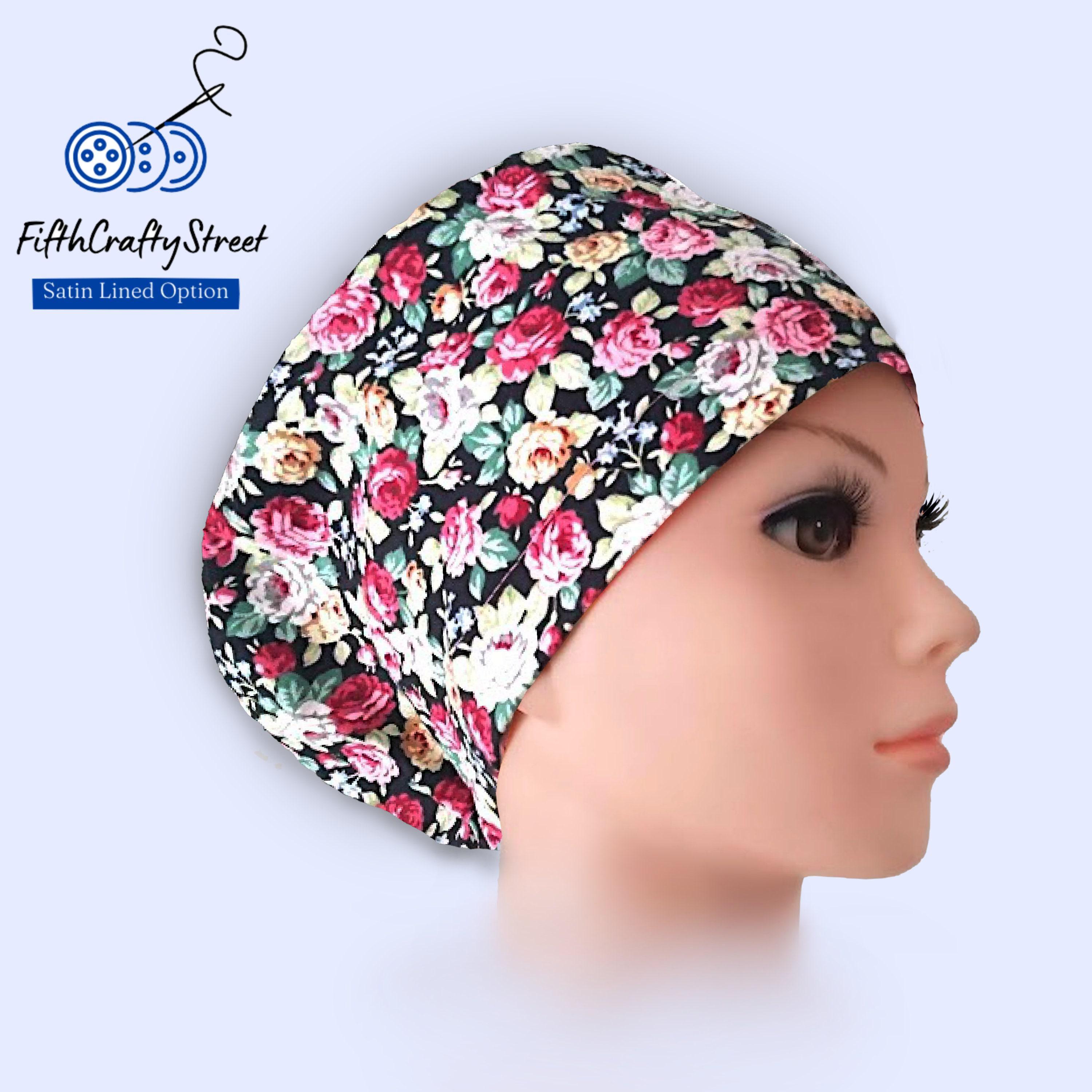 Floral Euro Scrub Cap: Satin Lined Adjustable Surgical Cap
