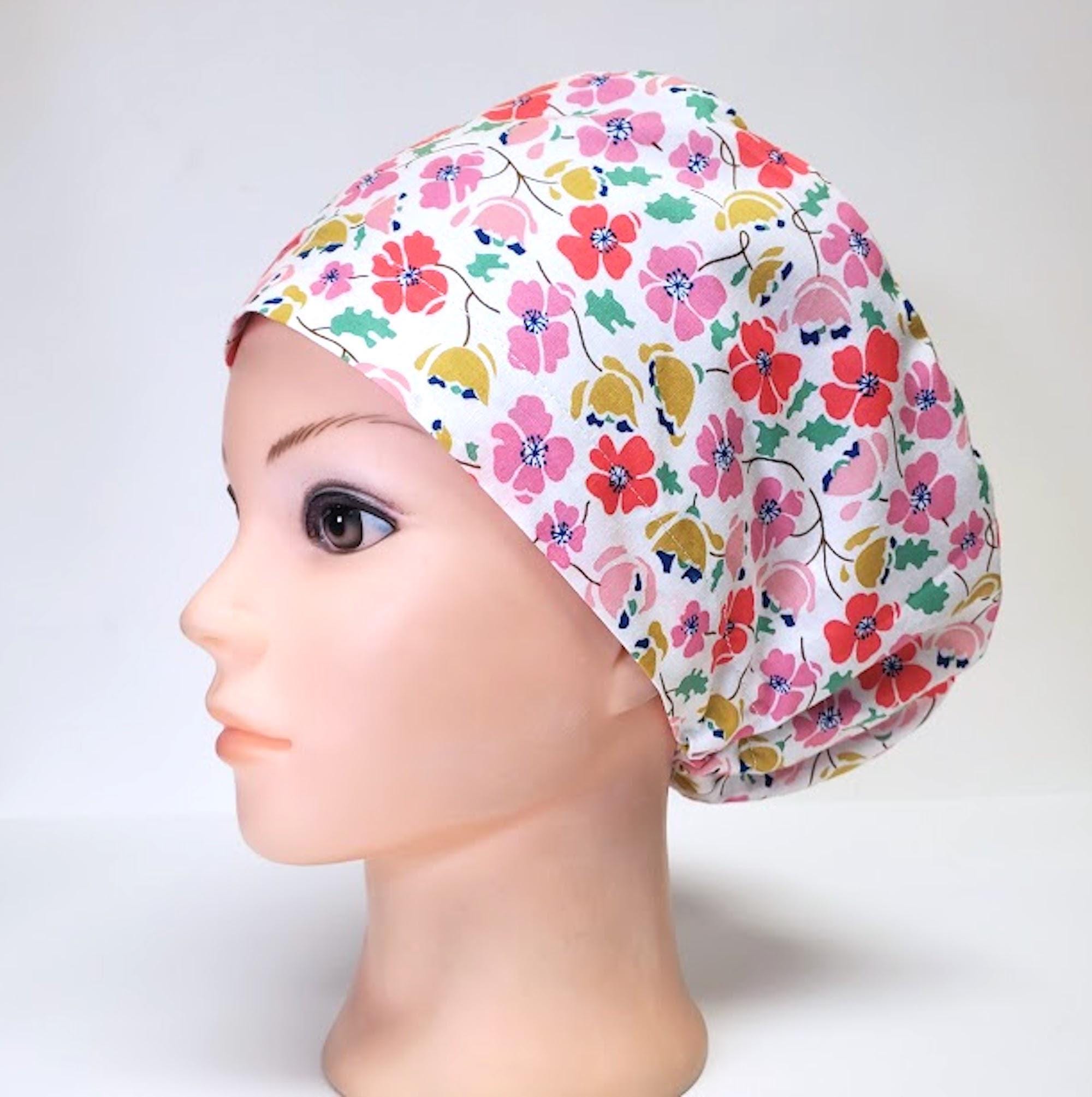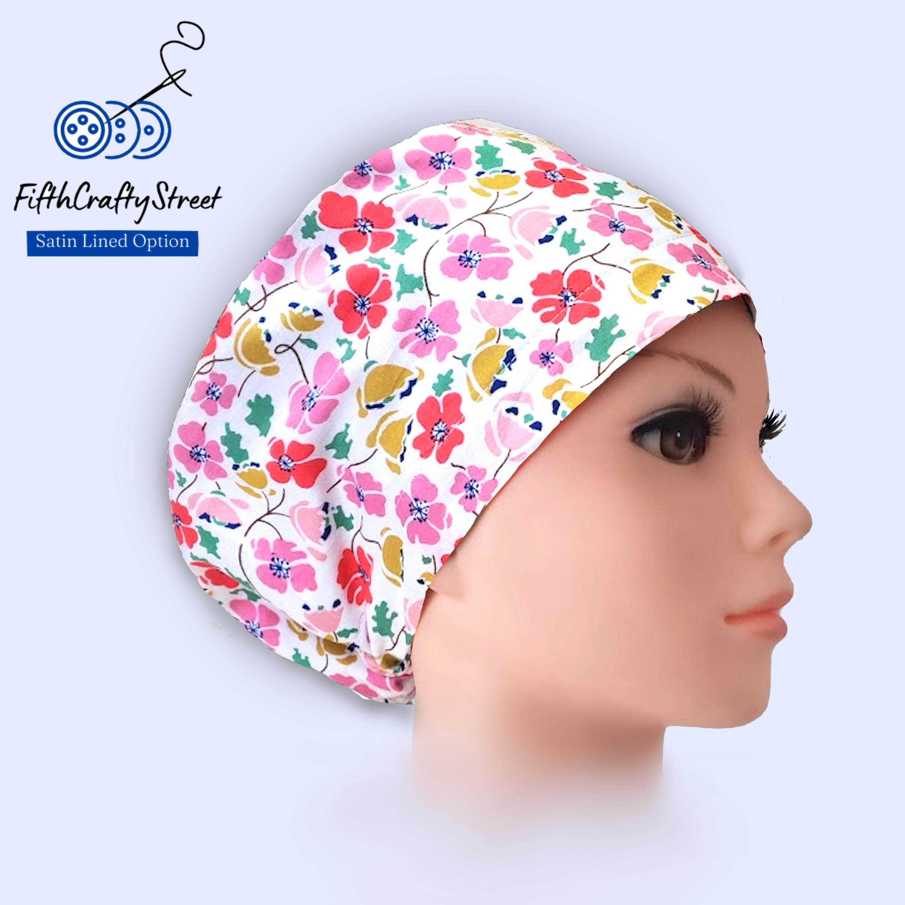 Floral Euro Scrub Cap: Lightweight Cotton, Satin Lined, Adjustable