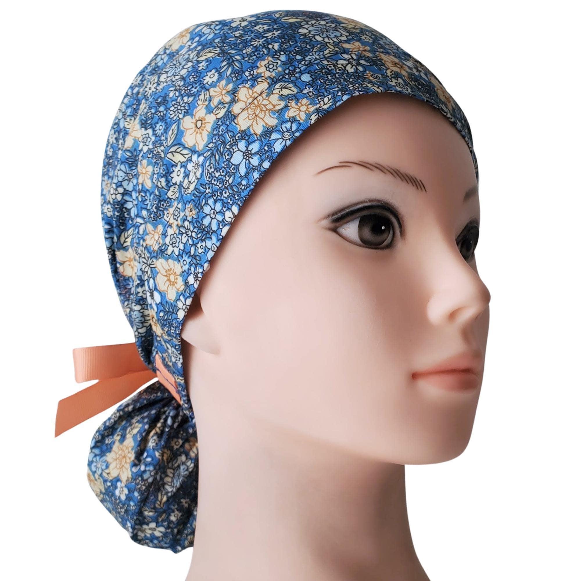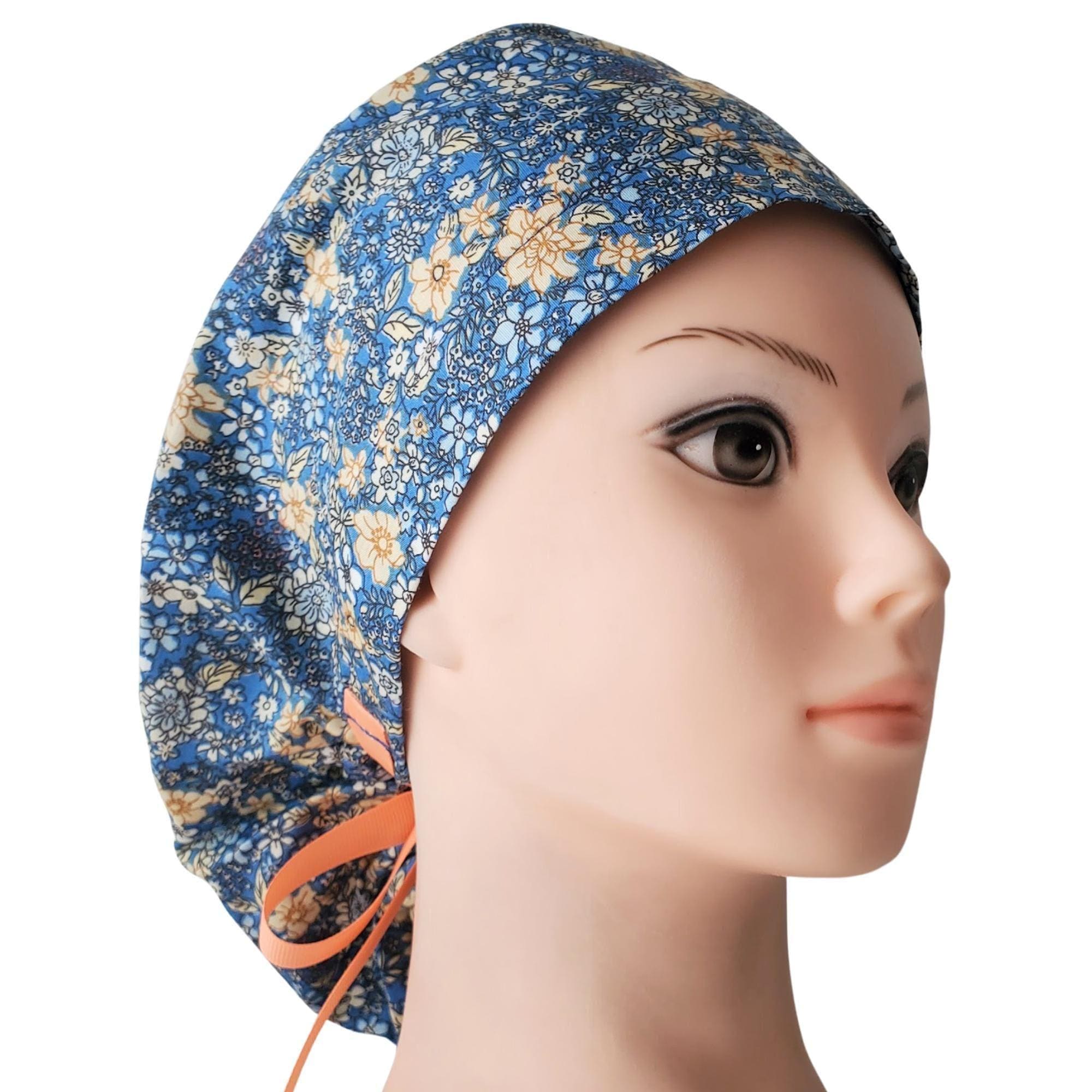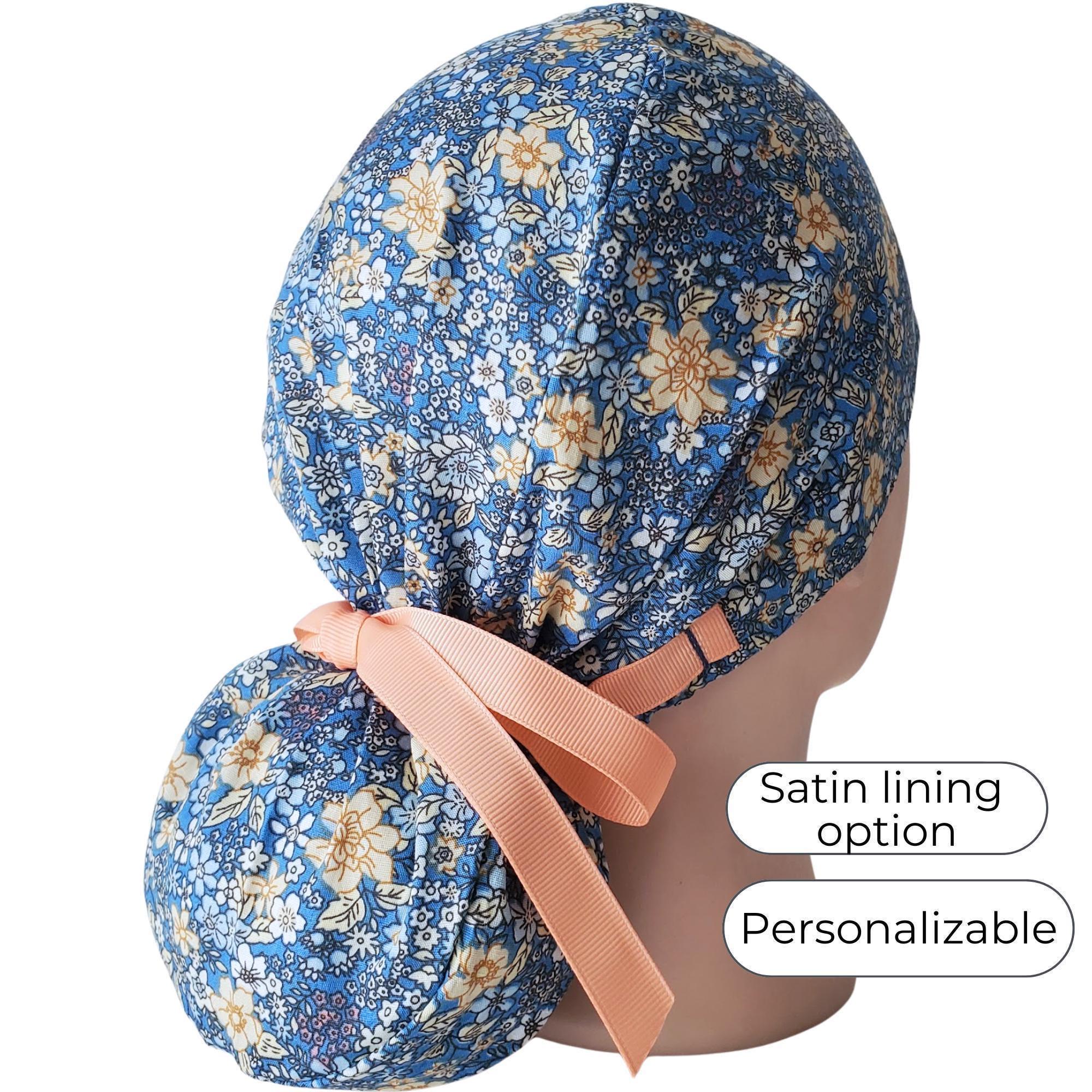 Ponytail Scrub Cap Floral - Surgical Cap - Satin Lined - Personalization option