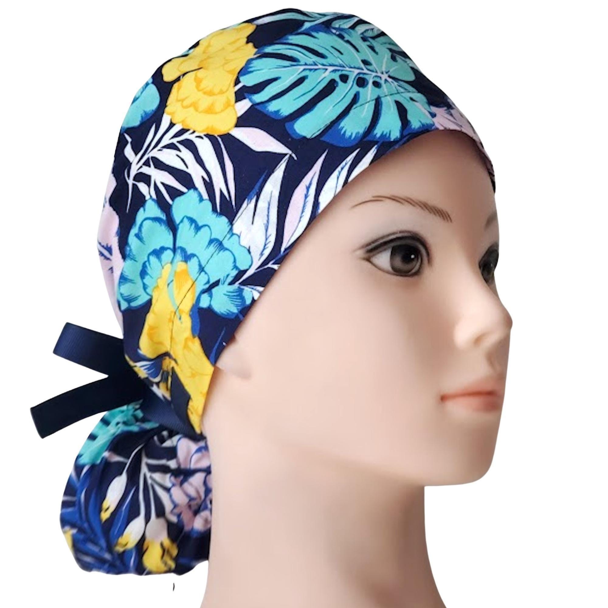 Our ponytail scrub cap is designed with both comfort and style in mind, perfect for long hair and long shifts. Each cap is handmade from high-quality cotton, making it soft, breathable, and comfortable to wear all day. The back features a secure elastic band with ribbon ties, so you can adjust the fit easily and keep your hair neatly in place.