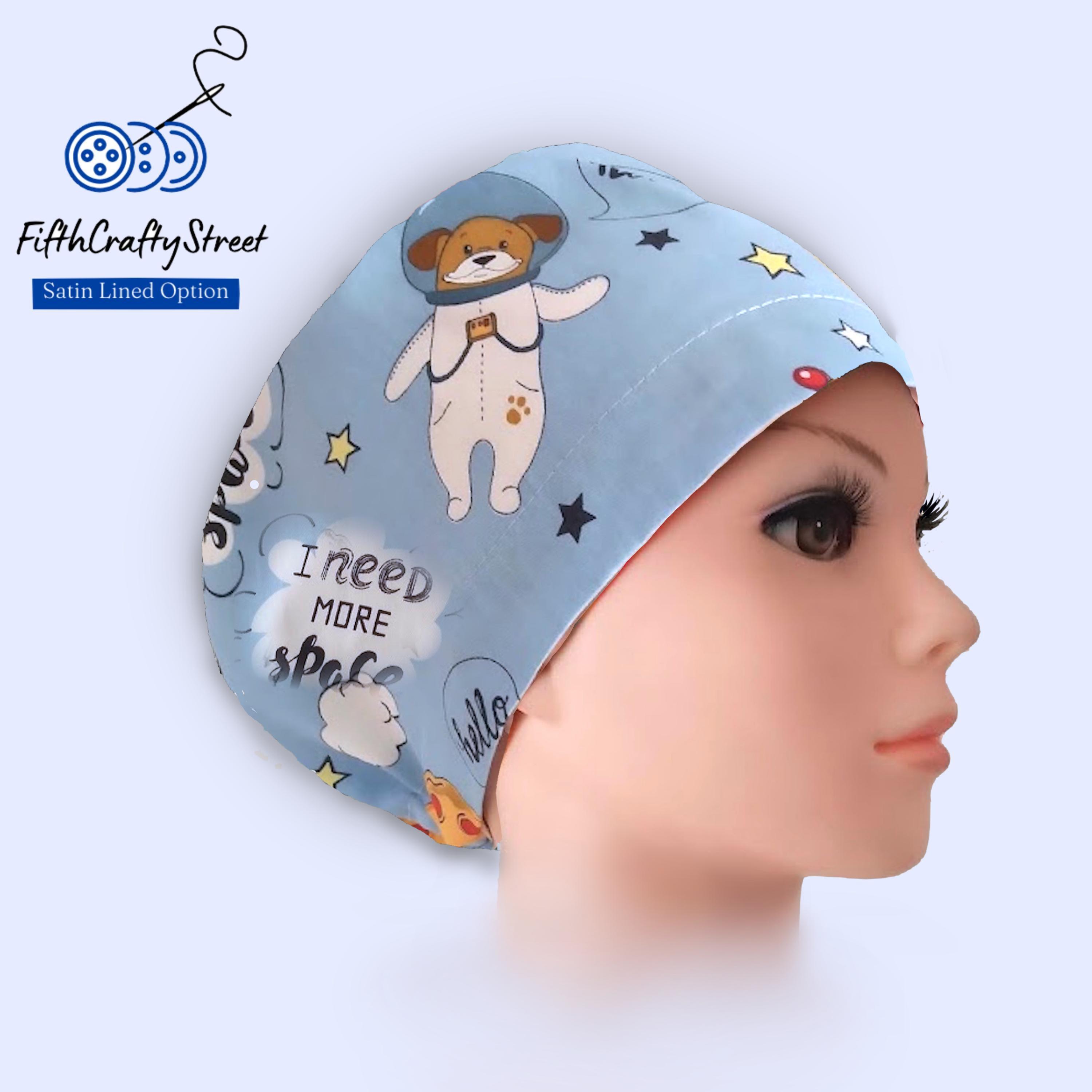 I need more Space - Euro Scrub Cap - Astronaut Dog- Adjustable - Satin Lining option -