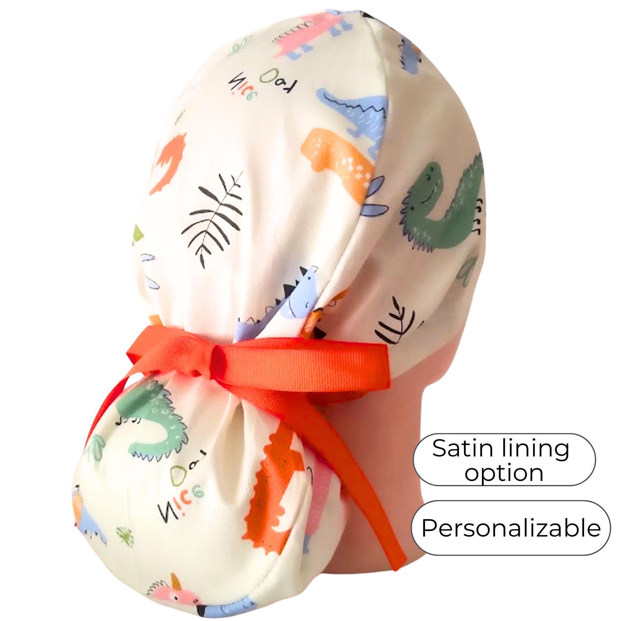 Choose from a variety of fabric prints, with the option for satin lining and personalization to make your cap unique. These surgical hats are durable, lightweight, and easy to care for — just machine wash and reuse.