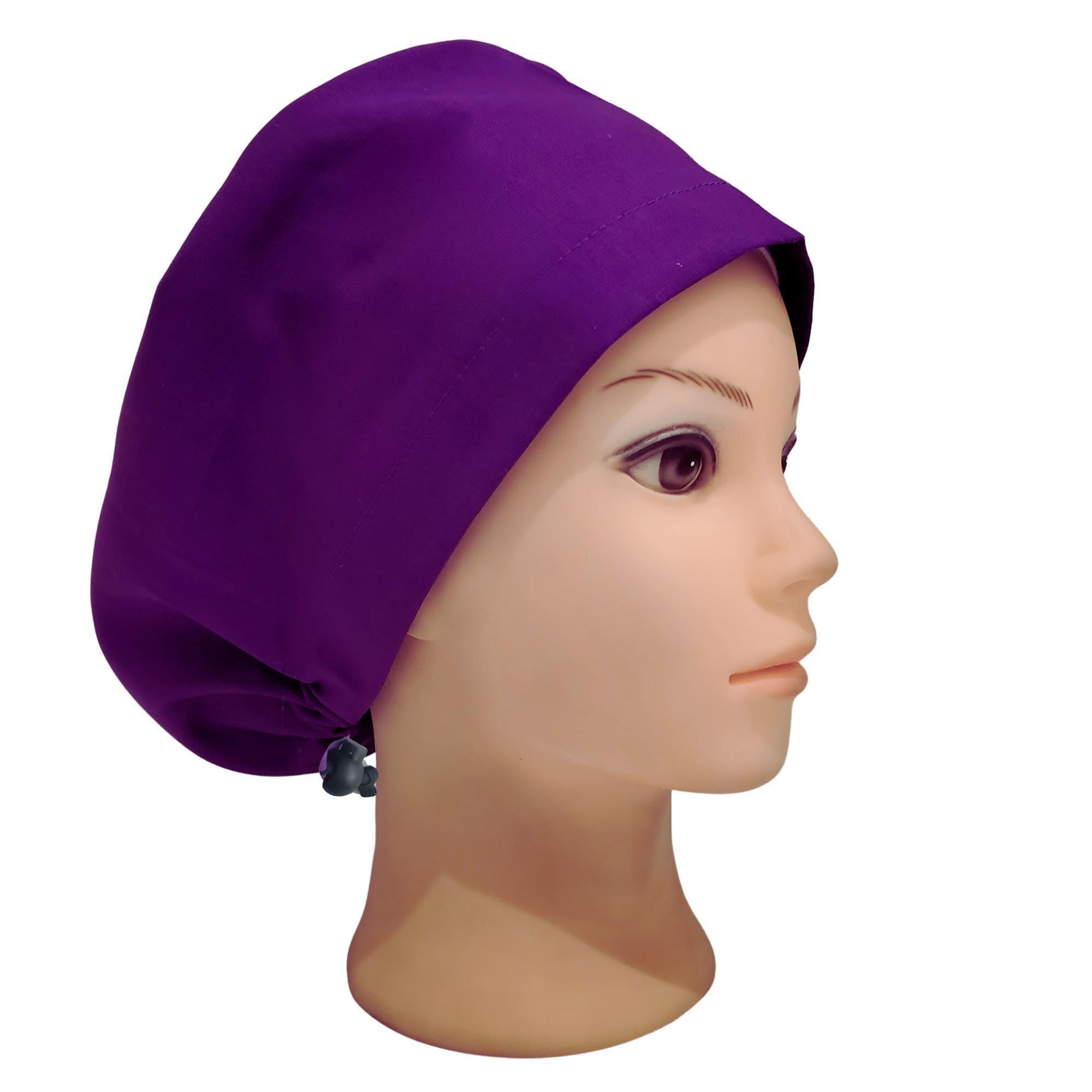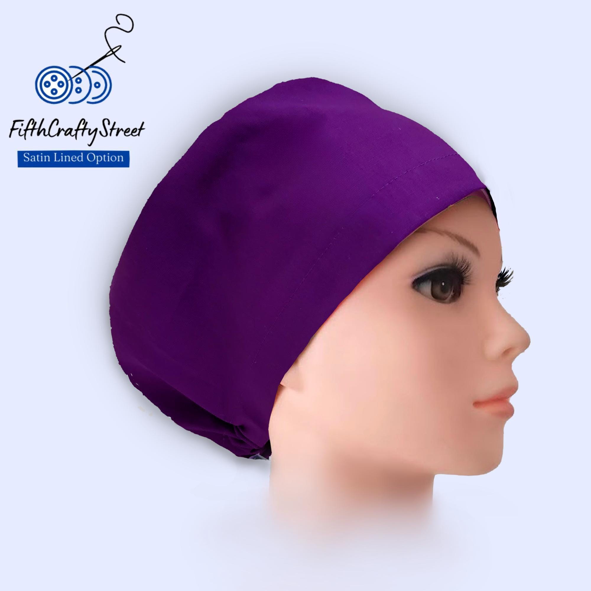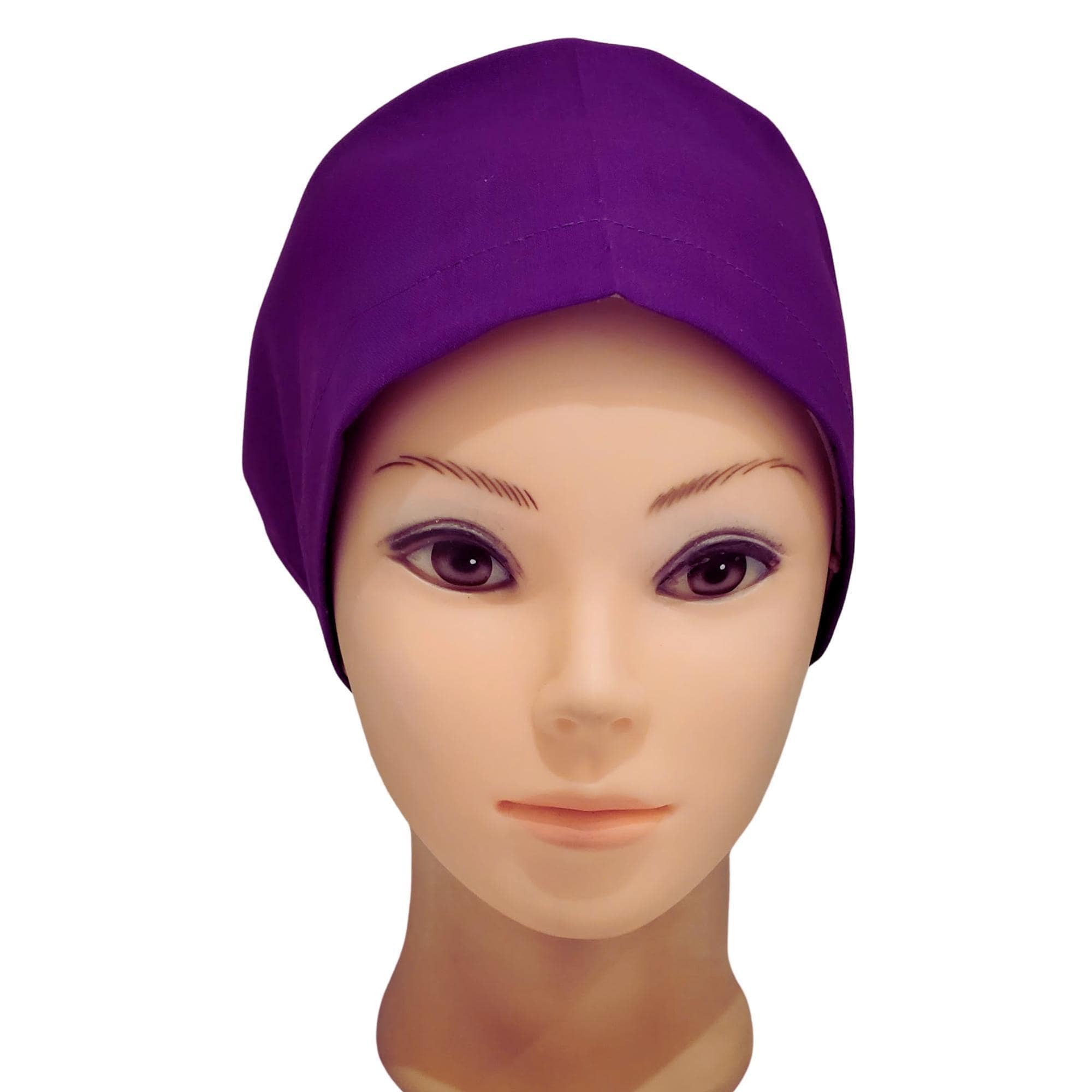 Purple Euro Scrub Cap: Satin Lined, Adjustable Cotton Surgical Cap