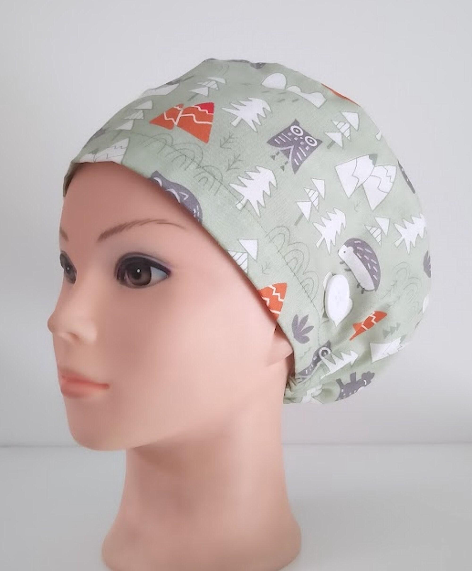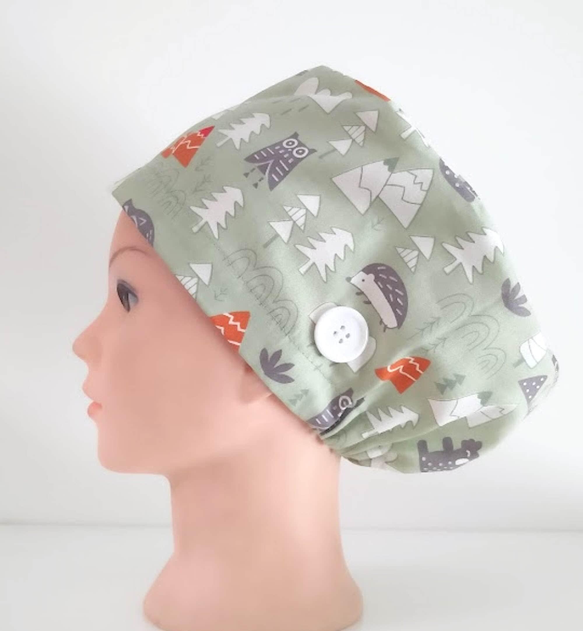 Euro Scrub Caps - Satin Lined option - Adjustable - Wildlife - greyish green