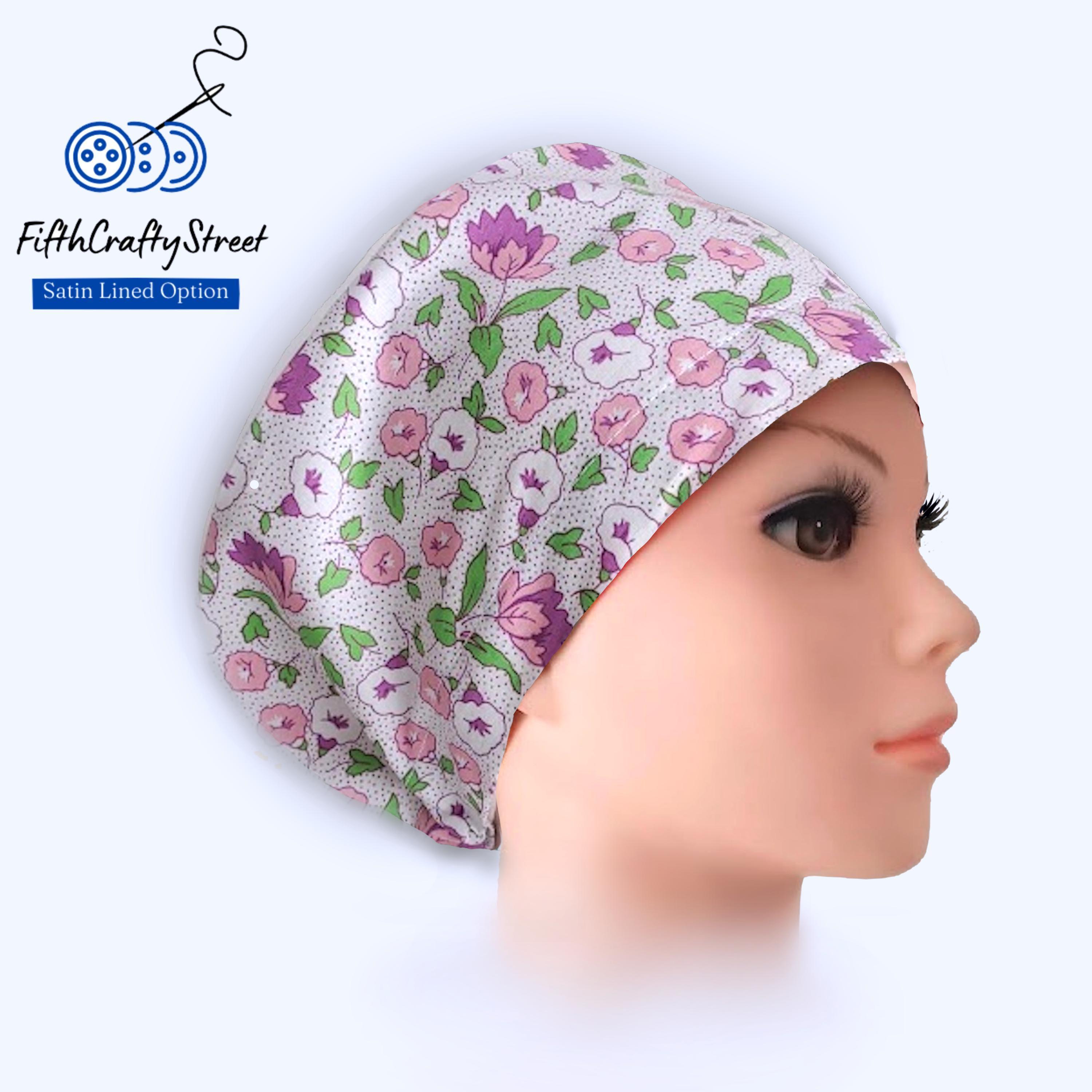 Floral Liberty Print Euro Scrub Cap: Satin Lined, Adjustable